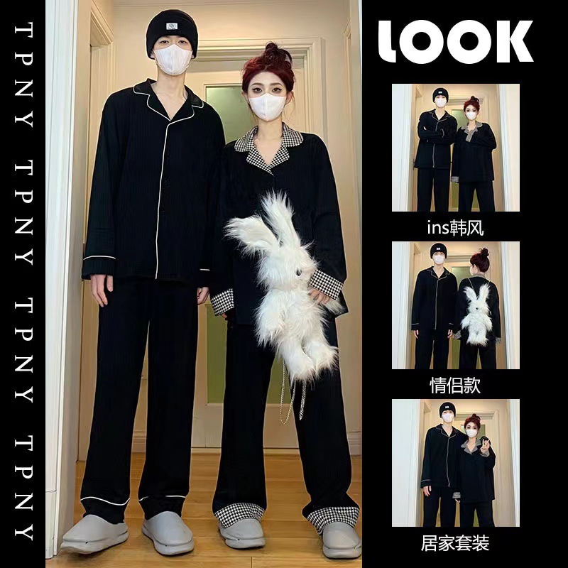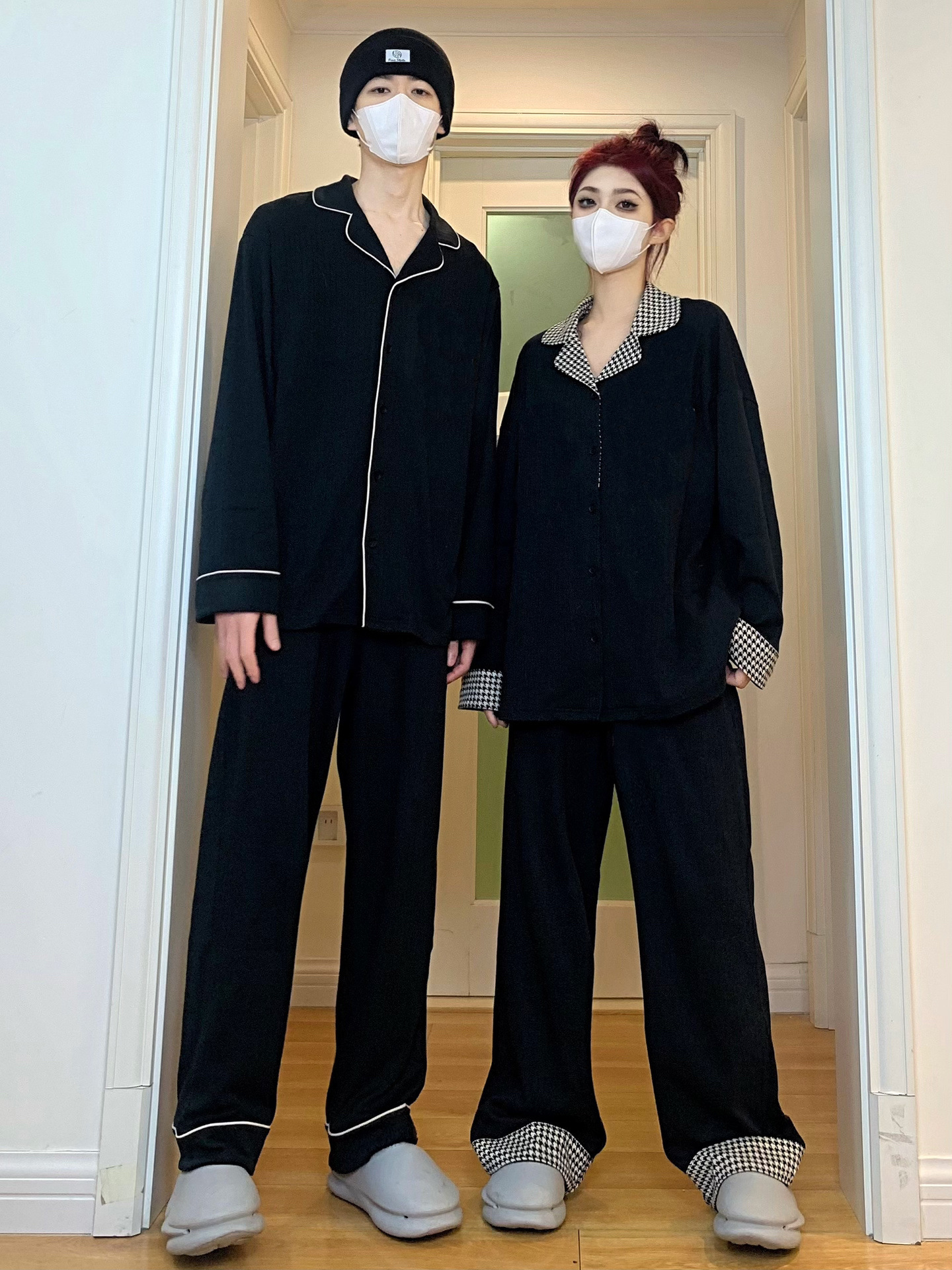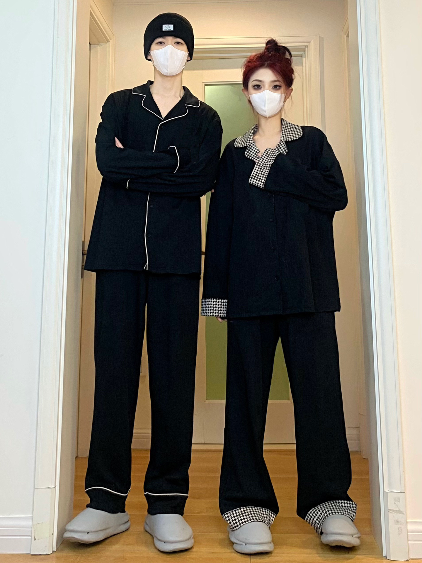 커플 잠옷 여자의 봄과 가을 2023 새로운 하이 엔드 센스 캐주얼 긴 소매 바지 가정 의류 세트 겉옷스토어 가기