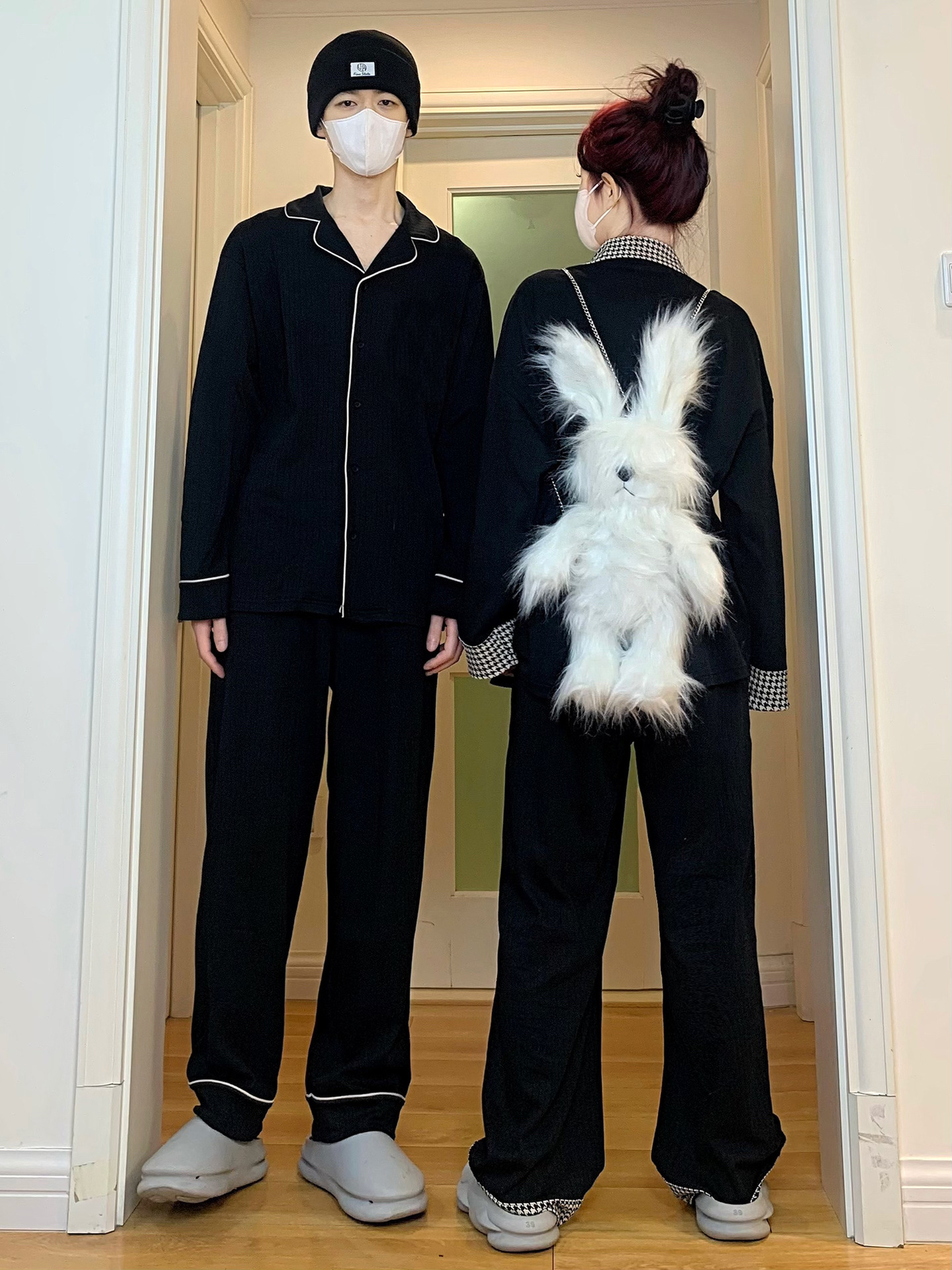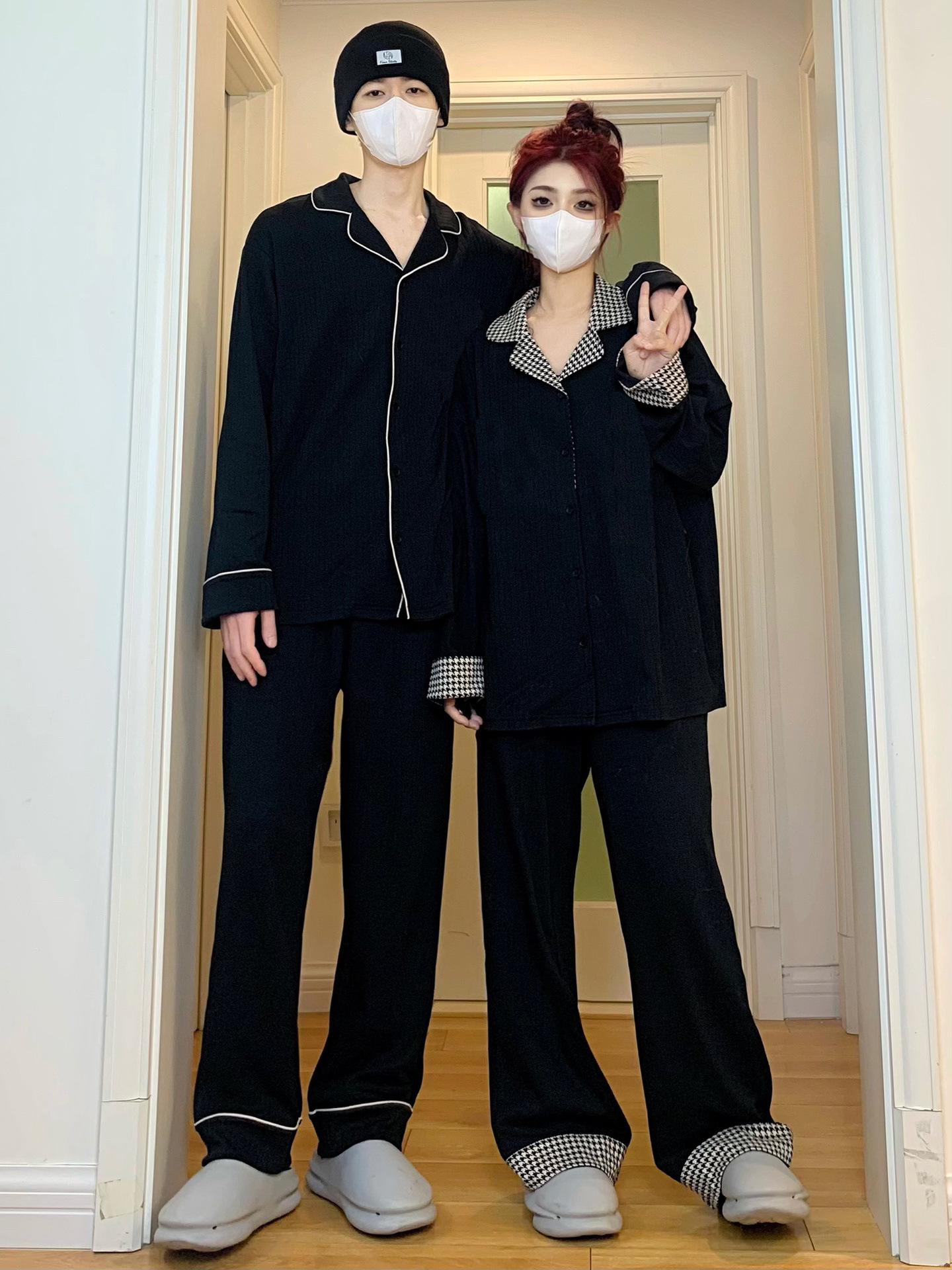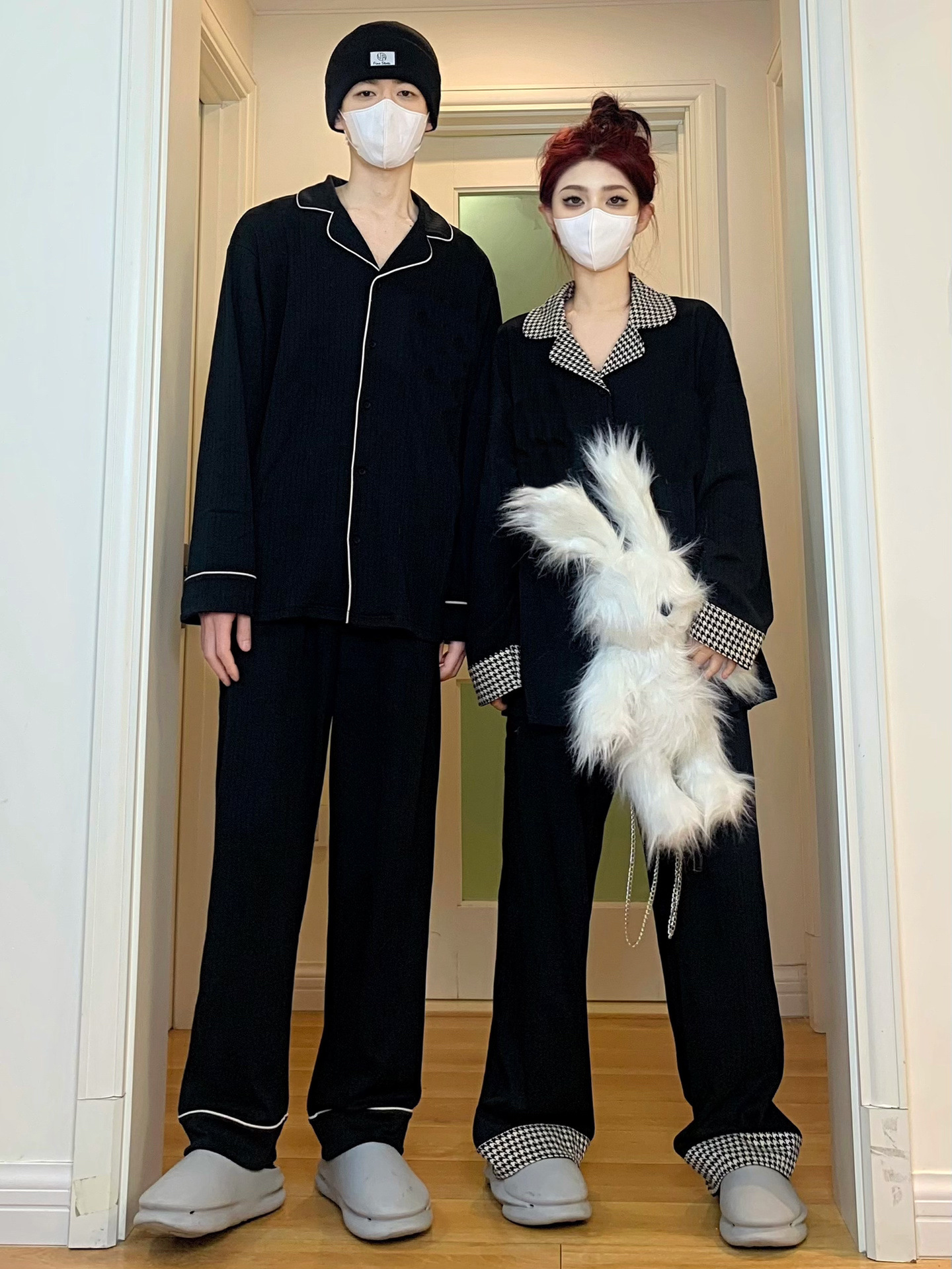 커플 잠옷 여자의 봄과 가을 2023 새로운 하이 엔드 센스 캐주얼 긴 소매 바지 가정 의류 세트 겉옷스토어 가기