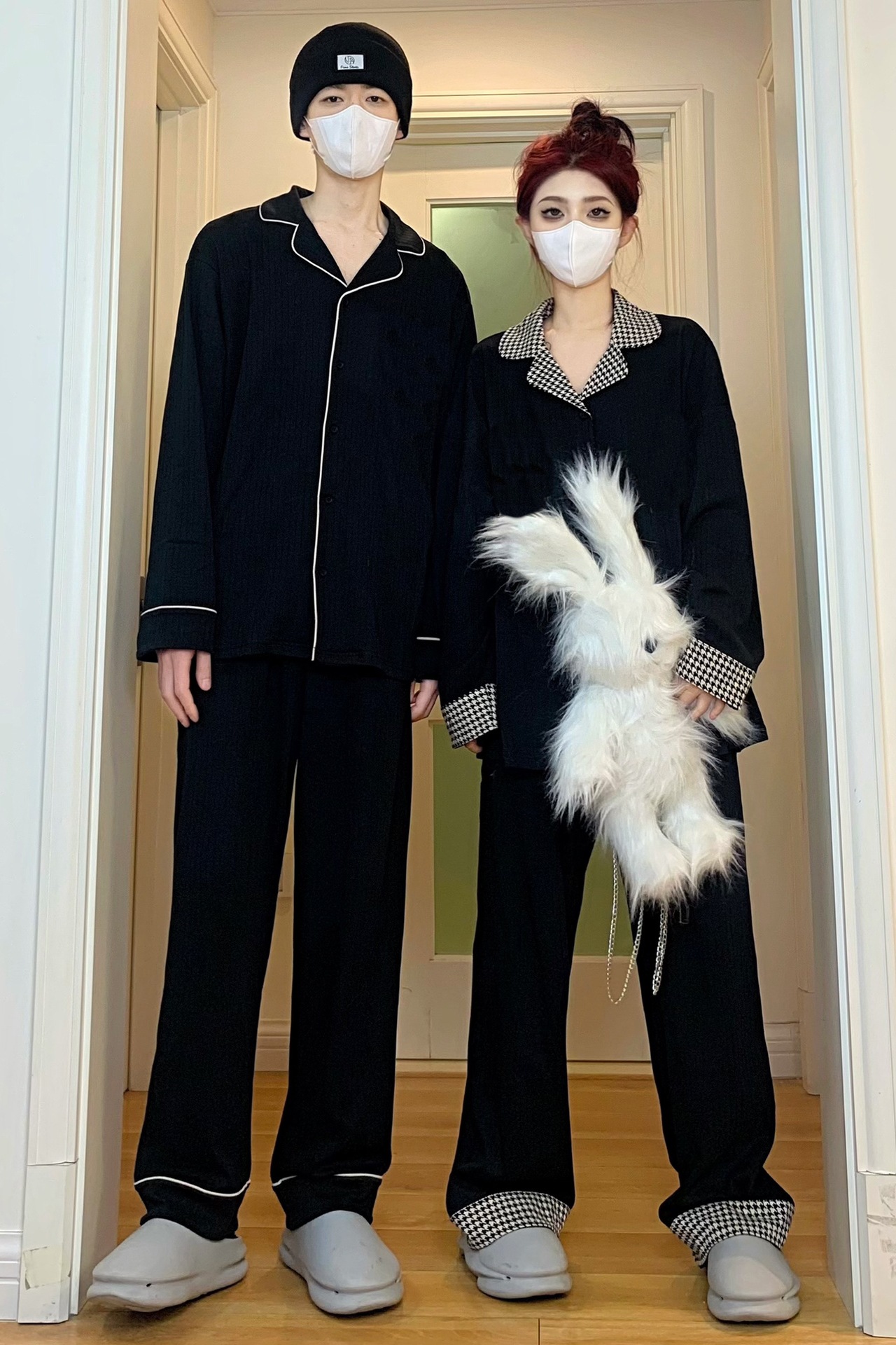 커플 잠옷 여자의 봄과 가을 2023 새로운 하이 엔드 센스 캐주얼 긴 소매 바지 가정 의류 세트 겉옷