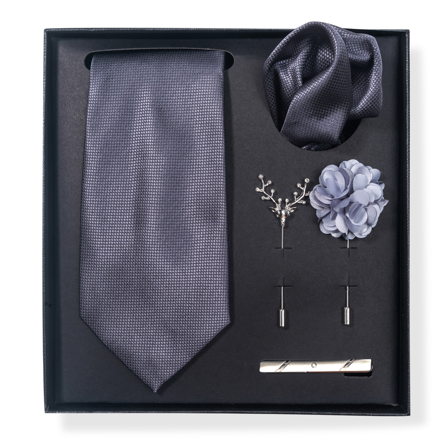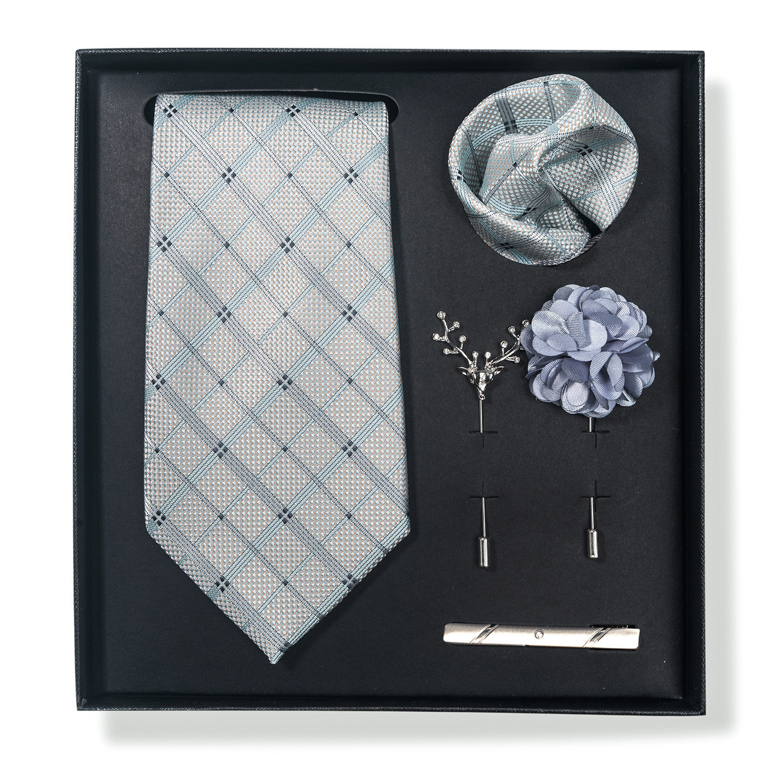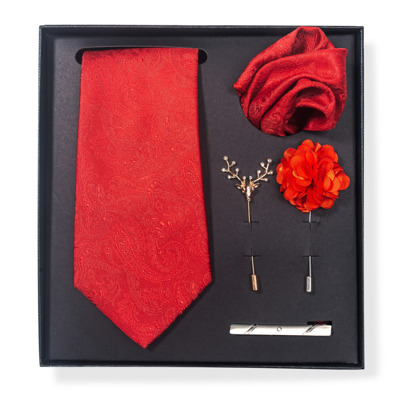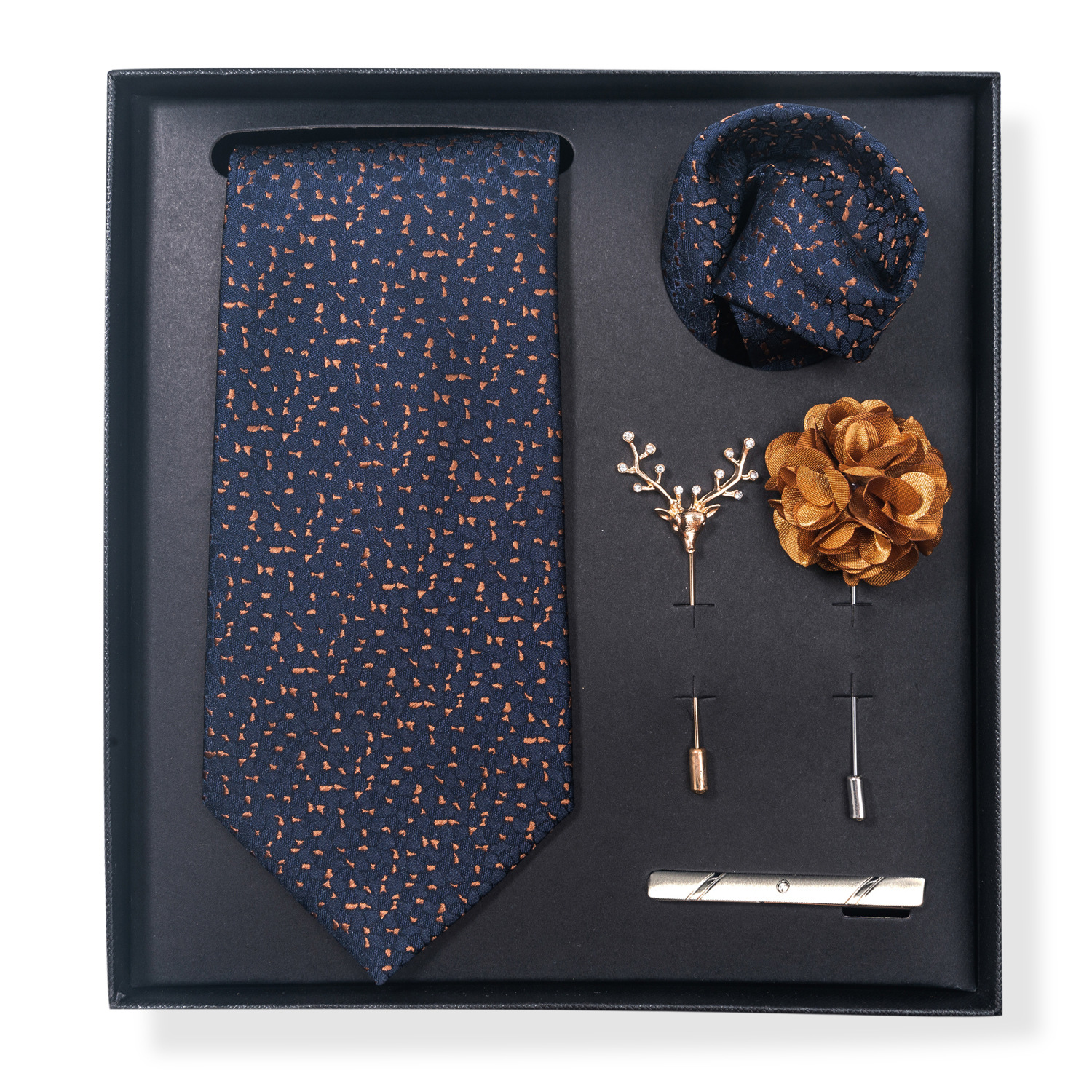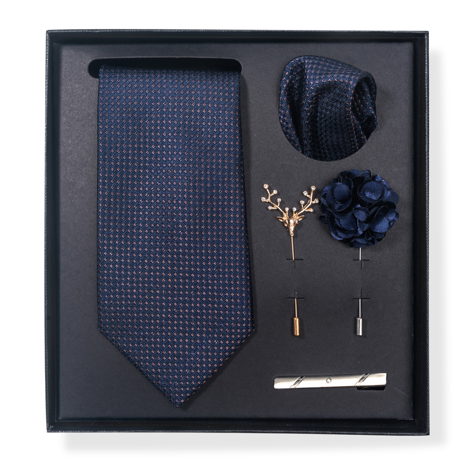 남성용 트렌디한 단색 스트라이프 캐슈넛 넥타이 6종 세트 선물 상자, 스카프, 넥타이핀, 브로치 세트