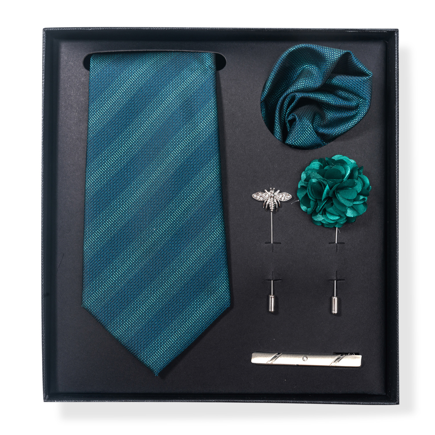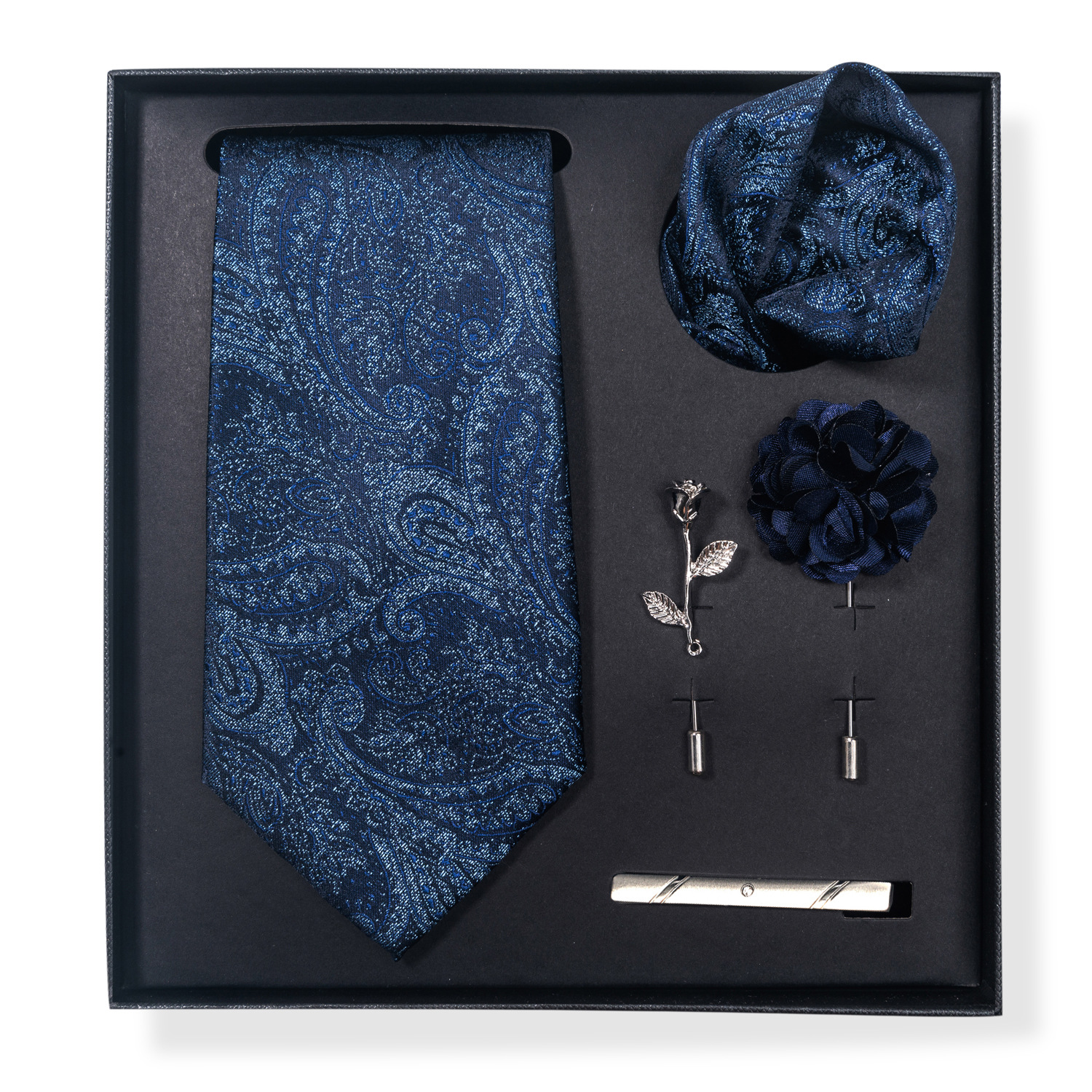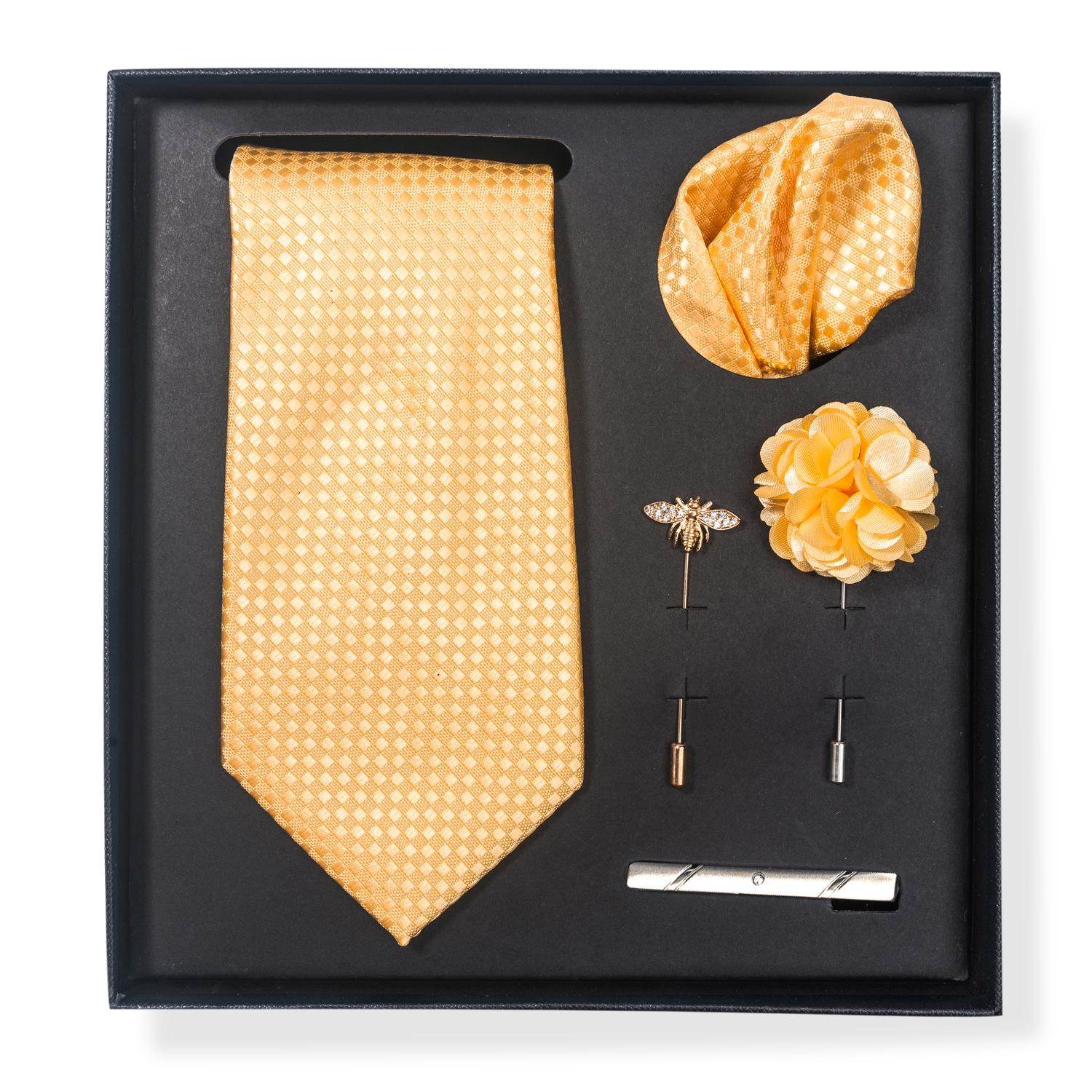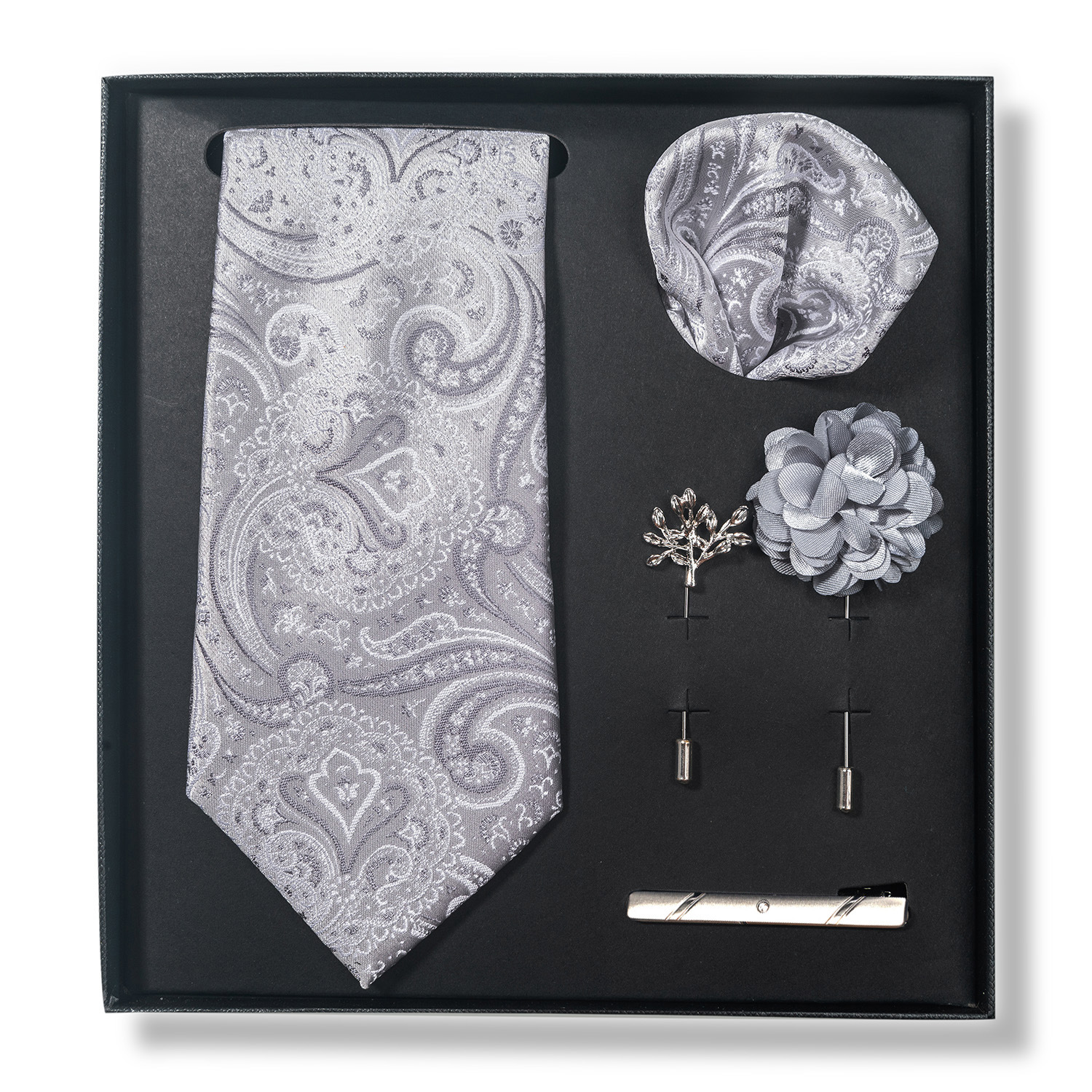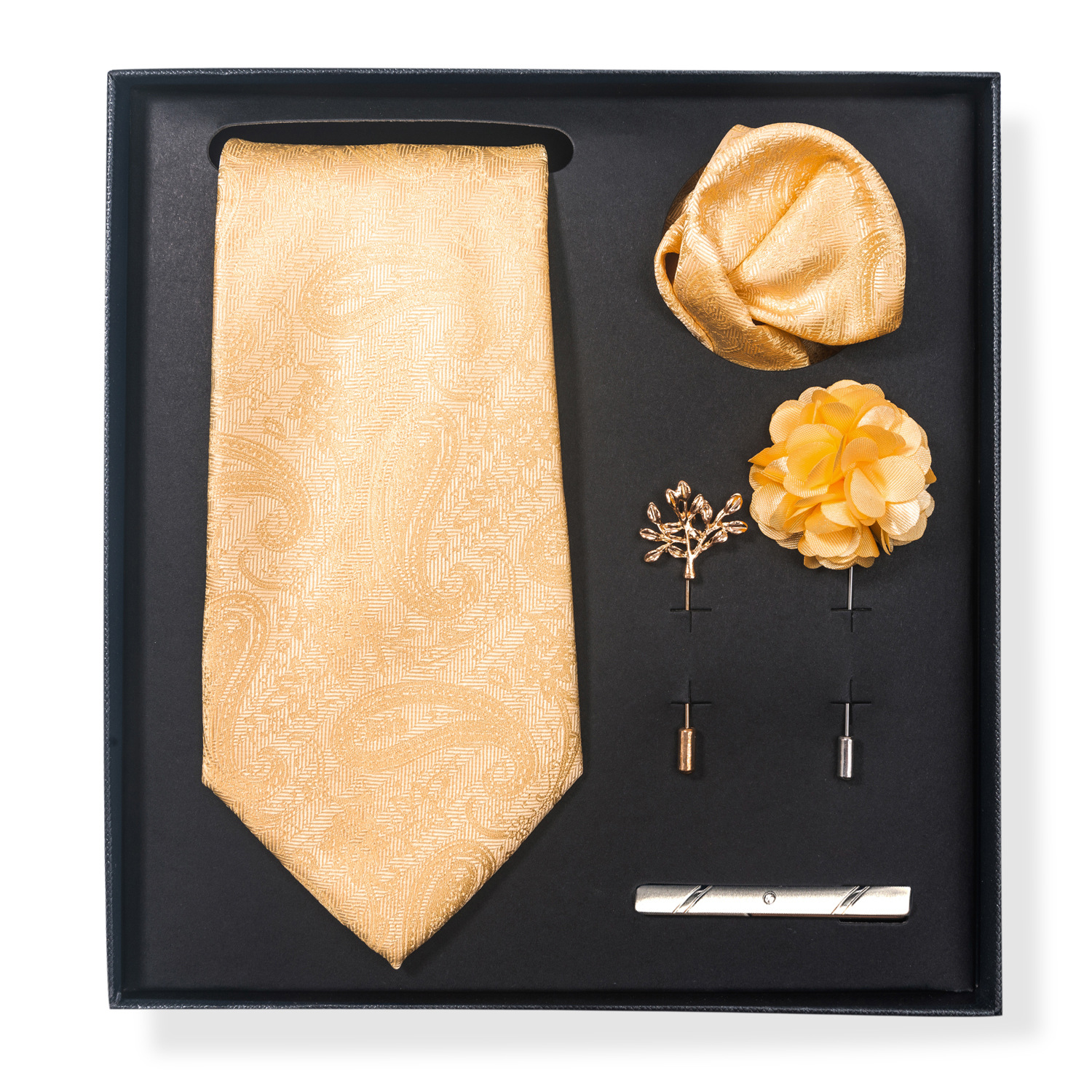 남성용 트렌디한 단색 스트라이프 캐슈넛 넥타이 6종 세트 선물 상자, 스카프, 넥타이핀, 브로치 세트
