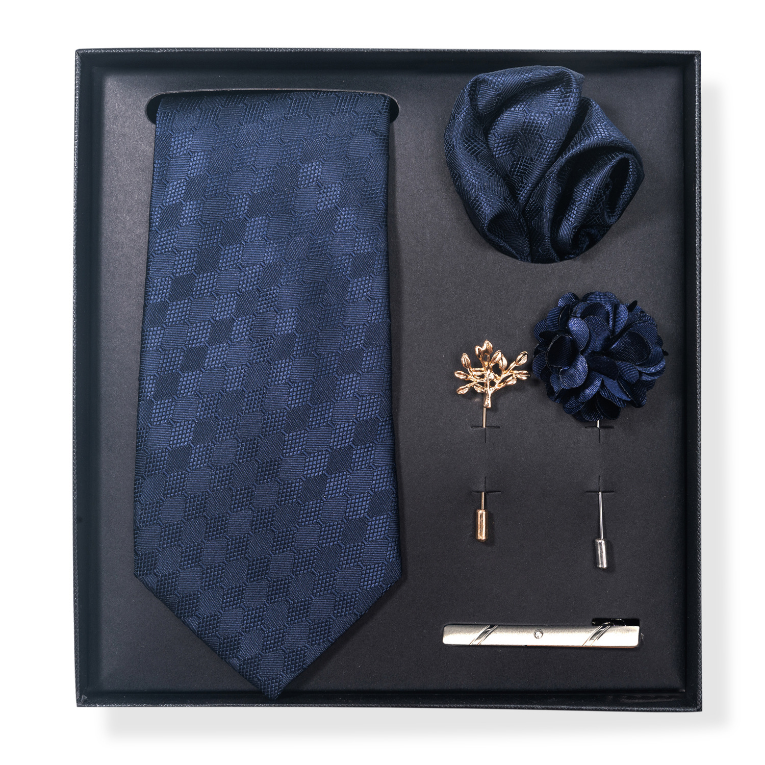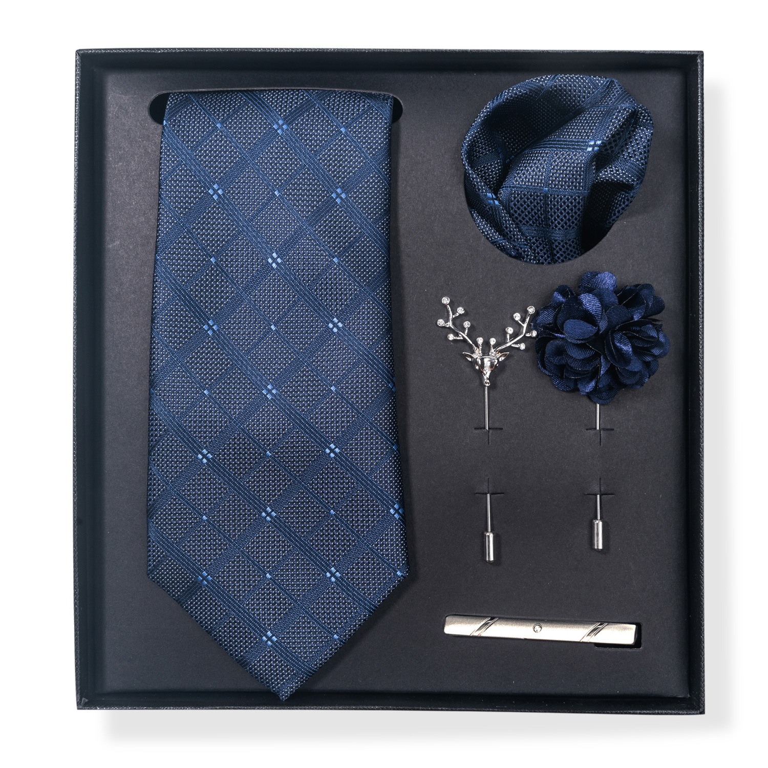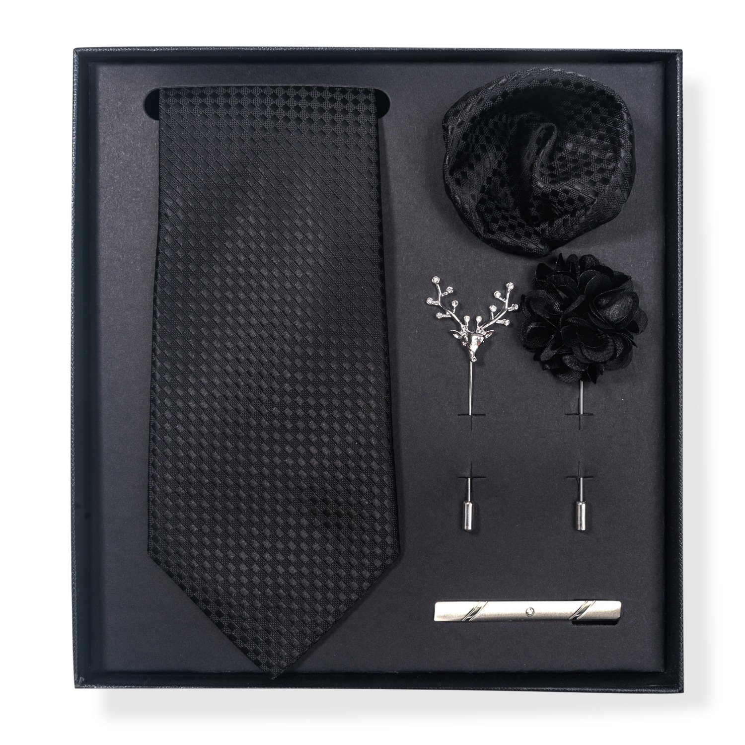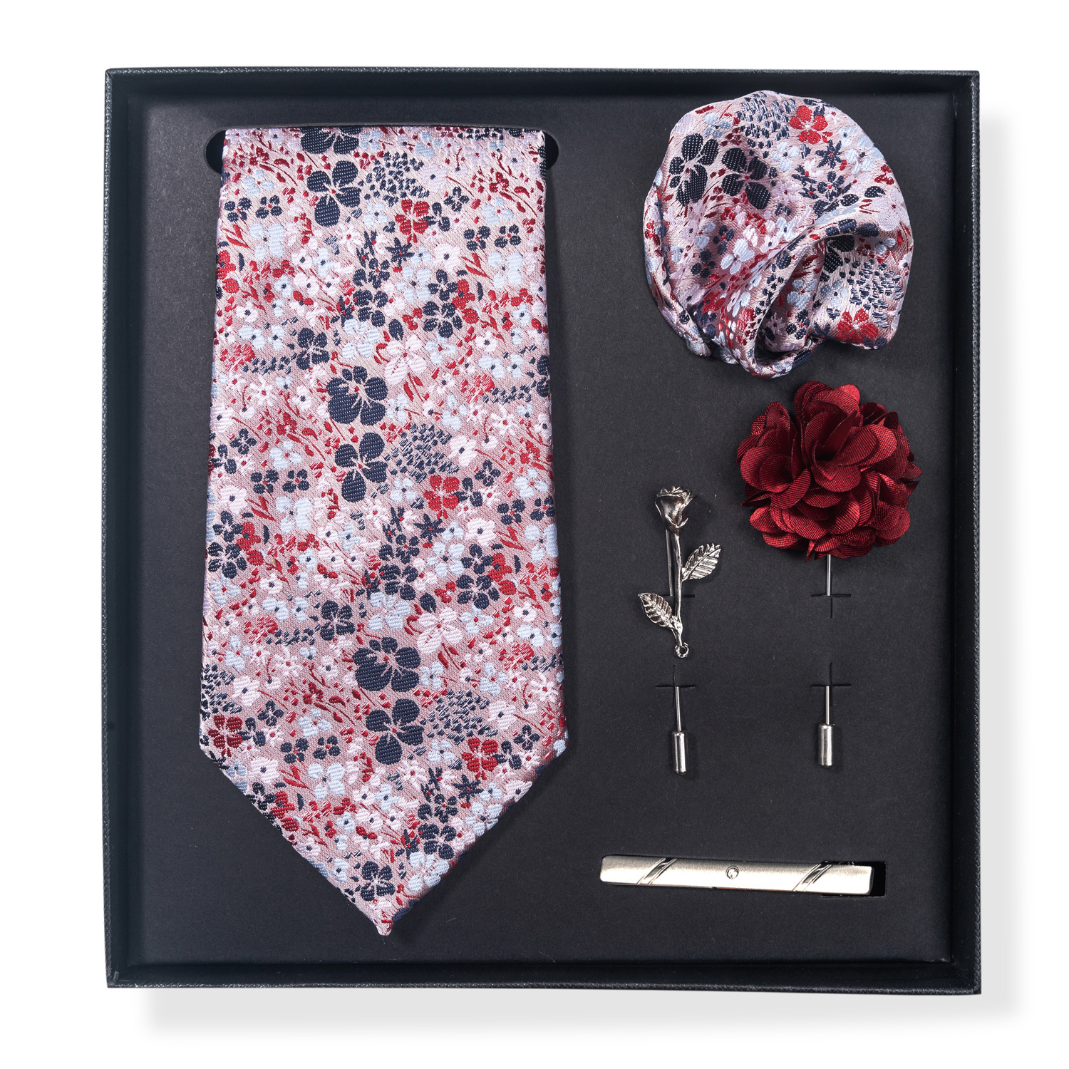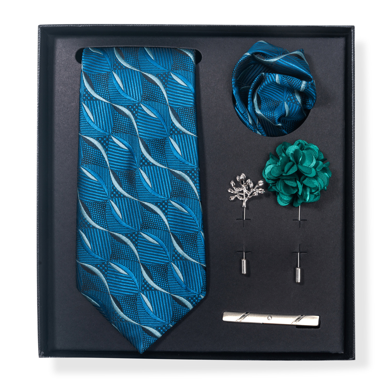 남성용 트렌디한 단색 스트라이프 캐슈넛 넥타이 6종 세트 선물 상자, 스카프, 넥타이핀, 브로치 세트