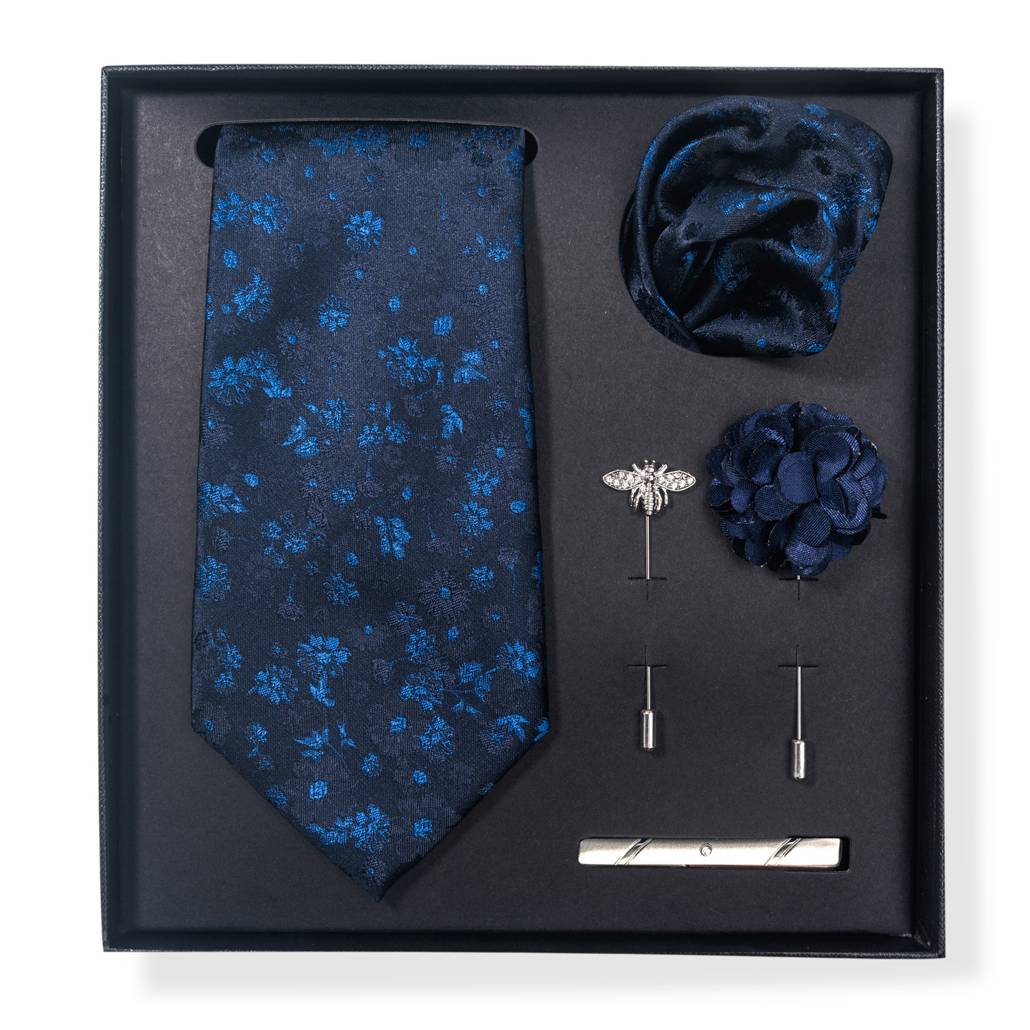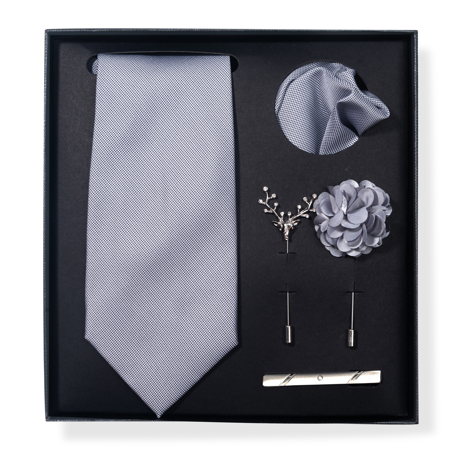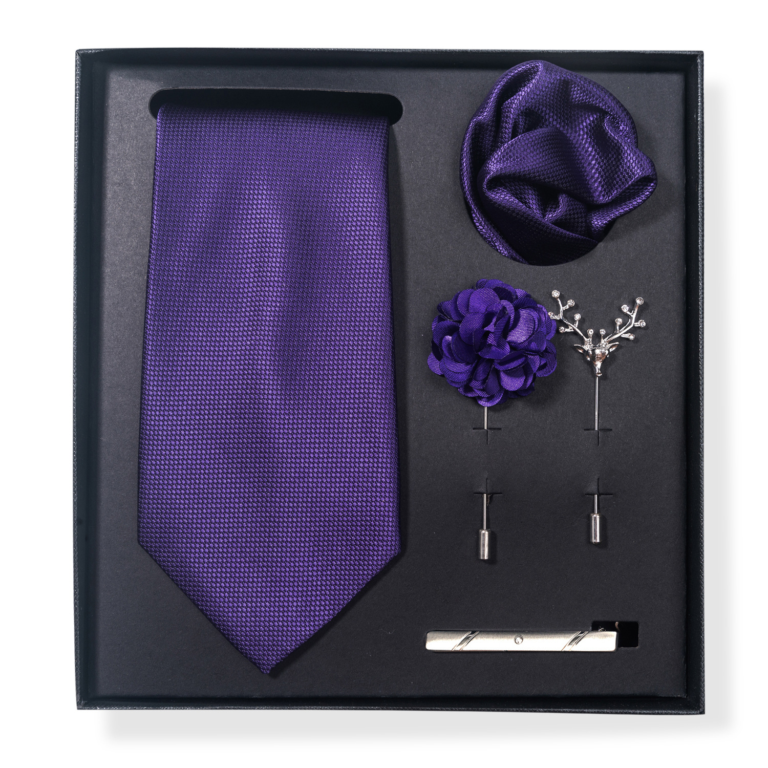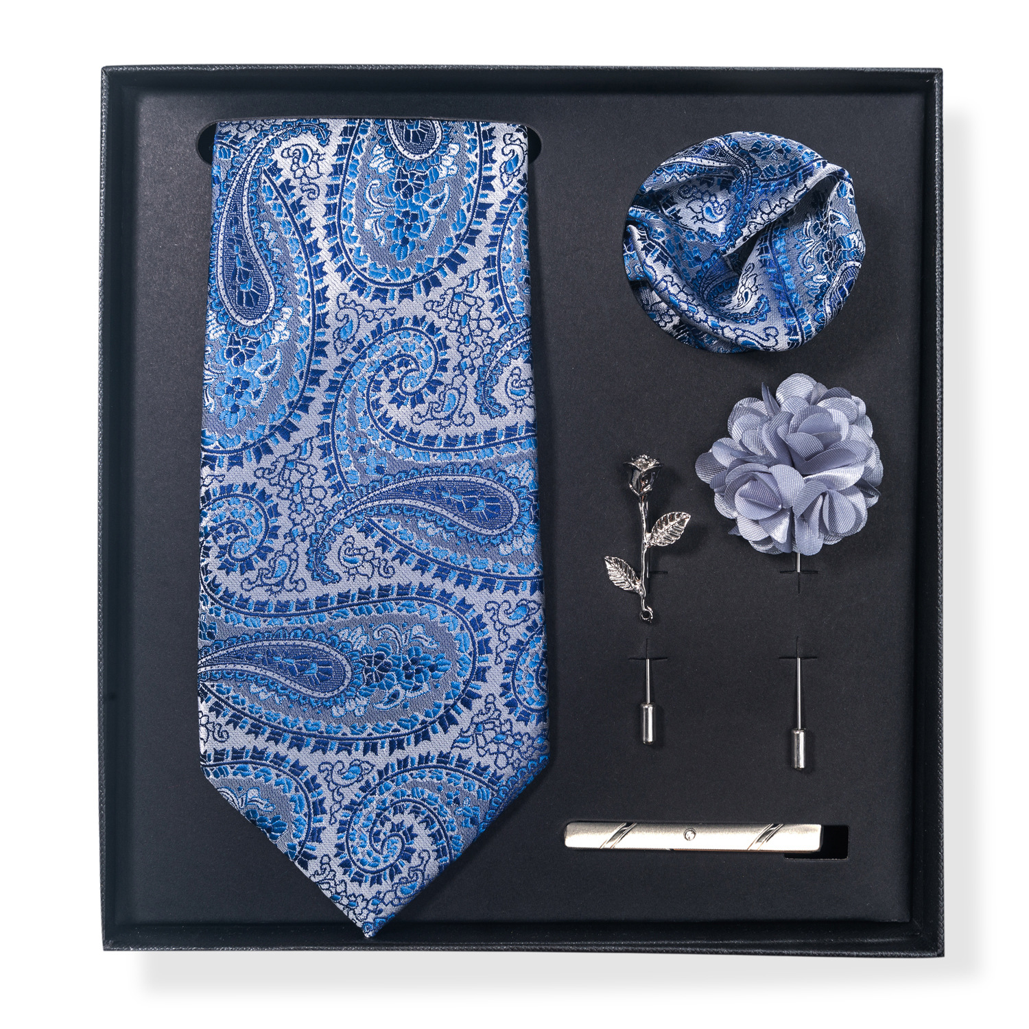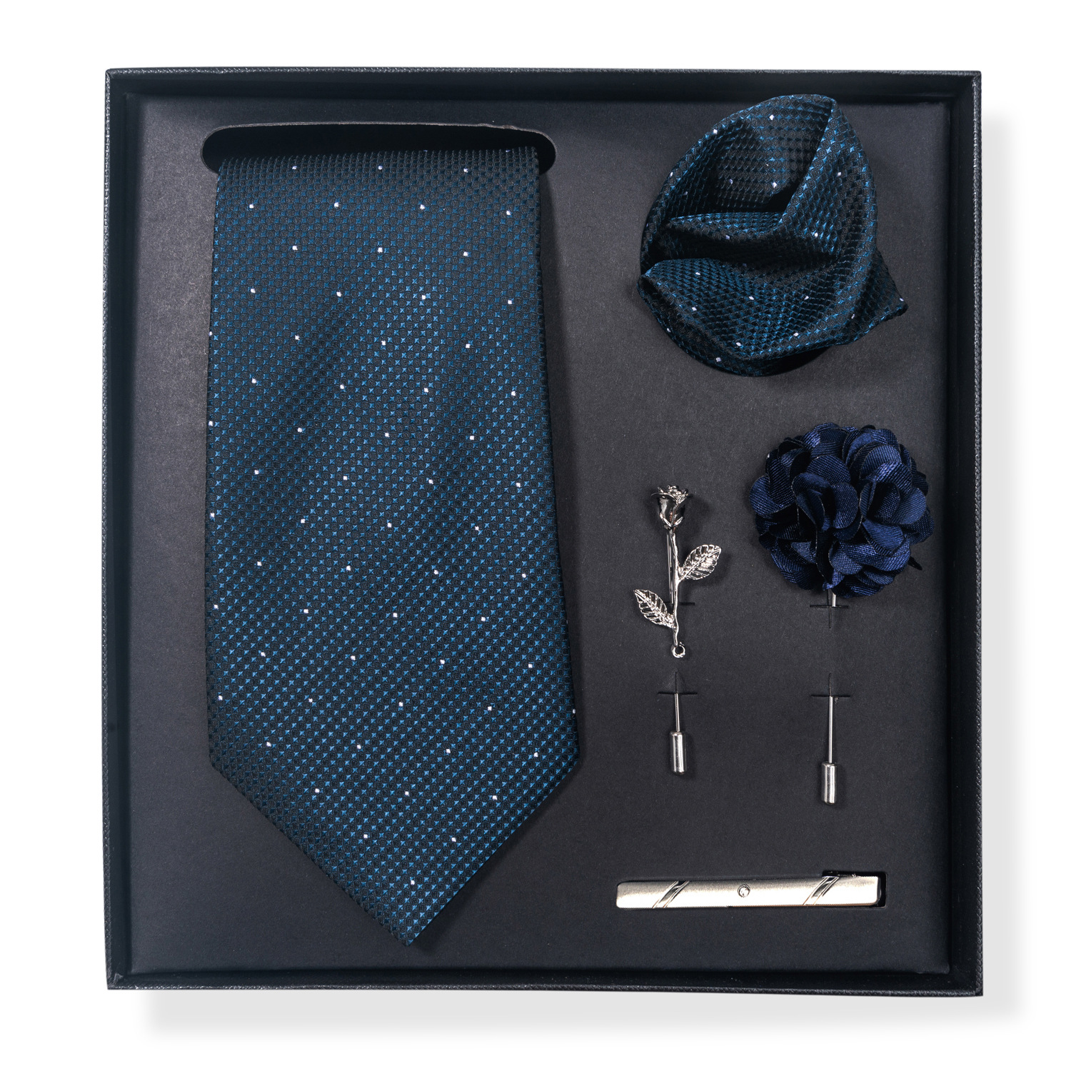 남성용 트렌디한 단색 스트라이프 캐슈넛 넥타이 6종 세트 선물 상자, 스카프, 넥타이핀, 브로치 세트
