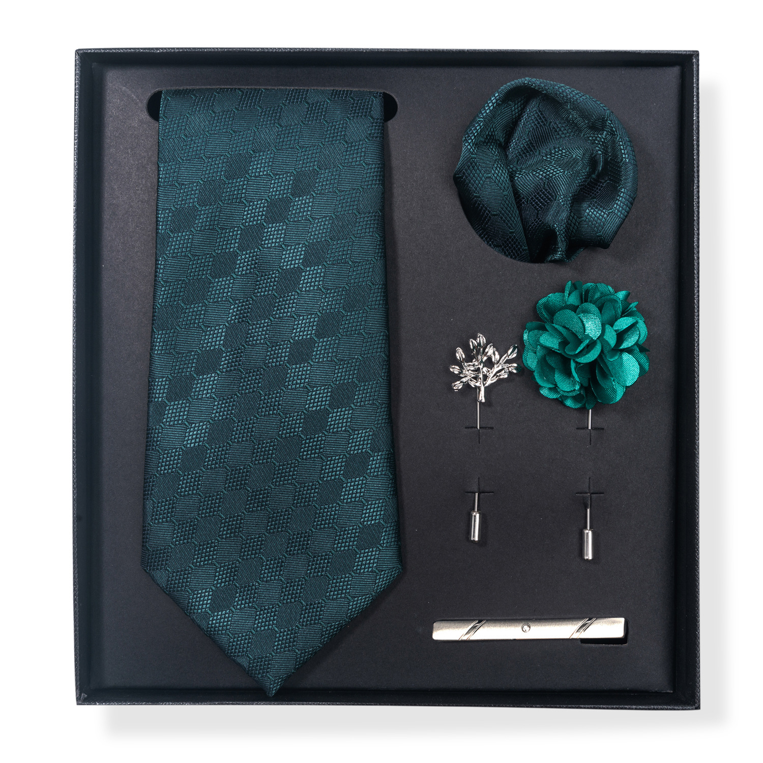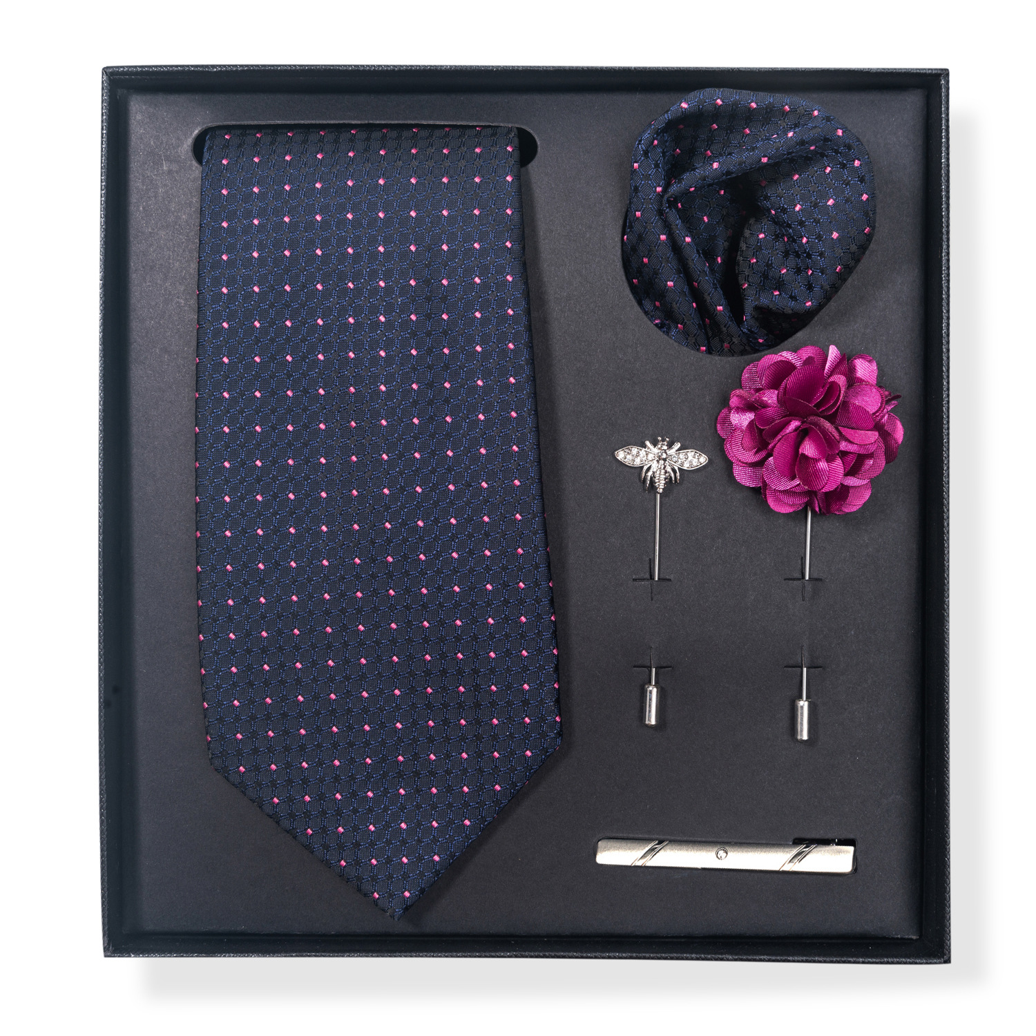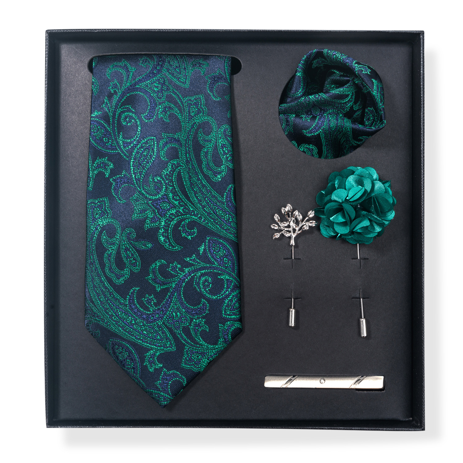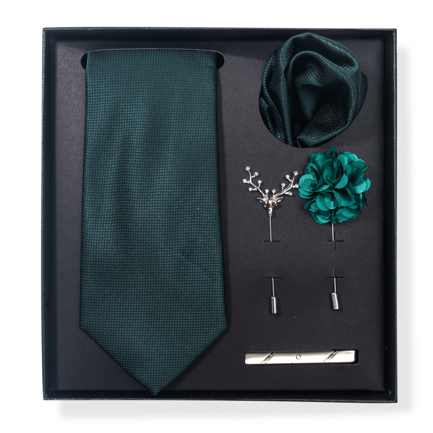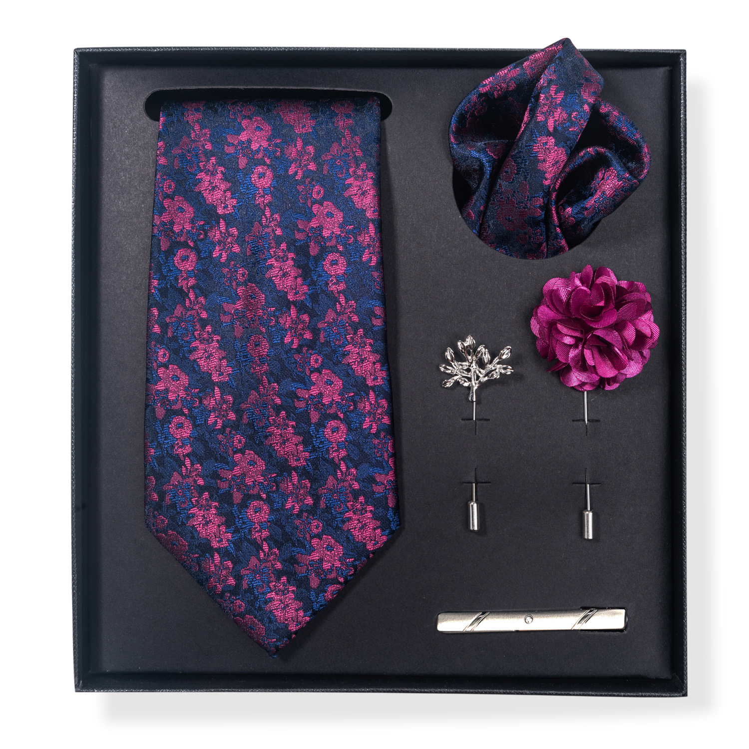 남성용 트렌디한 단색 스트라이프 캐슈넛 넥타이 6종 세트 선물 상자, 스카프, 넥타이핀, 브로치 세트