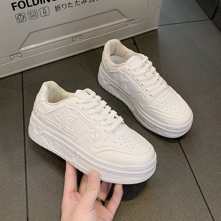 두꺼운 밑창 새 흰색 신발 여성용 2023 가을 겨울 한국식 학생 패션 만능 운동화 캐주얼 스포츠 최신 유행 신발