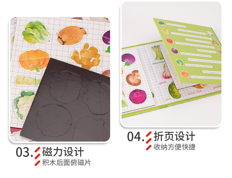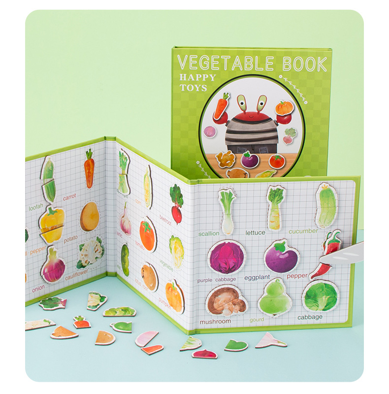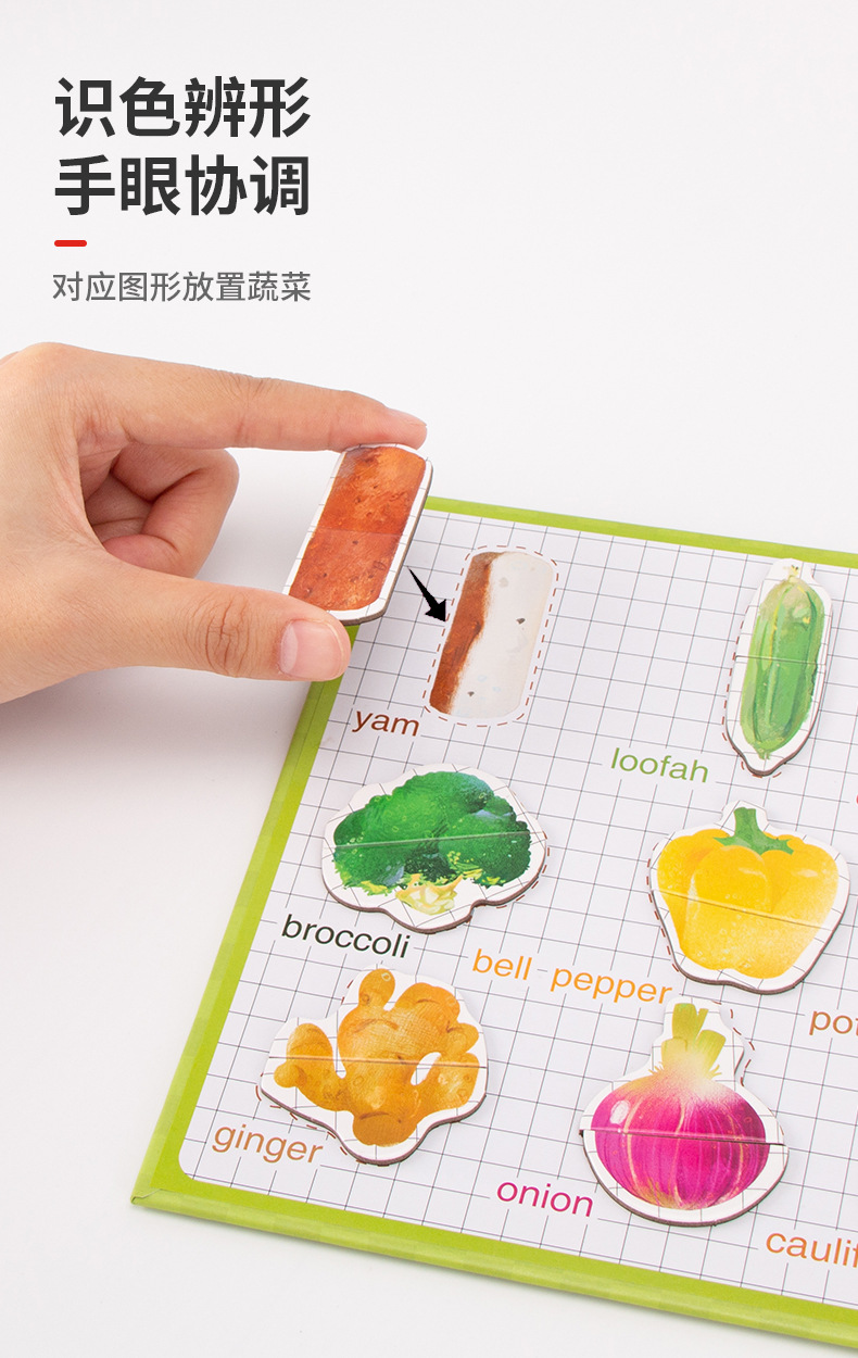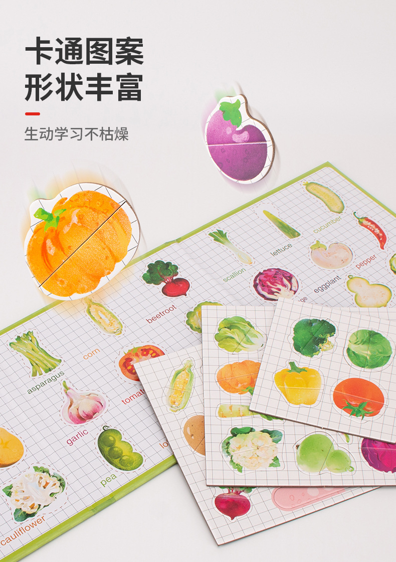 어린이 조기 교육 자기 책 야채 과일 동물 인지 퍼즐 아기 소년과 소녀 퍼즐 3-6 세 2 장난감