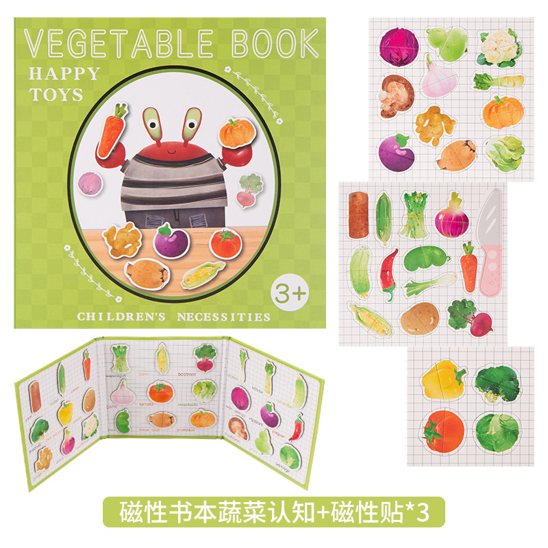 어린이 조기 교육 자기 책 야채 과일 동물 인지 퍼즐 아기 소년과 소녀 퍼즐 3-6 세 2 장난감스토어 가기