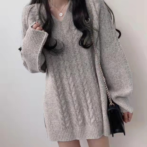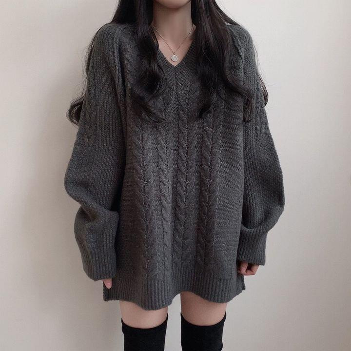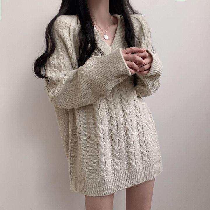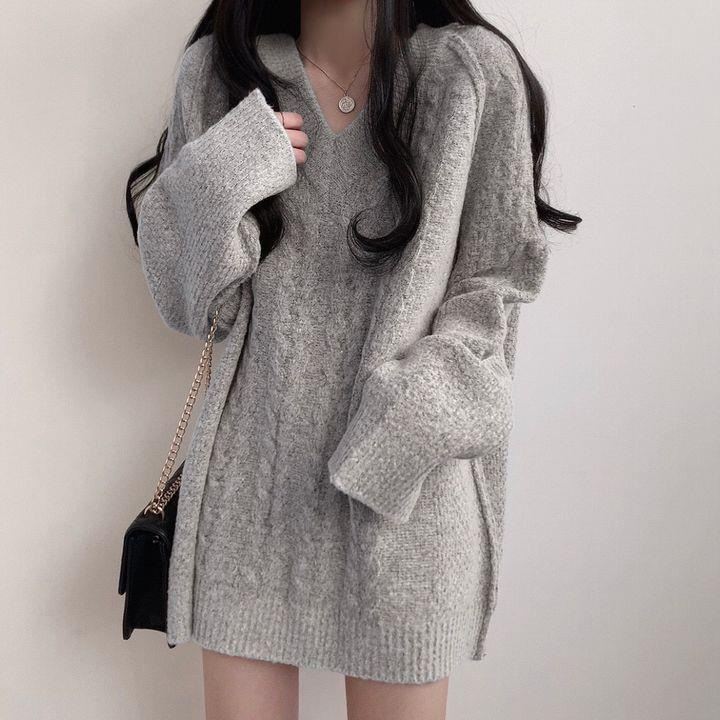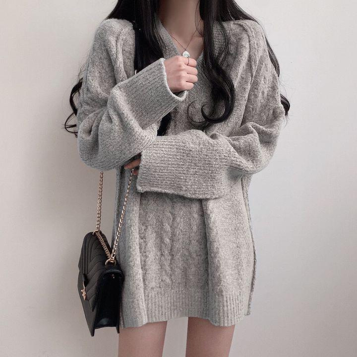한국 세련된 가을과 겨울 중간 길이의 트위스트 스웨터 원피스 여성 서양식 레트로 솔리드 컬러 올 매치 하체 누락 스웨터스토어 가기