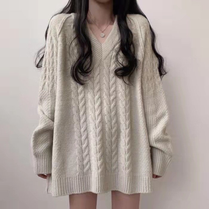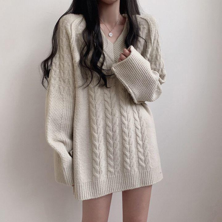 한국 세련된 가을과 겨울 중간 길이의 트위스트 스웨터 원피스 여성 서양식 레트로 솔리드 컬러 올 매치 하체 누락 스웨터