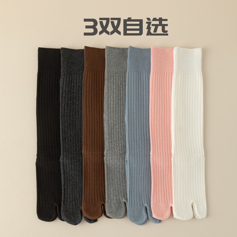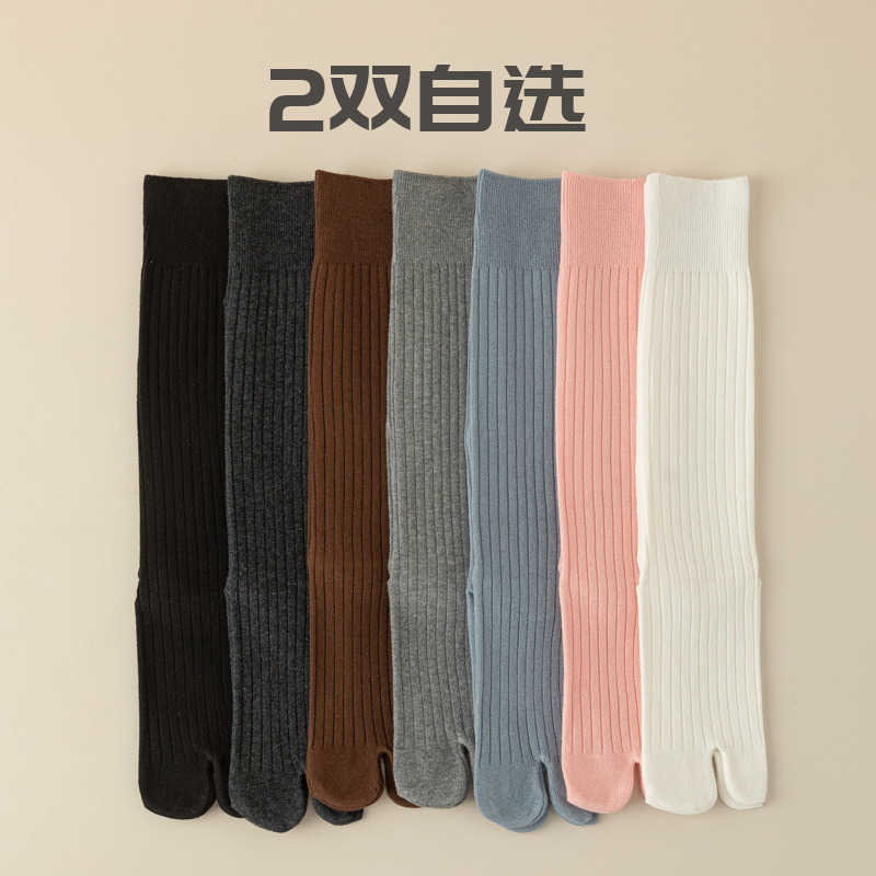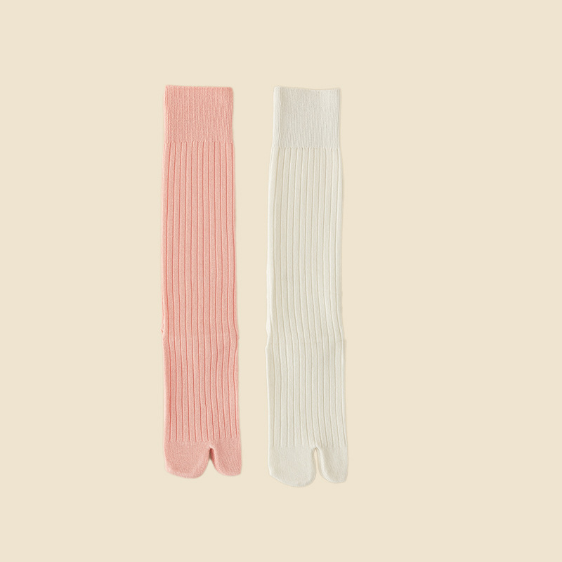 더블 바늘 발가락 엄지 돼지의 발굽 긴 배럴 두 발가락 양말 플립 플롭 송아지 양말 소녀 슬리밍 핑크 면 양말