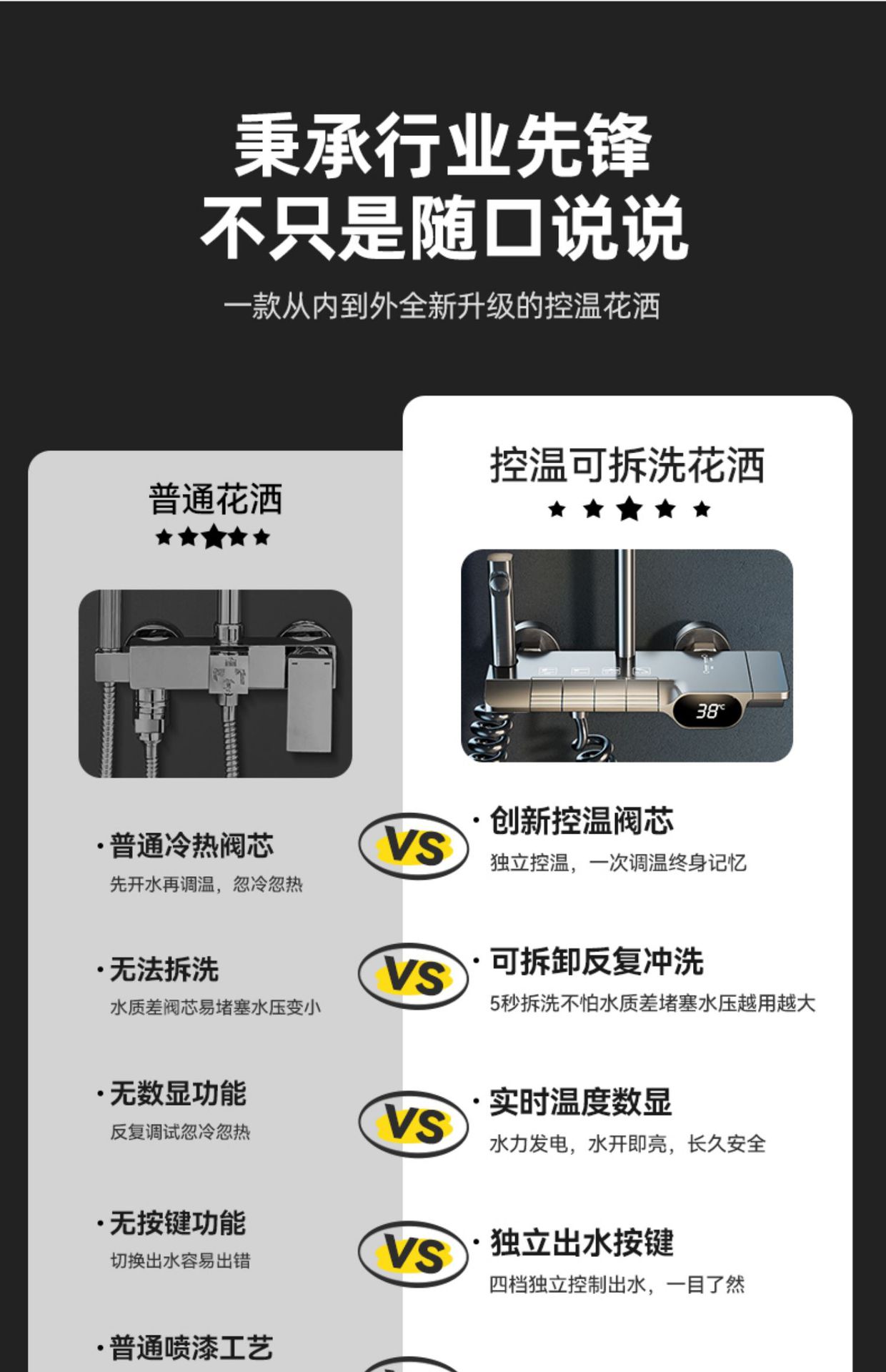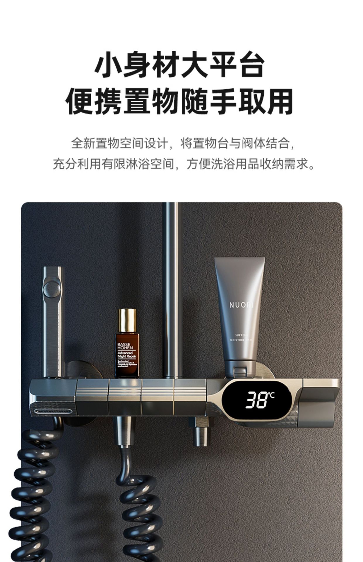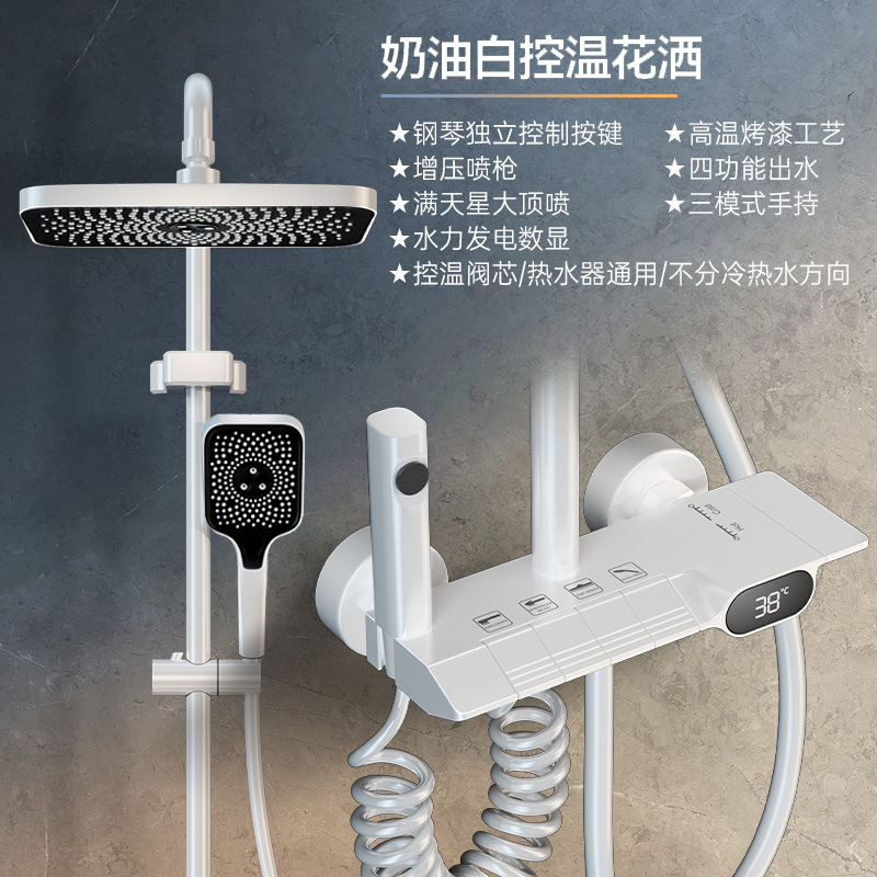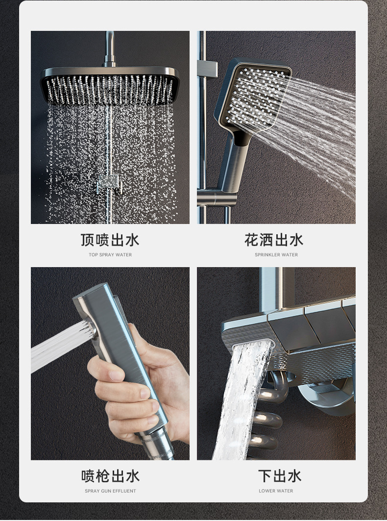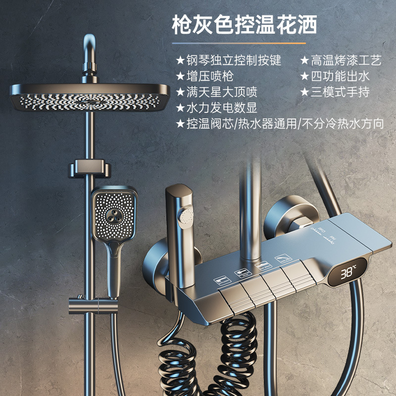 샤워기 세트, 레인 샤워기, 그레이 피아노 키 디자인, 욕실용, 가정용, 온도 조절 디지털 디스플레이, 가압식, 항온스토어 가기