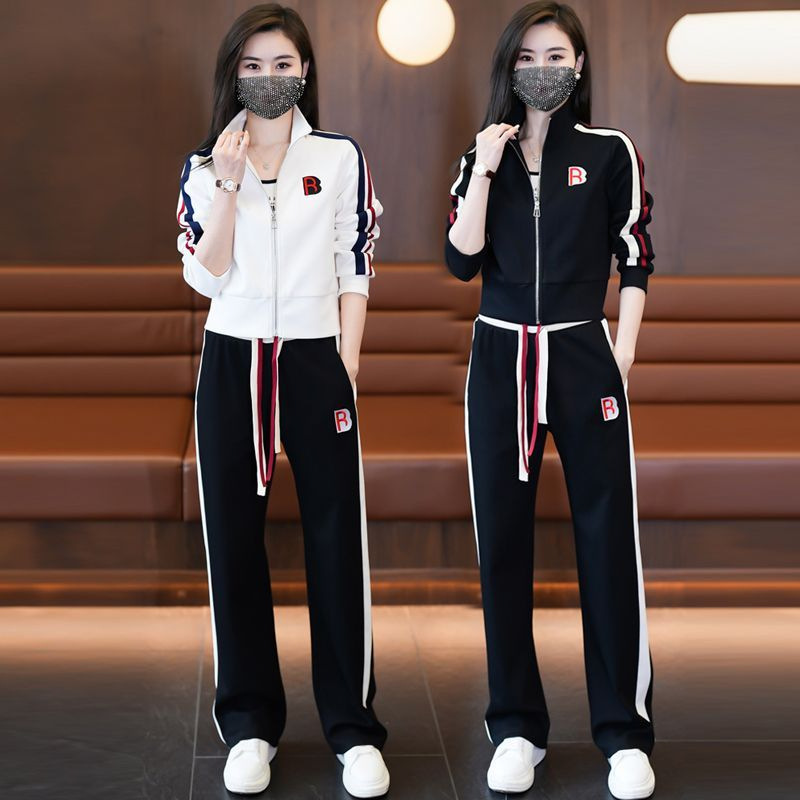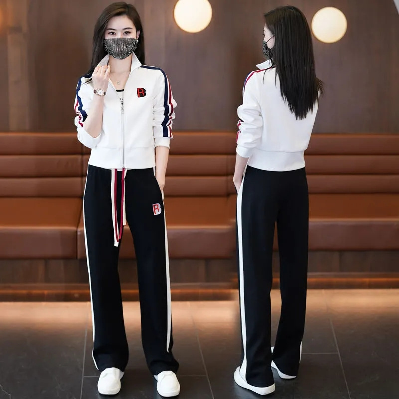캐주얼 스포츠 세트 여성 2023 봄과 가을 새로운 패션 나이 감소 우아한 스탠드 칼라 재킷 와이드 레그 스웨트 팬츠 투피스 세트스토어 가기