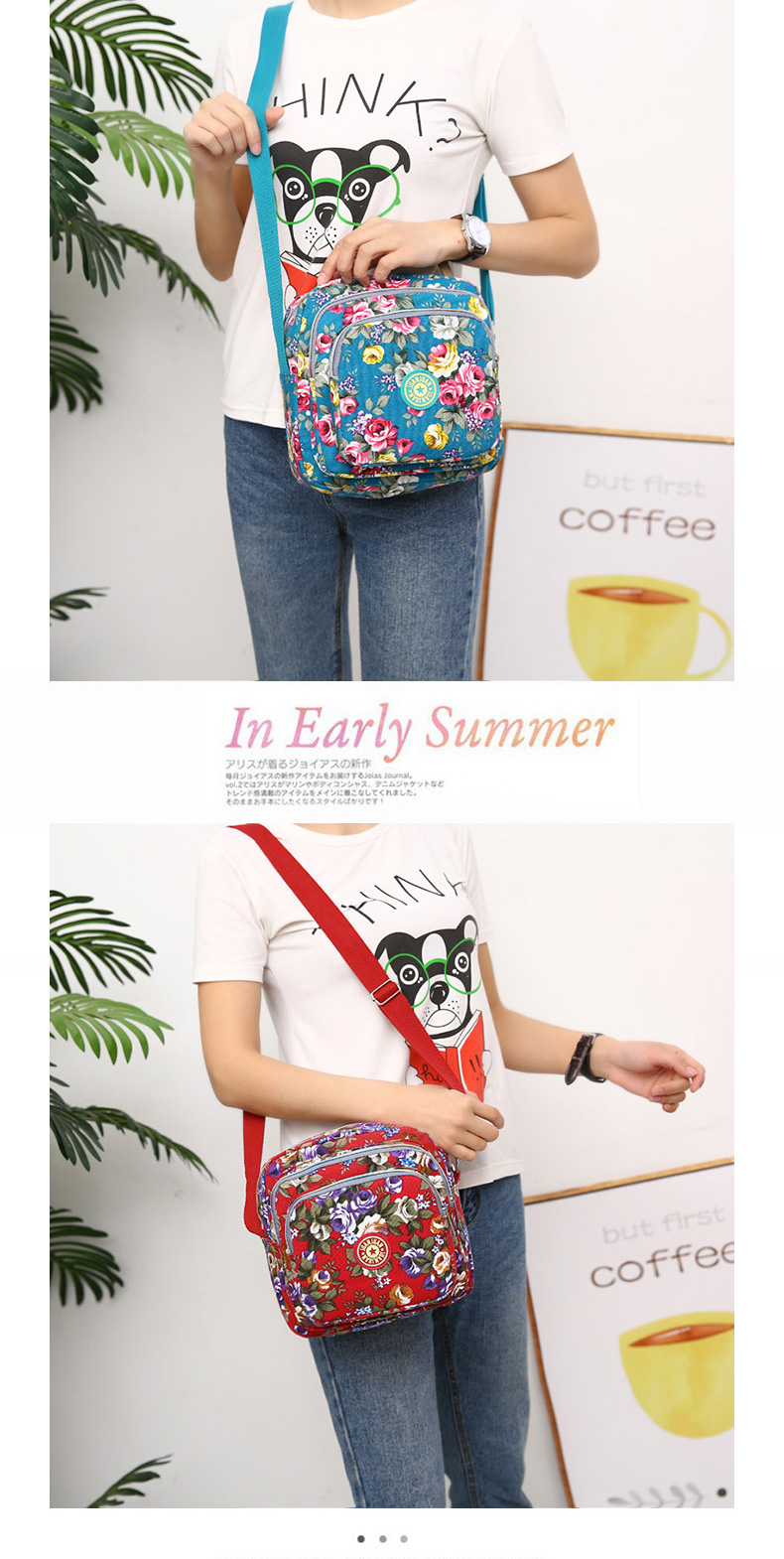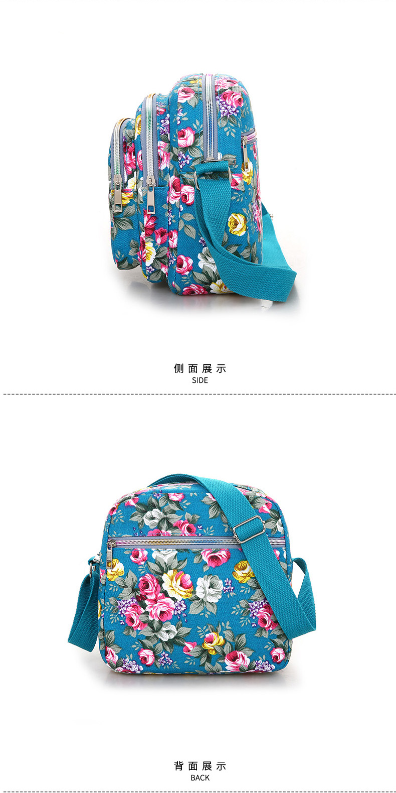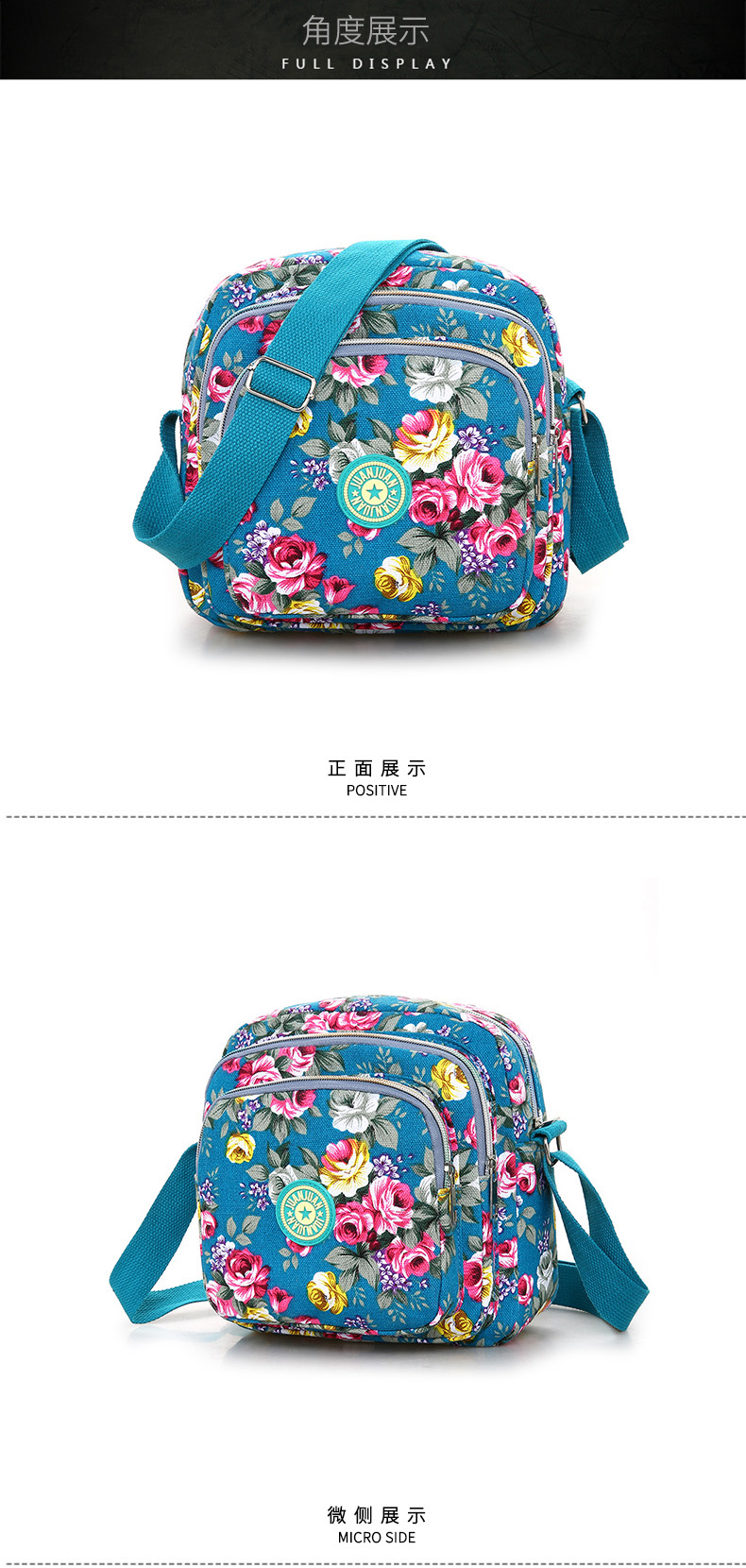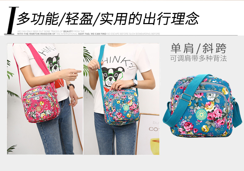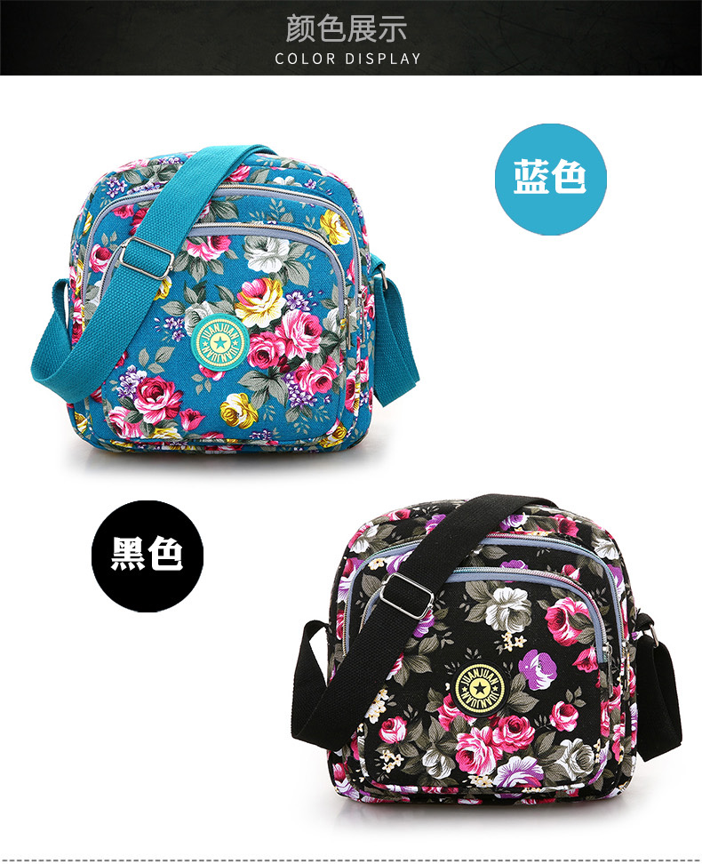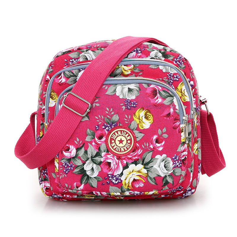 여성 메신저 백 한국식 캔버스 다층 새로운 스포츠 올 매치 숄더 캐주얼 여름 중반 작은 크로스 바디 백 꽃 무늬 백스토어 가기