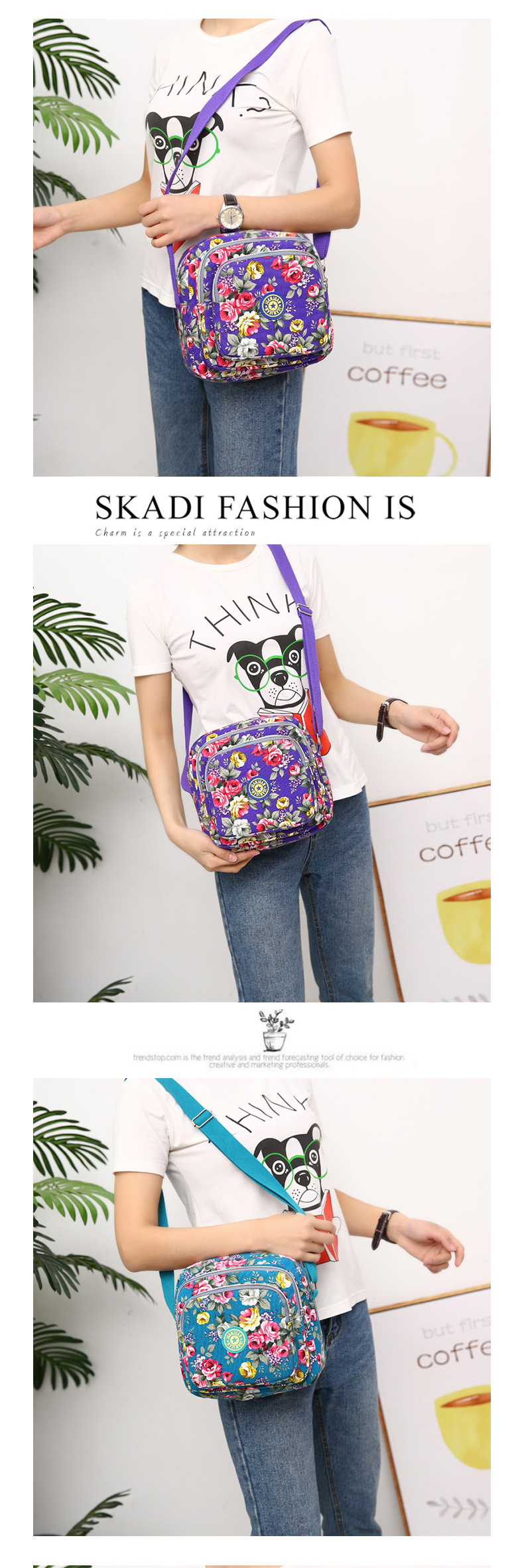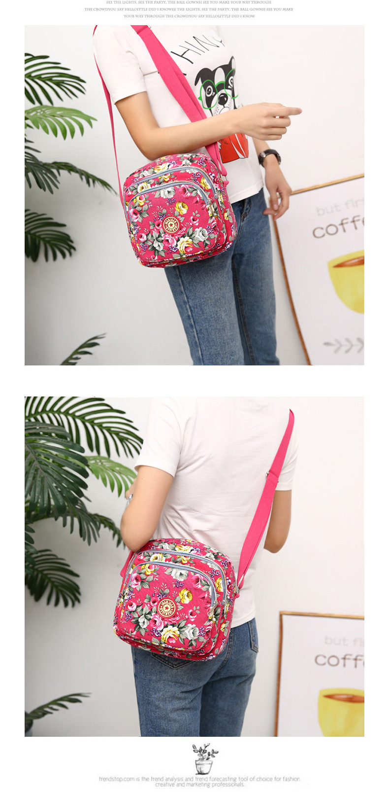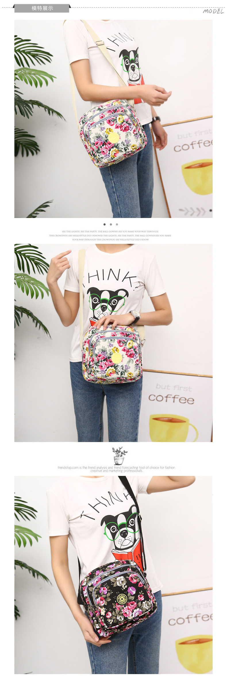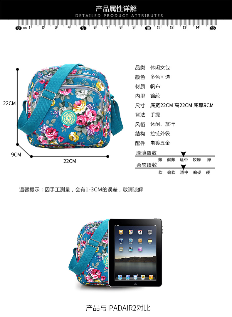 여성 메신저 백 한국식 캔버스 다층 새로운 스포츠 올 매치 숄더 캐주얼 여름 중반 작은 크로스 바디 백 꽃 무늬 백스토어 가기