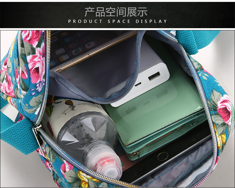 여성 메신저 백 한국식 캔버스 다층 새로운 스포츠 올 매치 숄더 캐주얼 여름 중반 작은 크로스 바디 백 꽃 무늬 백