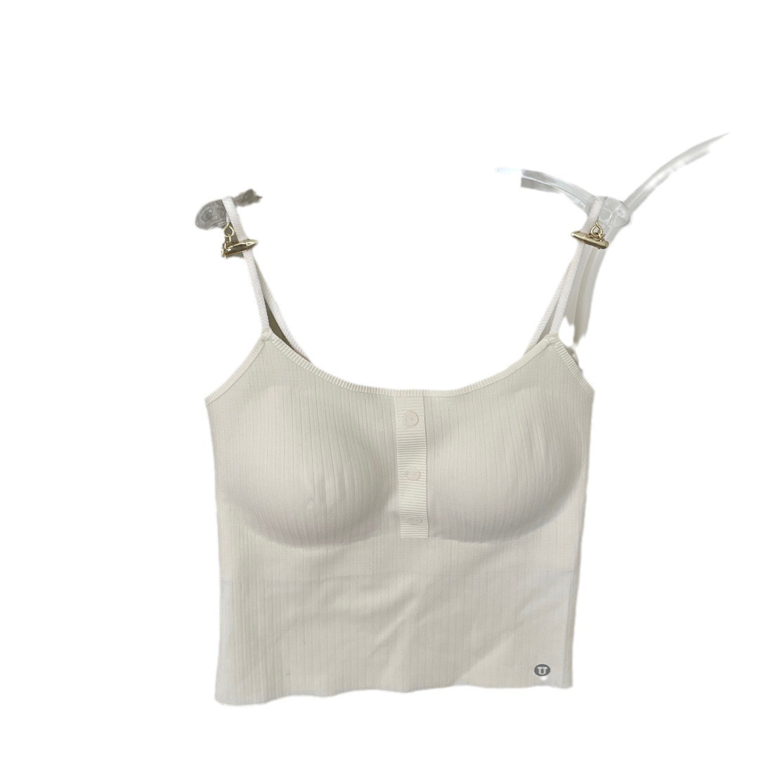 부드럽고 아름다운 ~ 가을과 겨울 원활한 샌딩 캐미솔 반 고정 컵 조커베이스 착용 얇은 어깨 끈 버튼 여성