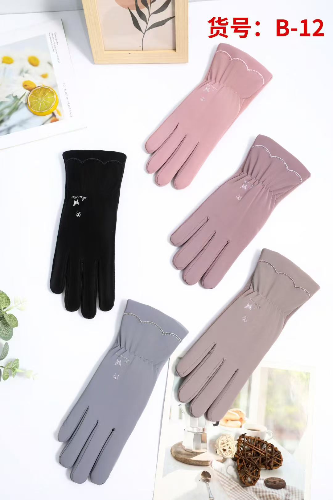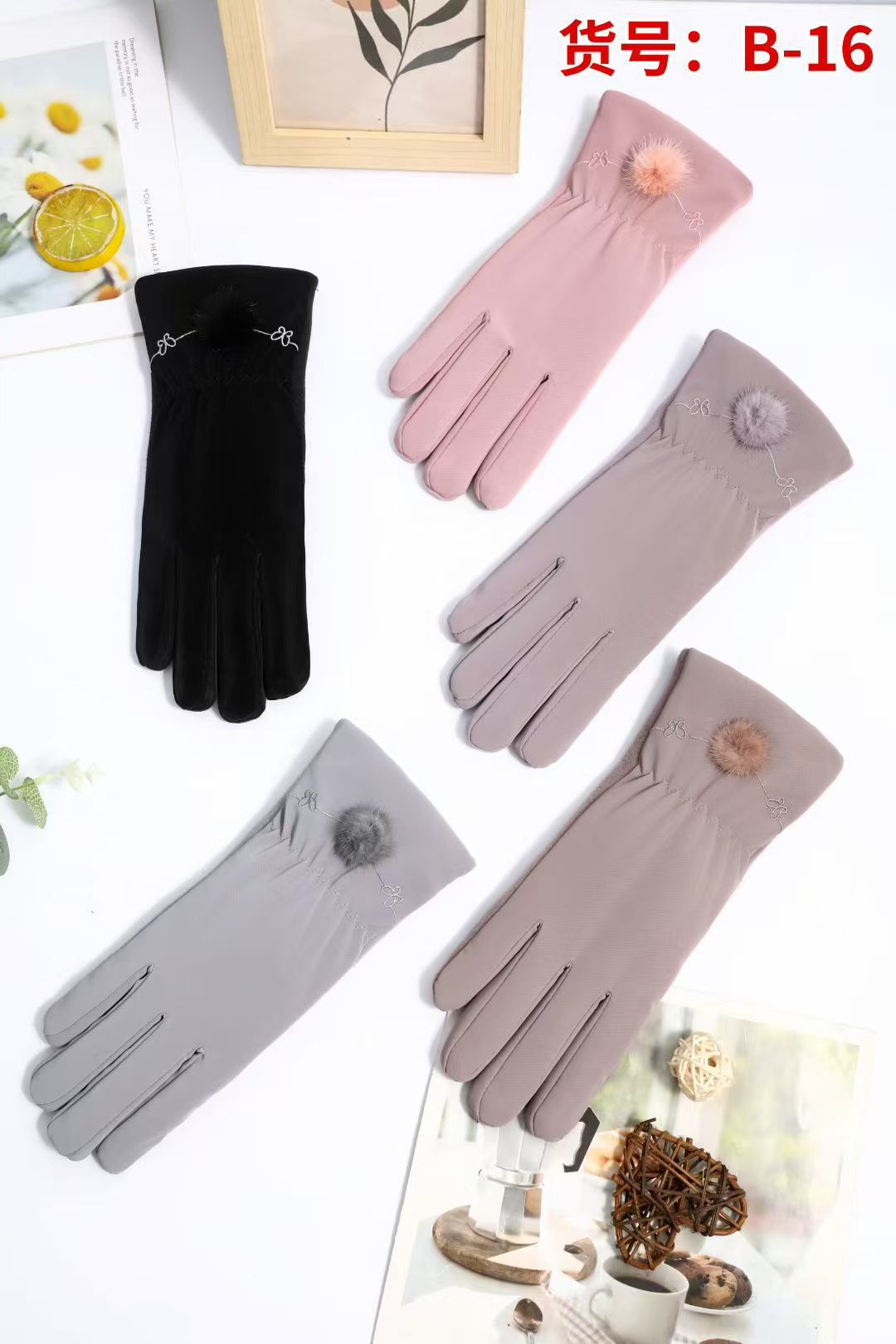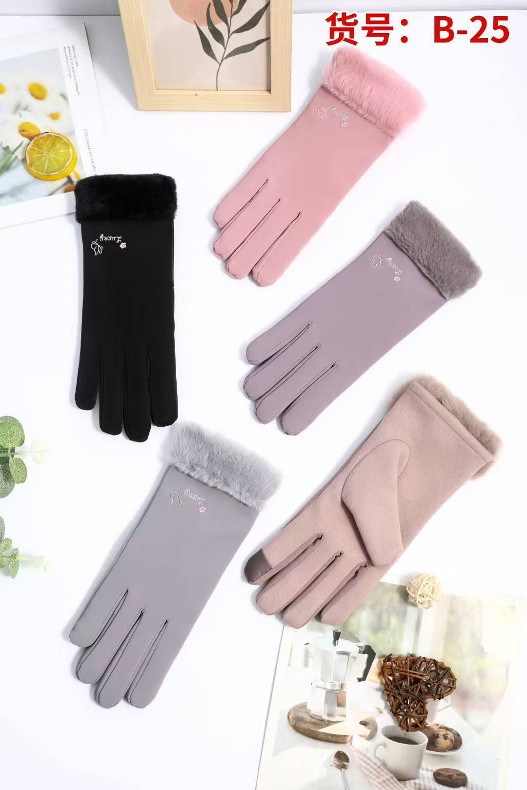 크로스보더 여성용 AB 스타일 독일산 벨벳 장갑 겨울용 보온 자전거/전기차 장갑 터치스크린 감촉 방한스토어 가기