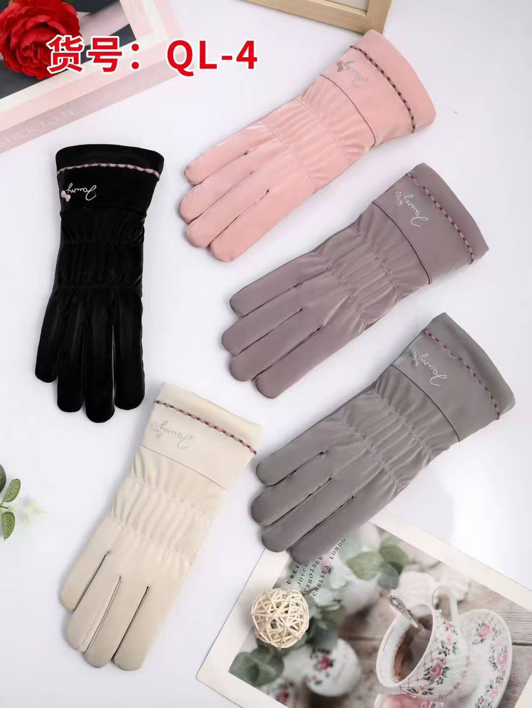 크로스보더 여성용 AB 스타일 독일산 벨벳 장갑 겨울용 보온 자전거/전기차 장갑 터치스크린 감촉 방한