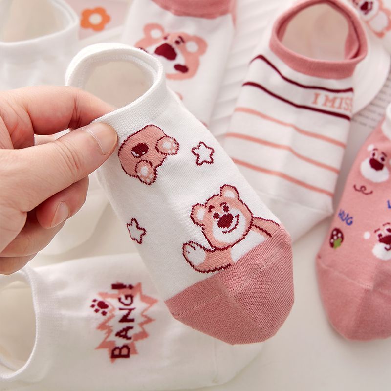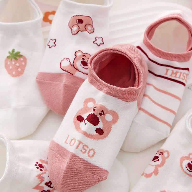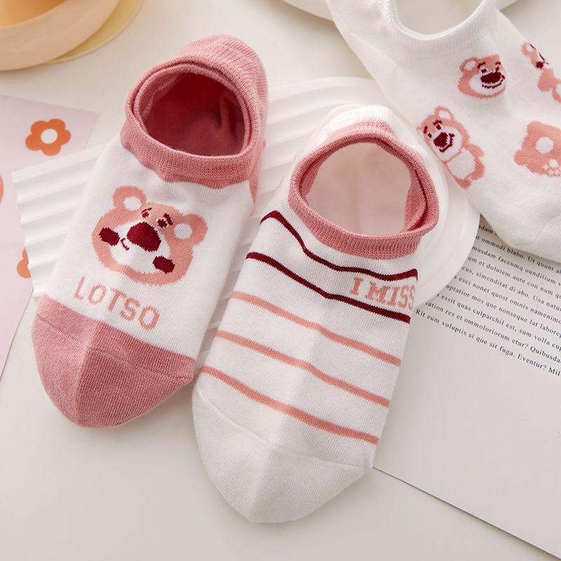 새로운 딸기 곰 양말 여성용 여름 보트 양말 트렌디 한 모든 매치 얇은 짧은 양말 미끄럼 방지 숨겨진 양말스토어 가기