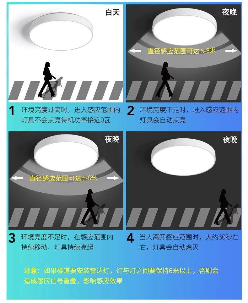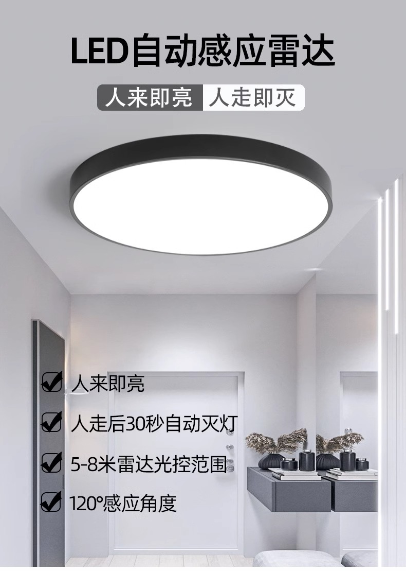 Led 지능형 유도 천장 조명 음성 제어 발코니 통로 계단 가정용 입구 복도 레이더 인체 유도 등
