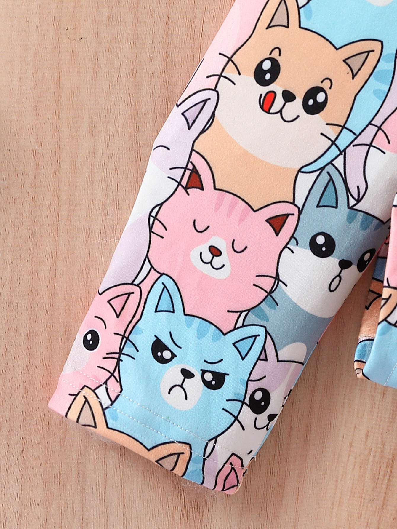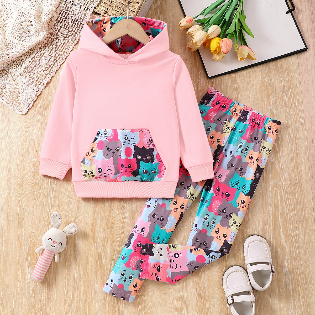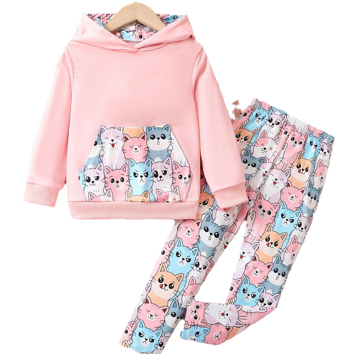 대외 무역 도매 소녀 봄과 가을 패션 긴 소매 2 피스 어린이 소녀 귀여운 만화 고양이 바지 세트스토어 가기