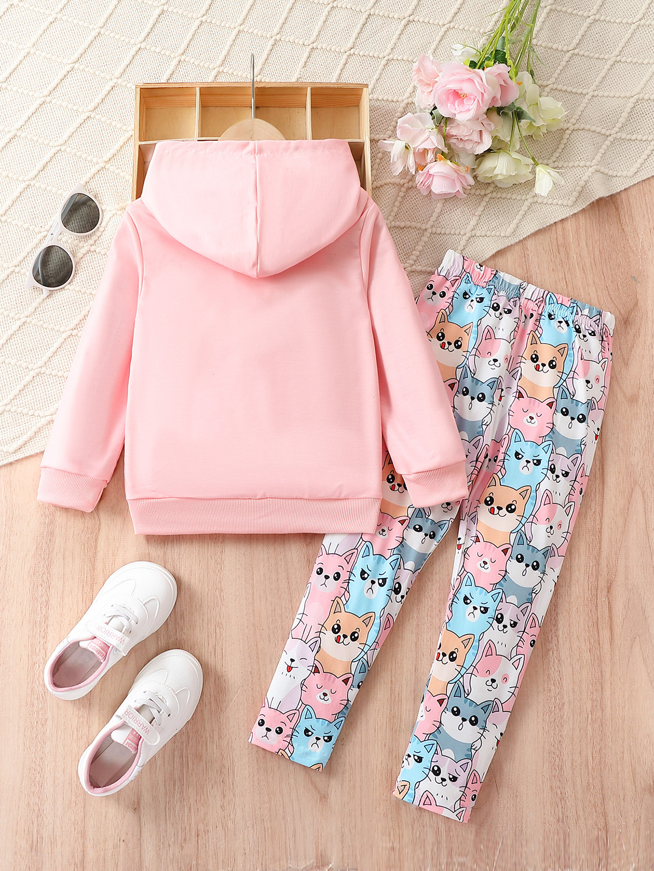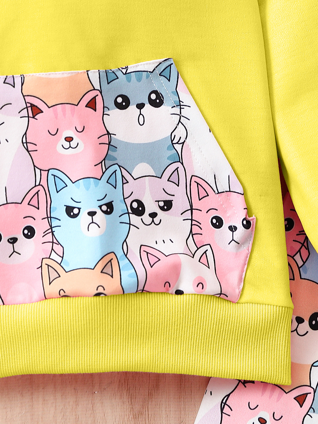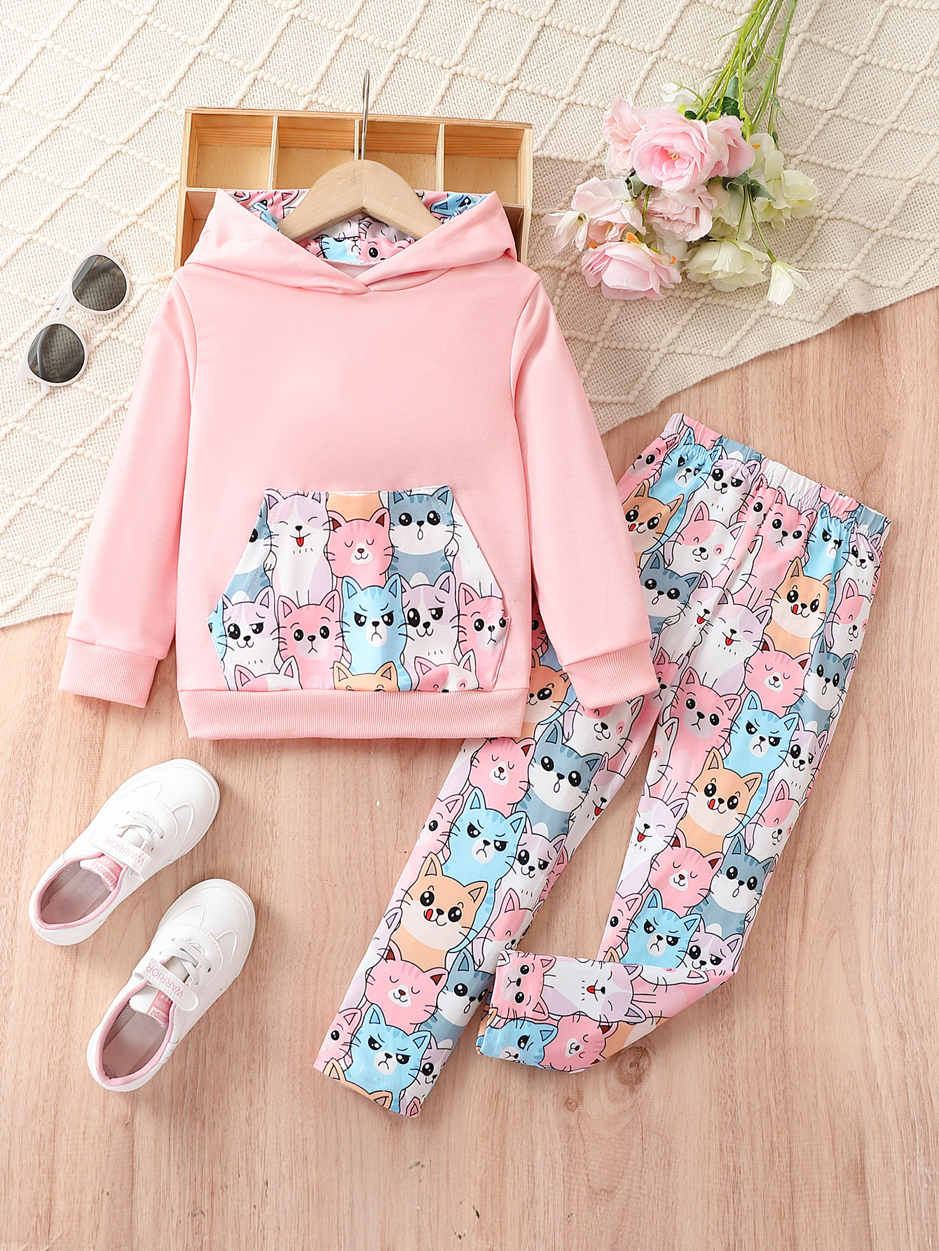 대외 무역 도매 소녀 봄과 가을 패션 긴 소매 2 피스 어린이 소녀 귀여운 만화 고양이 바지 세트스토어 가기