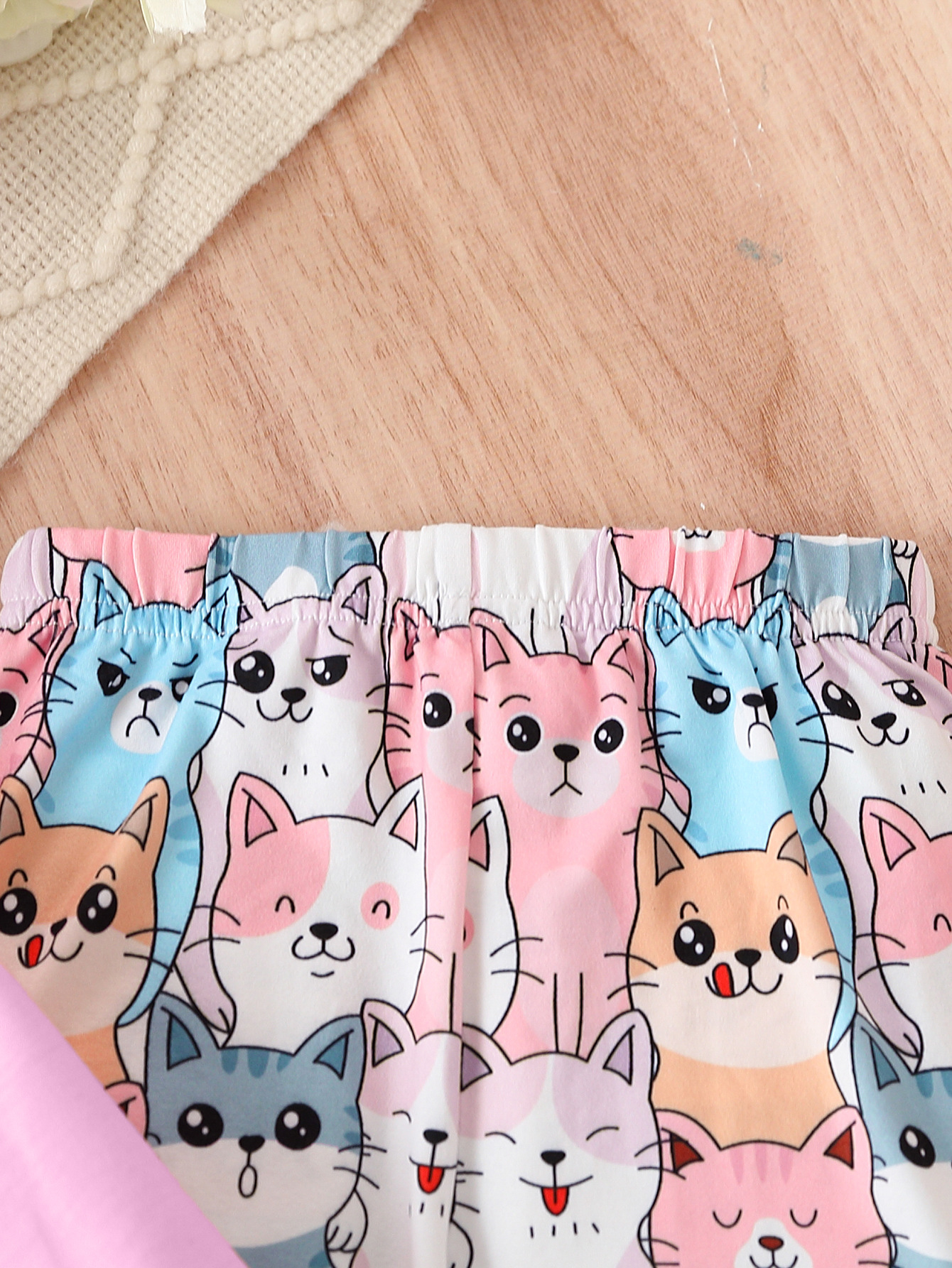 대외 무역 도매 소녀 봄과 가을 패션 긴 소매 2 피스 어린이 소녀 귀여운 만화 고양이 바지 세트