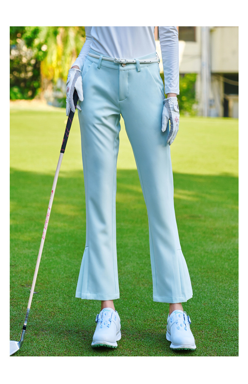 여성용 골프 바지 봄 가을 단색 슬릿 마이크로 플레어 캐주얼 롱 팬츠 패션 슬림 자외선 차단 스포츠 바지
