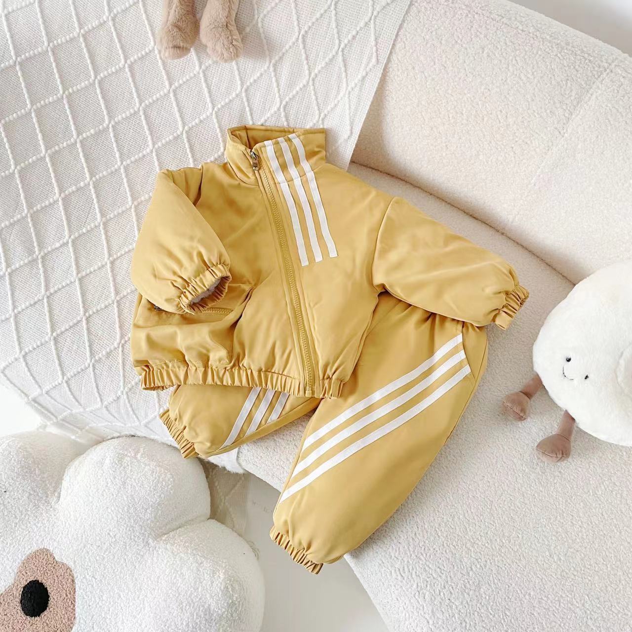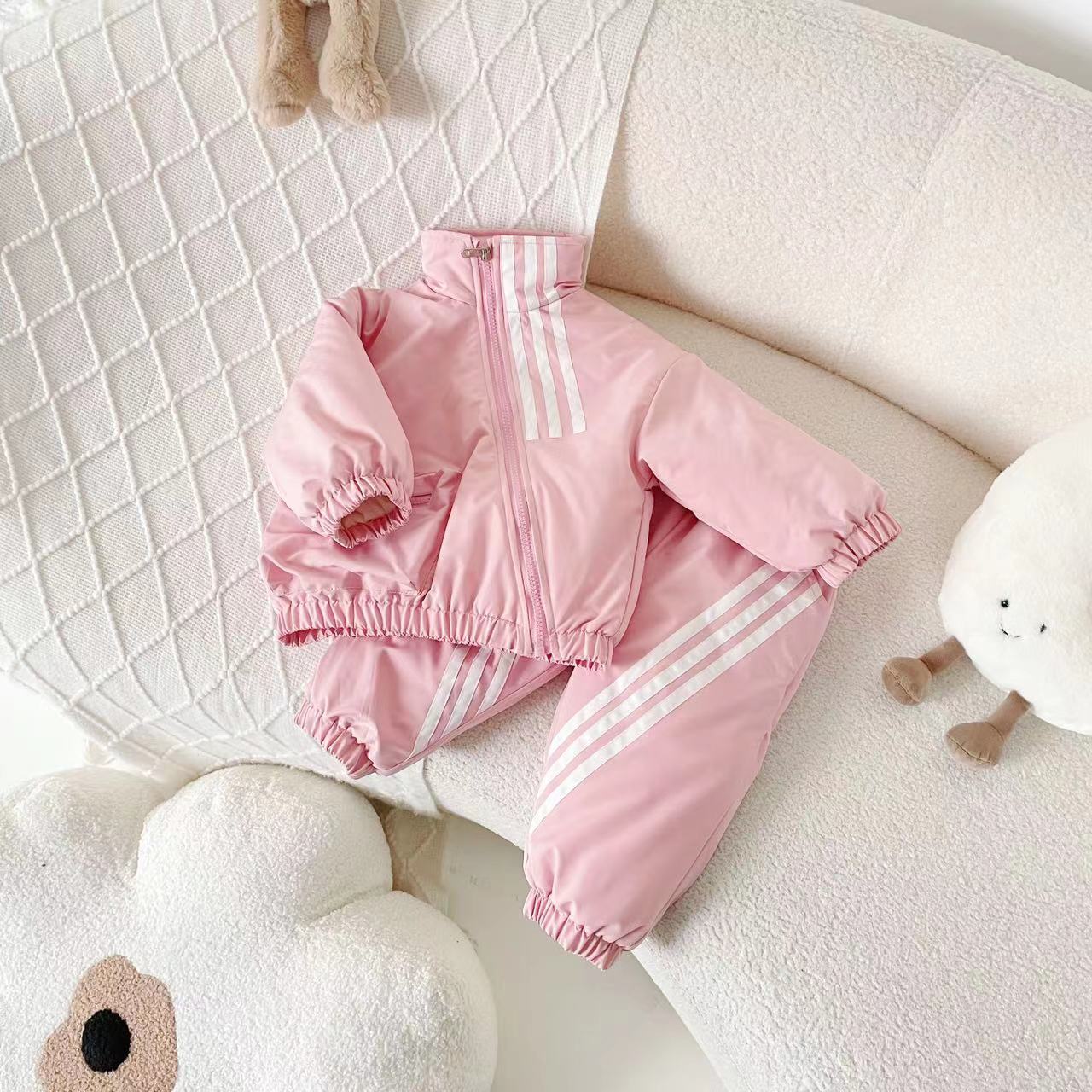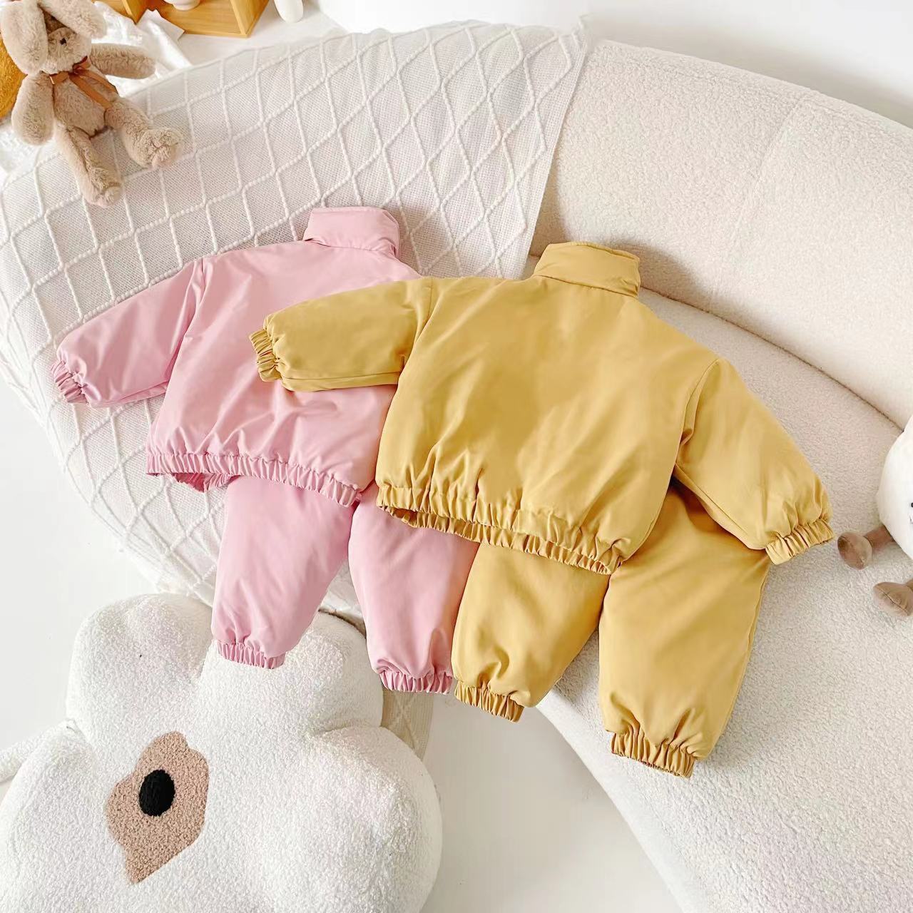 어린이 기모 두꺼운 어린이 세트 2023 겨울 여아 면 패딩 재킷 세트 기모 두꺼운 따뜻한 스포츠 스타일 면 패딩 재킷