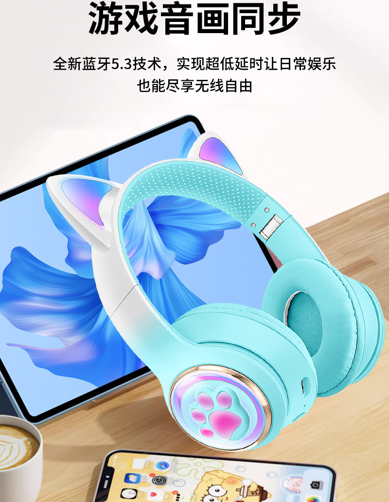 국경 간 새로운 발광 서브 우퍼 게임 무선 헤드셋 귀여운 공간 캡슐 헤드셋 블루투스 헤드셋