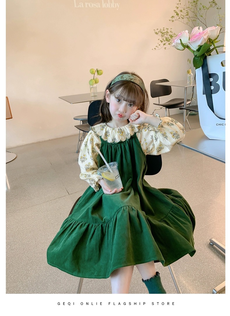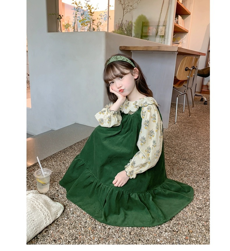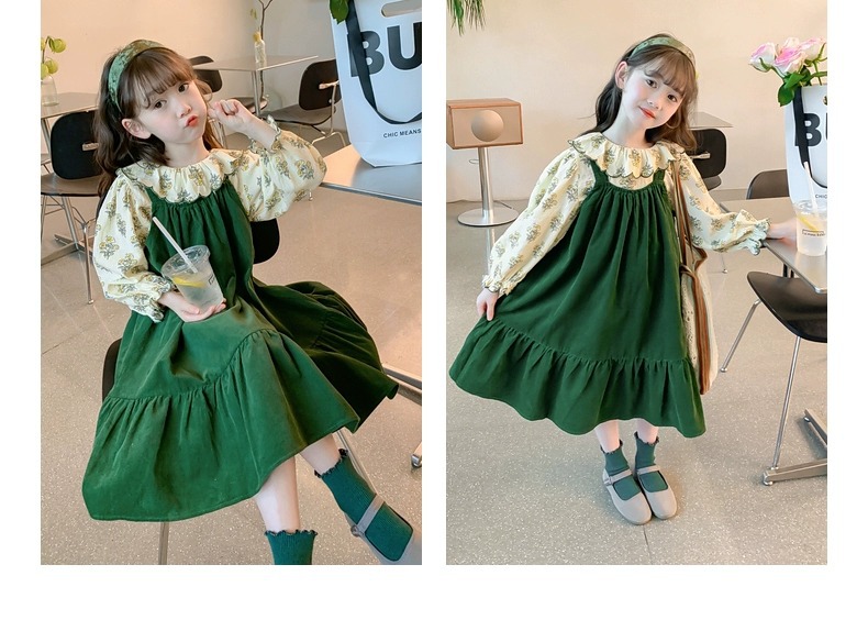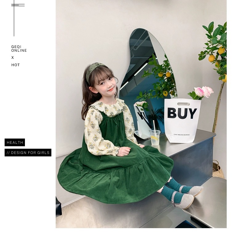 여아 드레스 2025 봄 신작 아동 봄, 가을 순면 코듀로이 셔츠 공주 스커트 투피스 세트스토어 가기