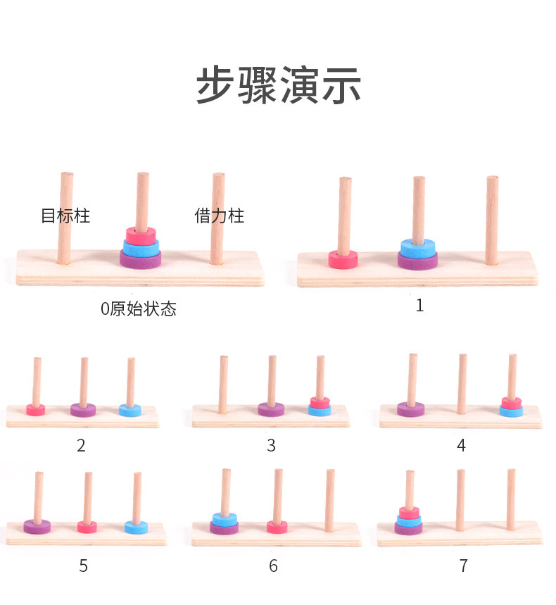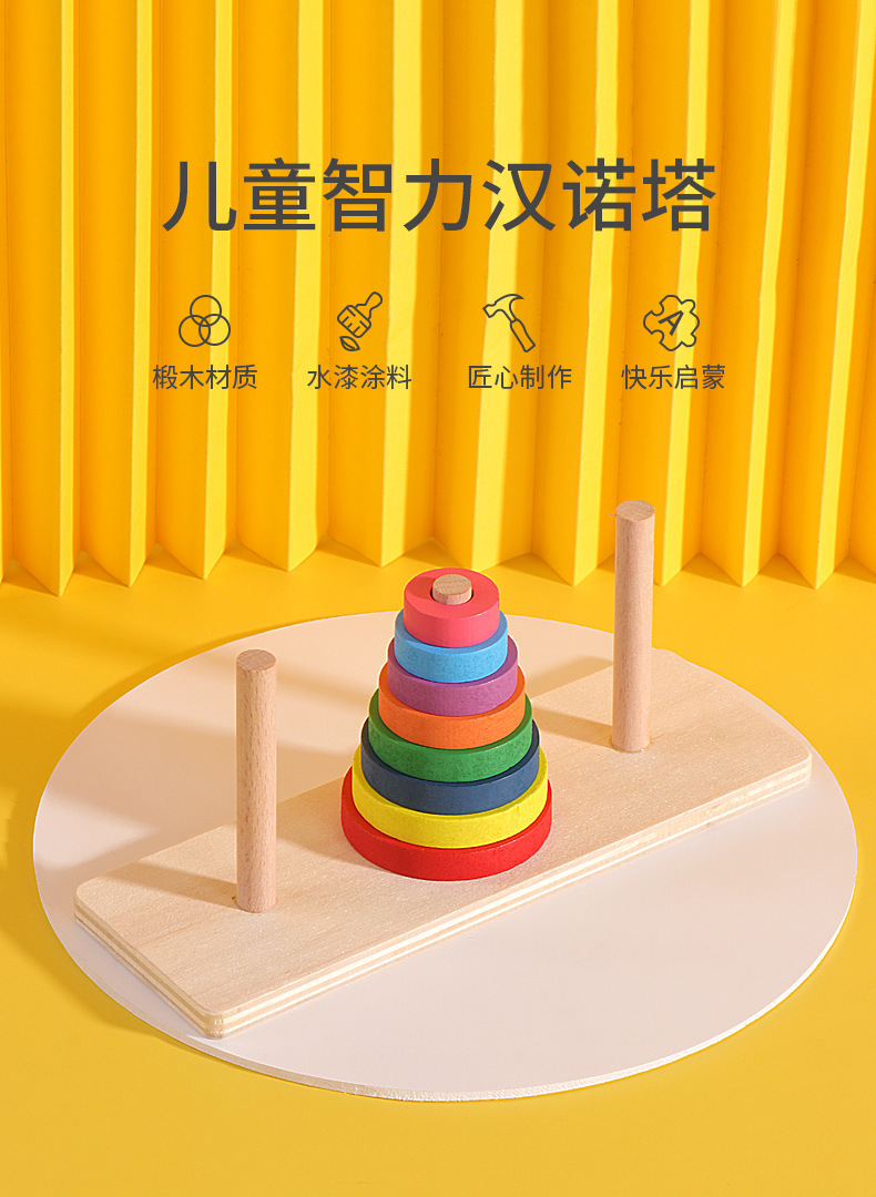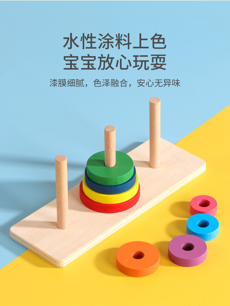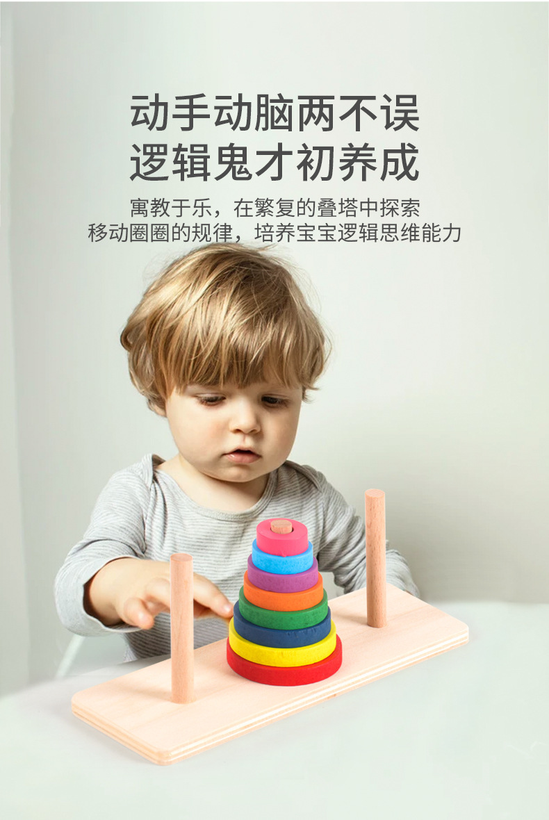 나무 하노버 타워 레인보우 타워 초등 학생을위한 어린이 조기 교육 교육 게임 논리적 사고 조기 교육 교육 교육 완구스토어 가기