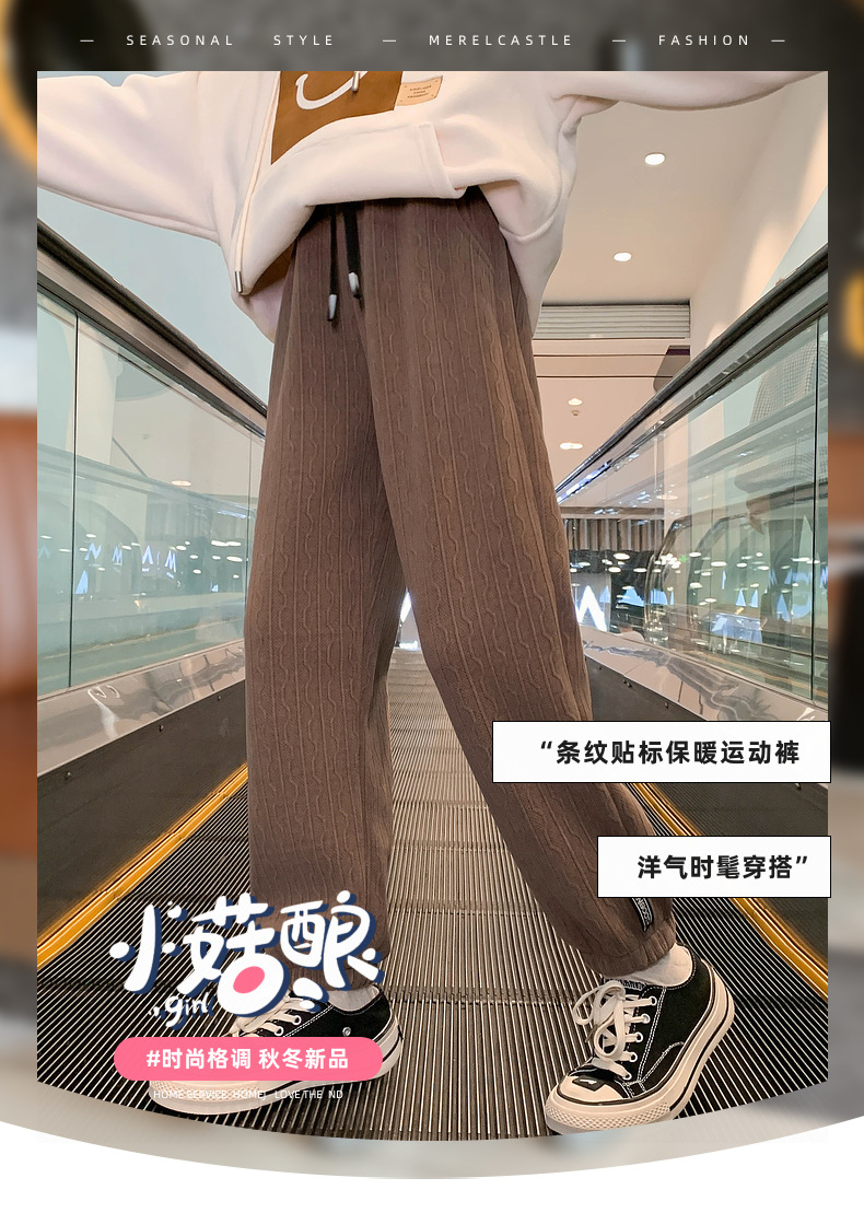 여아용 기모 바지 가을 겨울용 2024 신상 아동 겨울용 두꺼운 일체형 기모 스포츠 바지스토어 가기