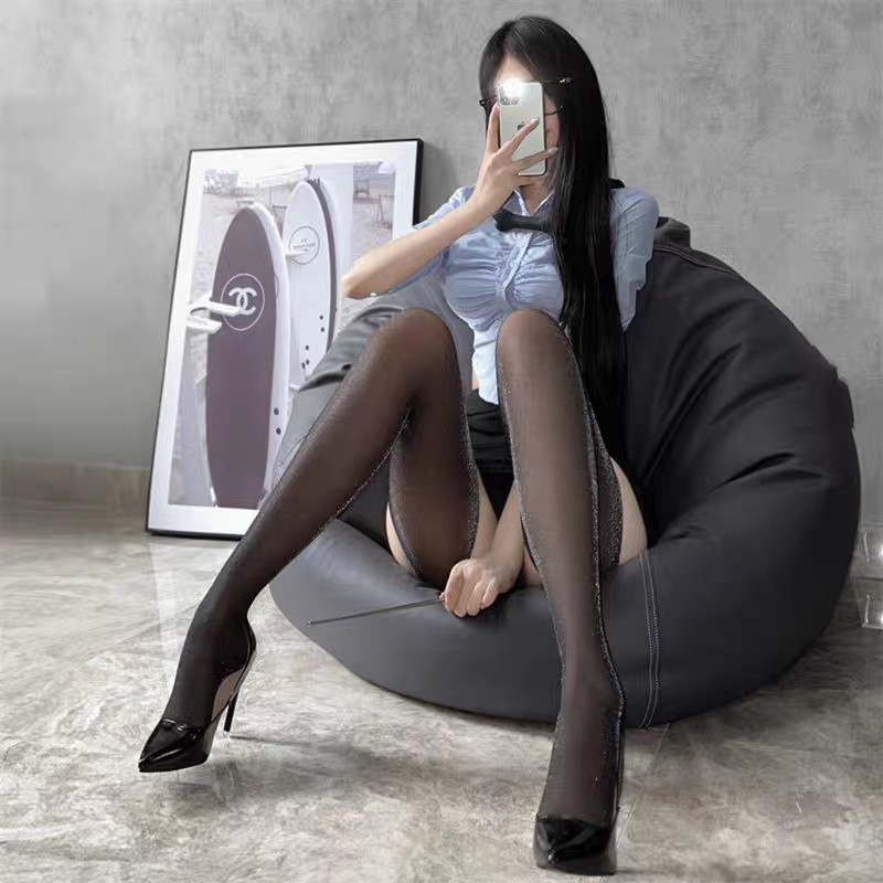 패션 다채로운 스트랩 통합 울트라 얇은 플래시 스타킹 블랙 실크 밝은 실크 여성의 실버 진주 빛 팬티 스타킹 여름