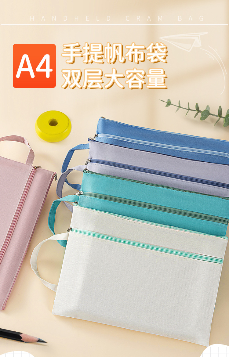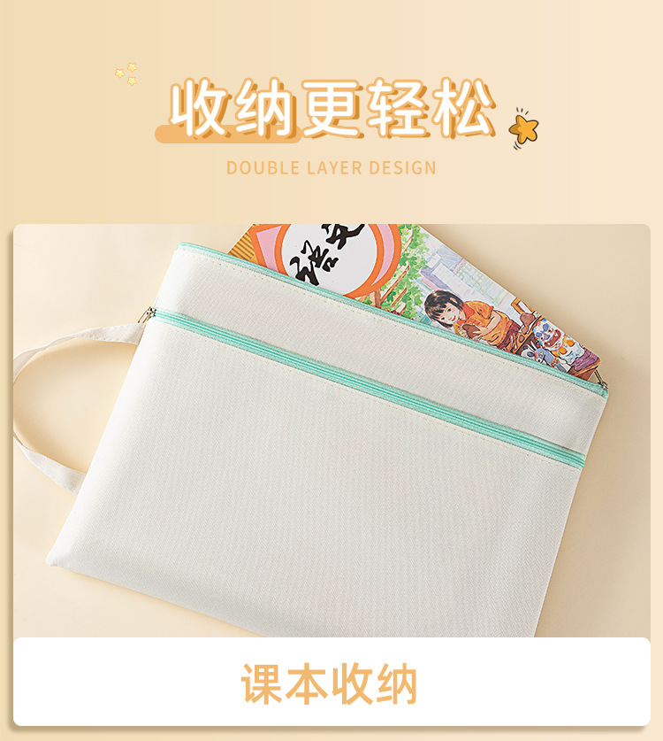 모란디 A4 캔버스 가방 2 중 대용량 정보 가방 학생 시험 용지 보관 가방 휴대용 지퍼 파일 가방