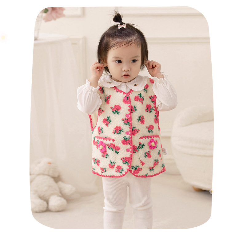 아이디어 소녀 플러시 패딩 조끼 2023 가을과 겨울 기모 조끼 아기 아기 어린이 의류 코트 3266스토어 가기