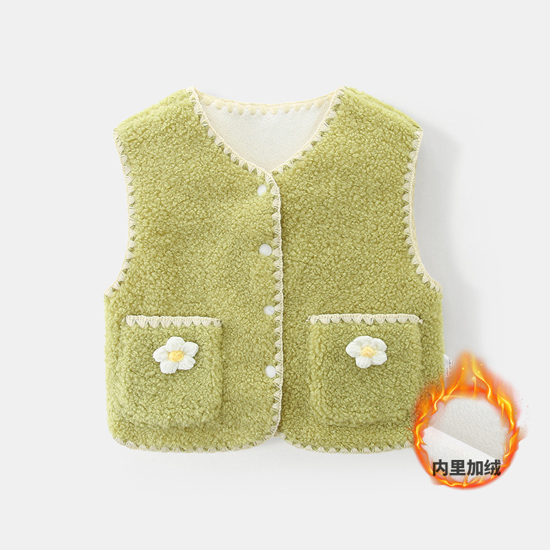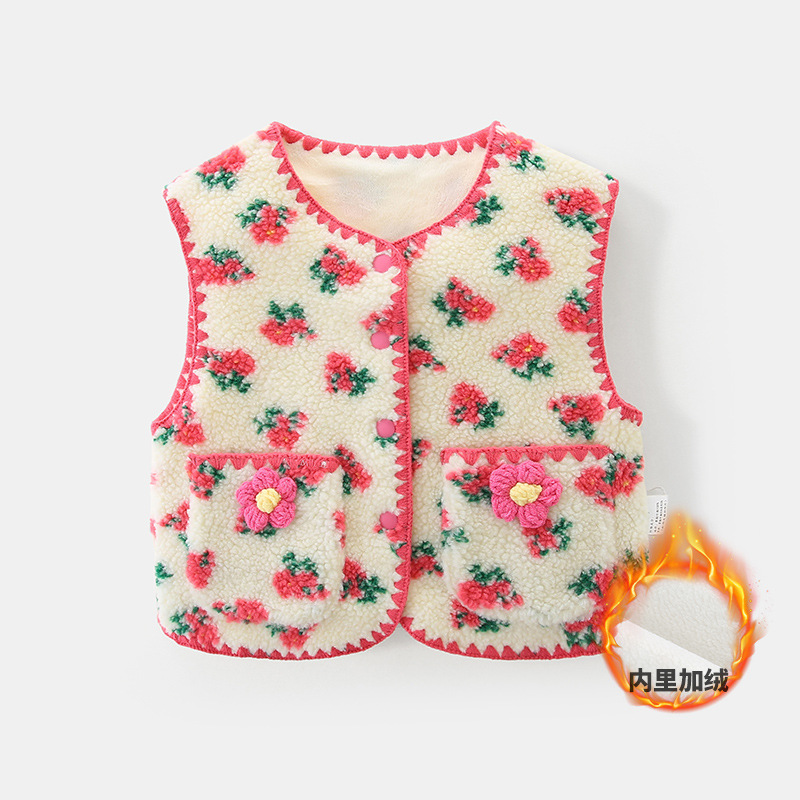 아이디어 소녀 플러시 패딩 조끼 2023 가을과 겨울 기모 조끼 아기 아기 어린이 의류 코트 3266