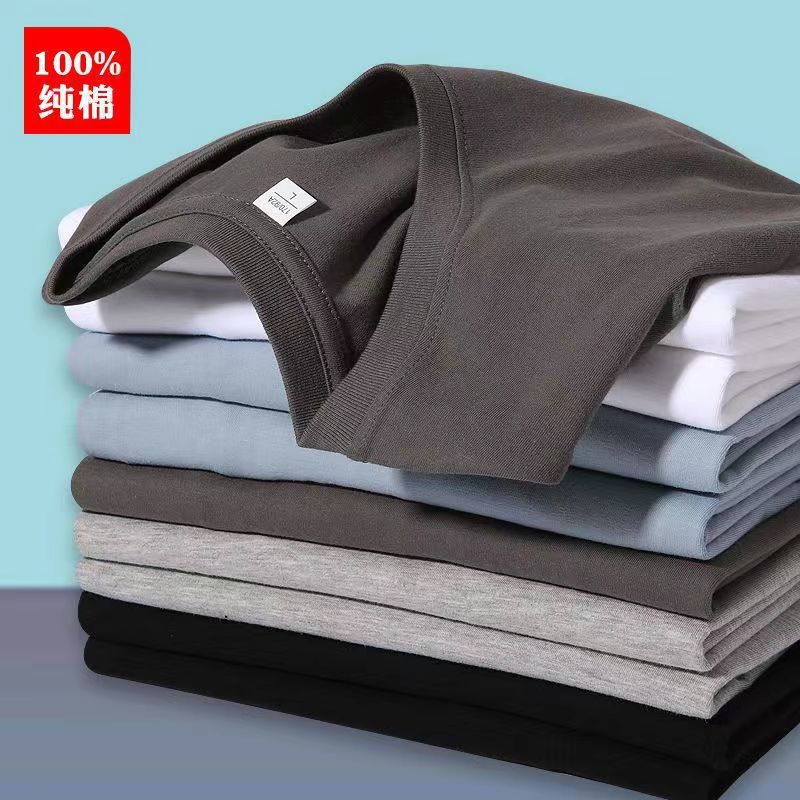200g 순면 남성용 반팔 티셔츠, 단색 캐주얼 라운드넥 반팔, 빅사이즈 이너웨어, 로고 인쇄 도매스토어 가기
