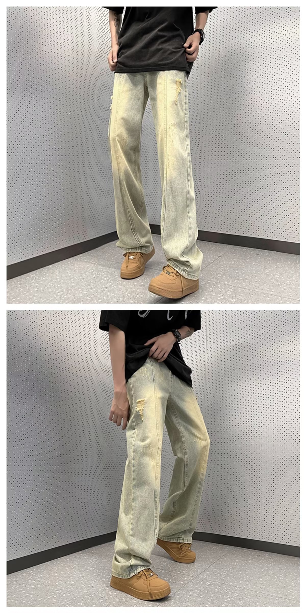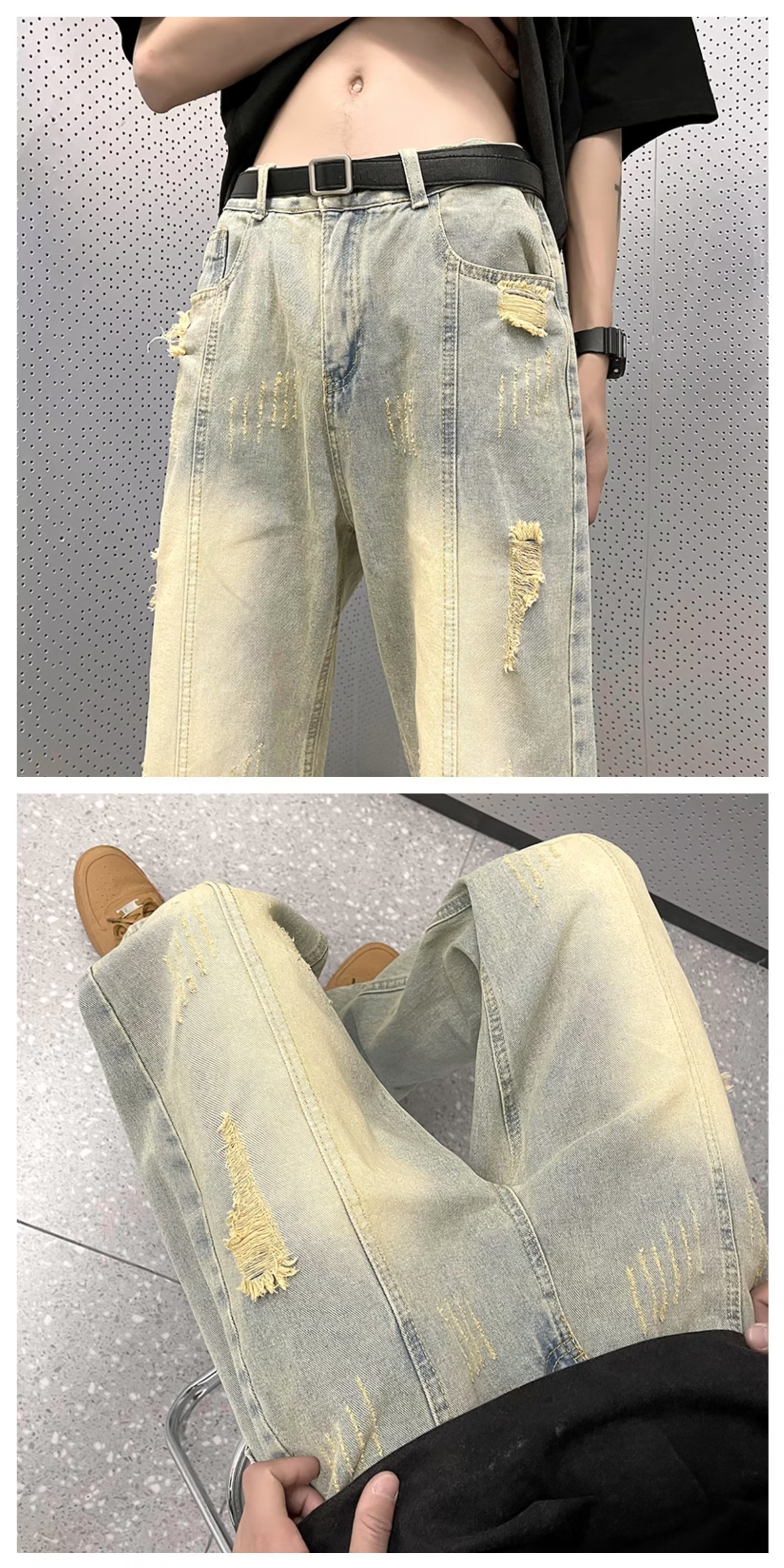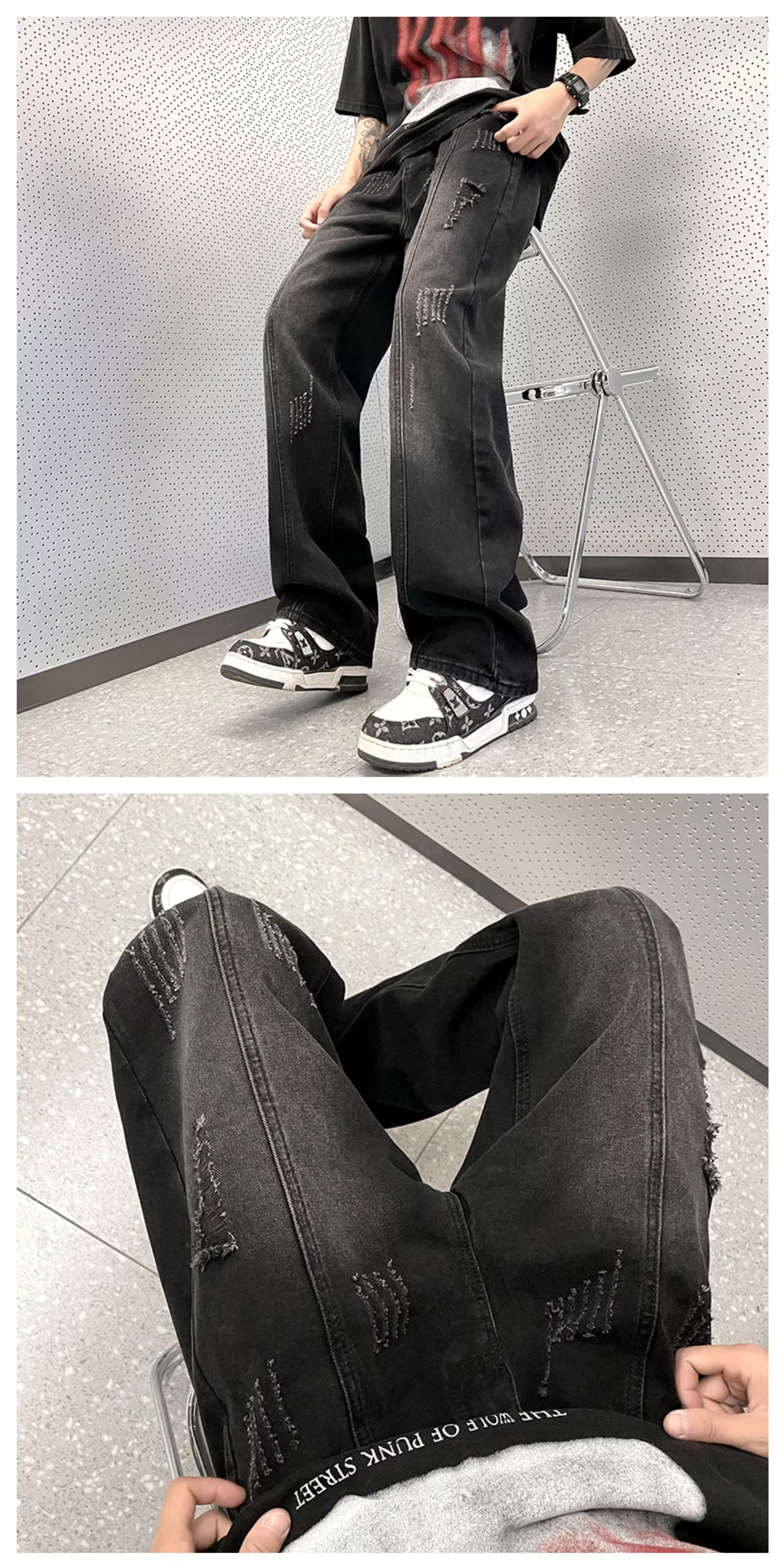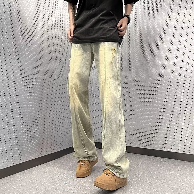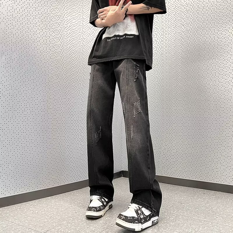 아메리칸 스타일 하이 스트리트 분위기 청바지 남성용 스트레이트 루즈한 모든 매치 팬츠 레트로 트렌디 인 팬츠 공장 아울렛
