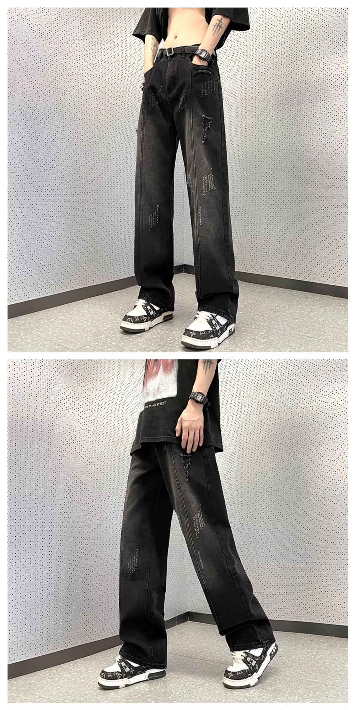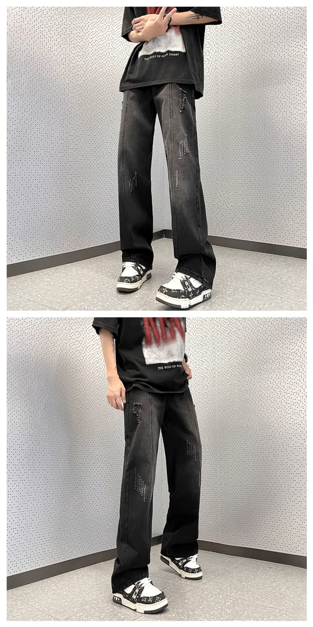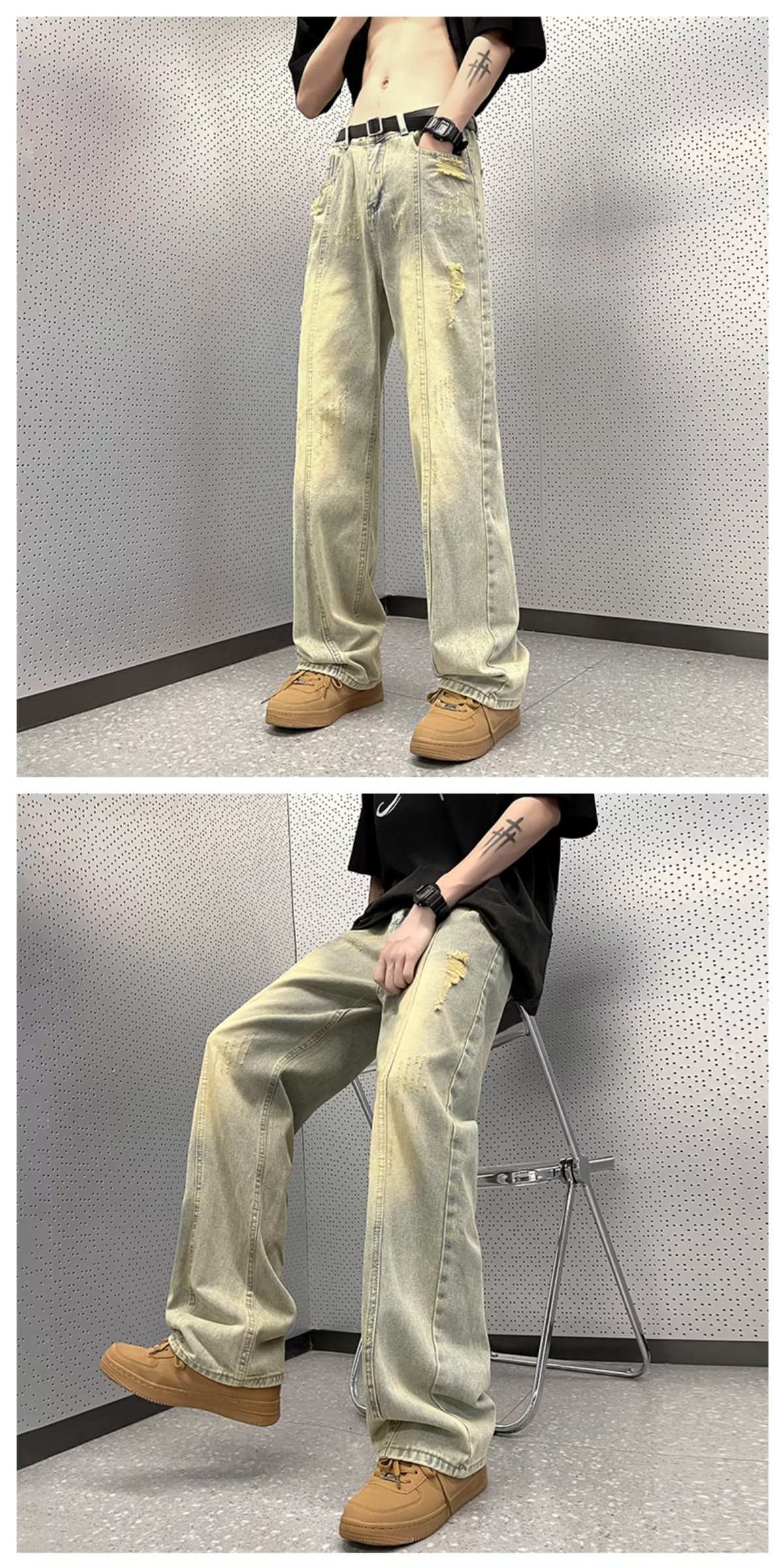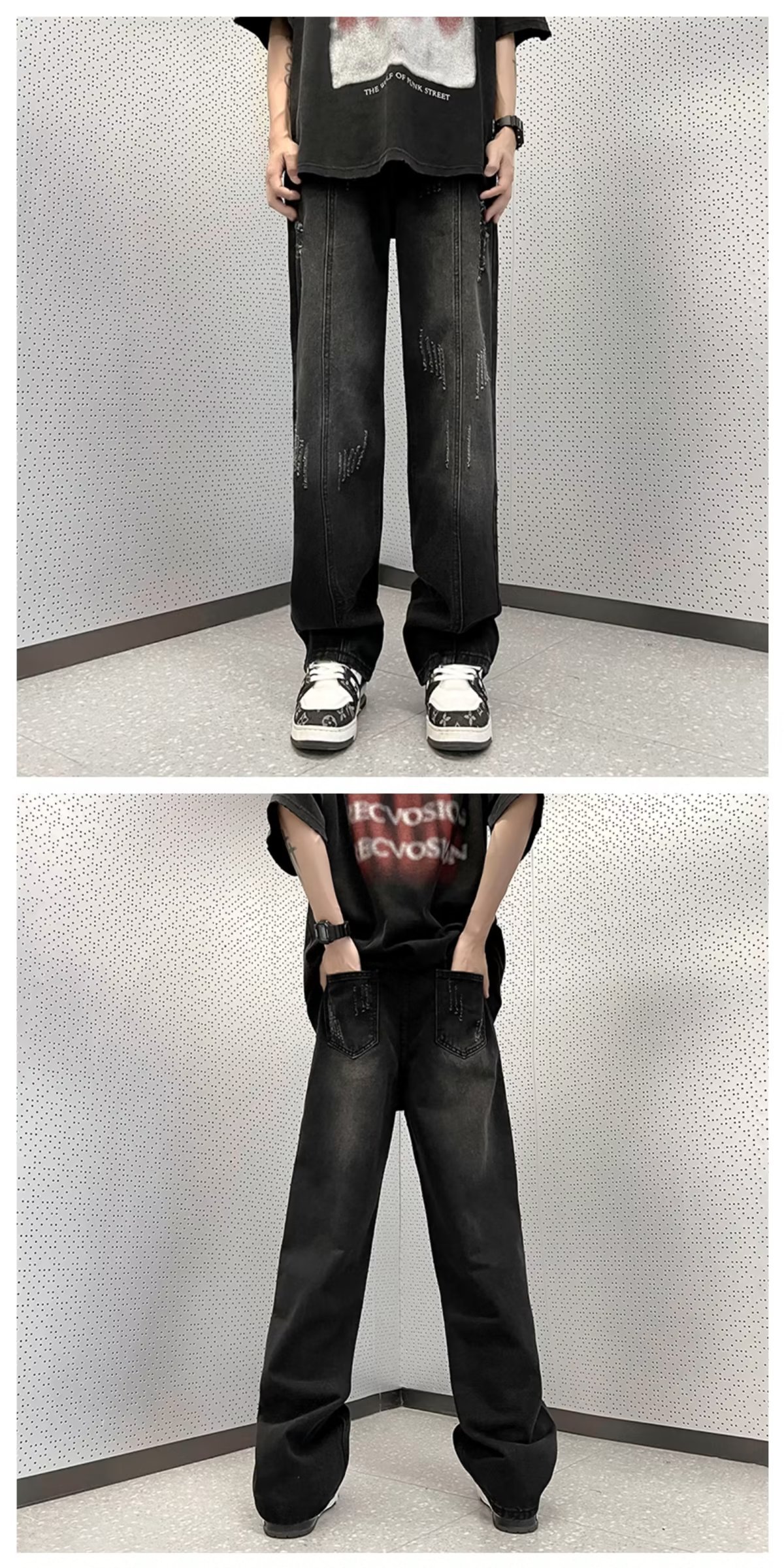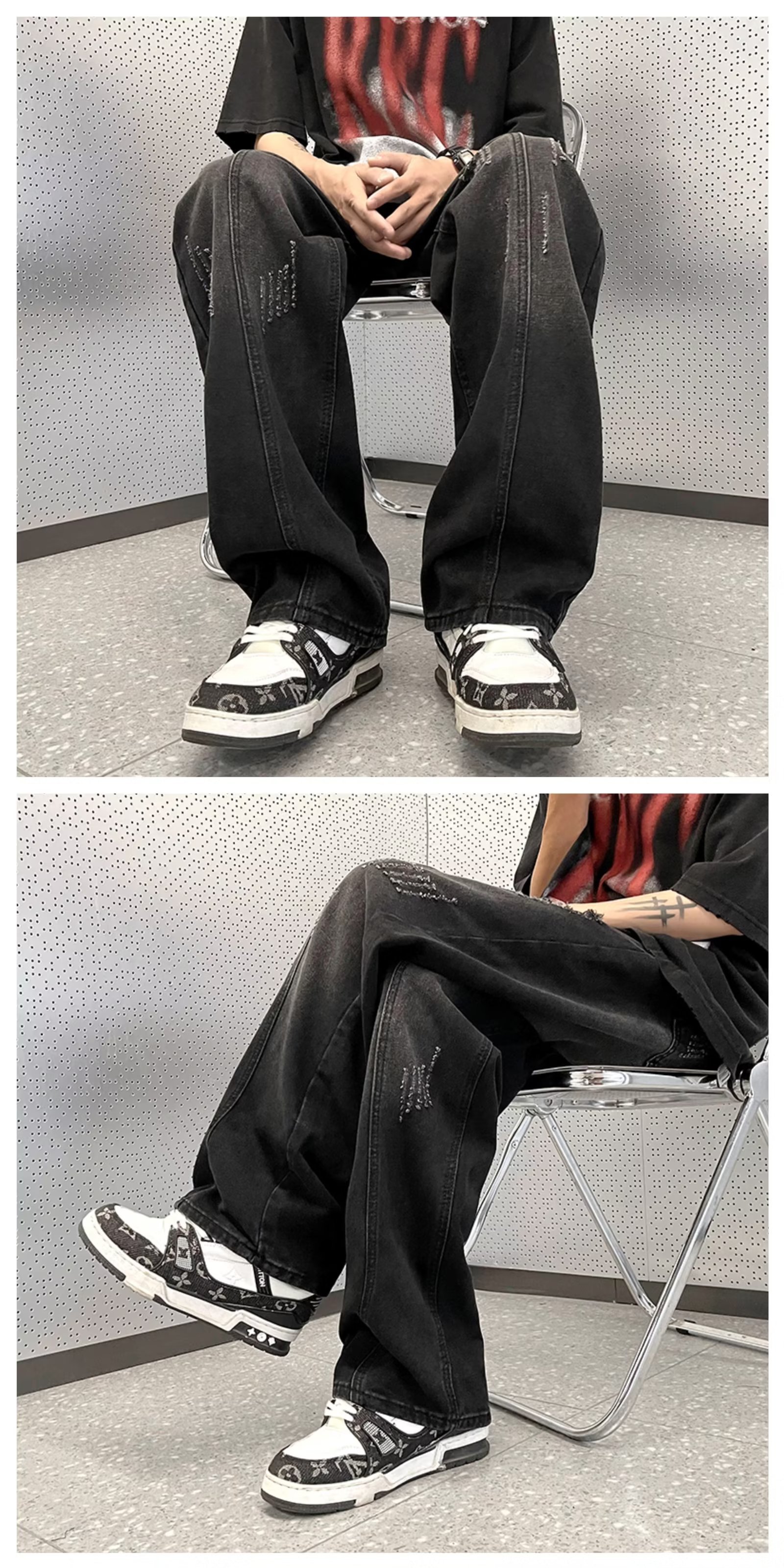 아메리칸 스타일 하이 스트리트 분위기 청바지 남성용 스트레이트 루즈한 모든 매치 팬츠 레트로 트렌디 인 팬츠 공장 아울렛