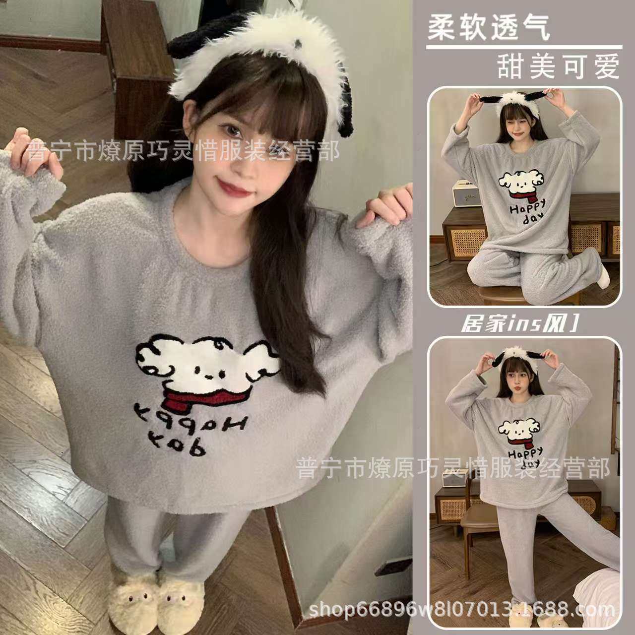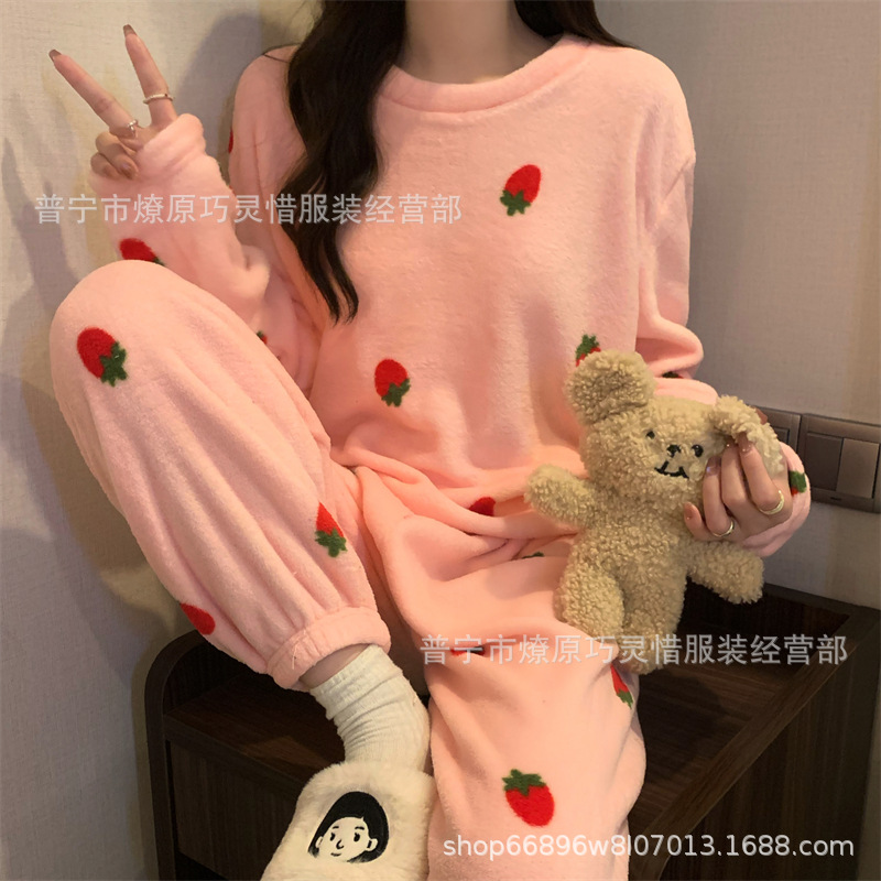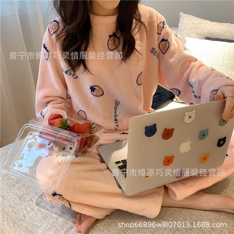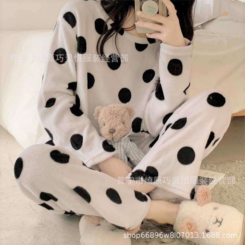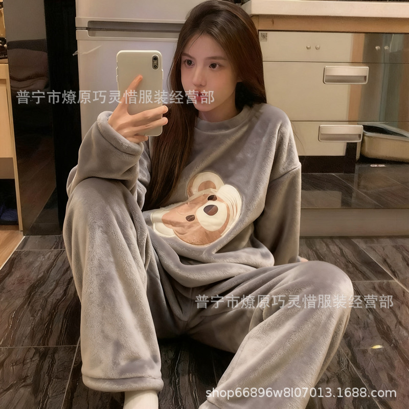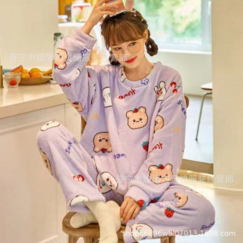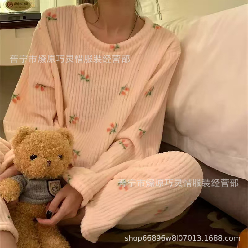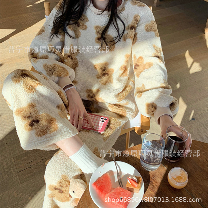 인터넷 유명 인사 새 곰 산호 양털 잠옷 소녀의 가을과 겨울 귀여운 달콤한 플란넬 홈웨어 세트 도매스토어 가기