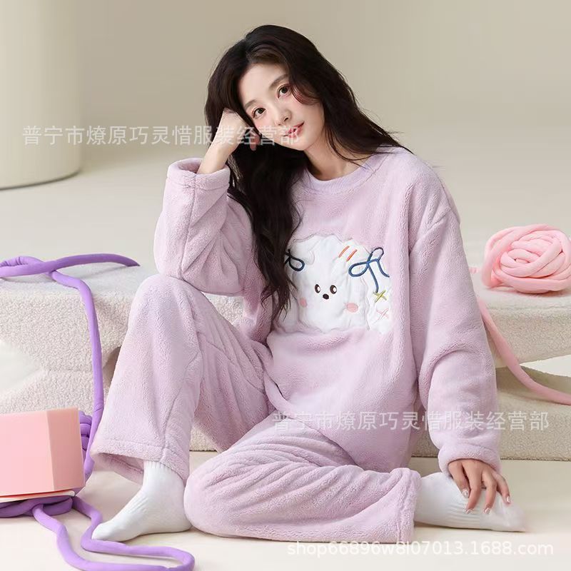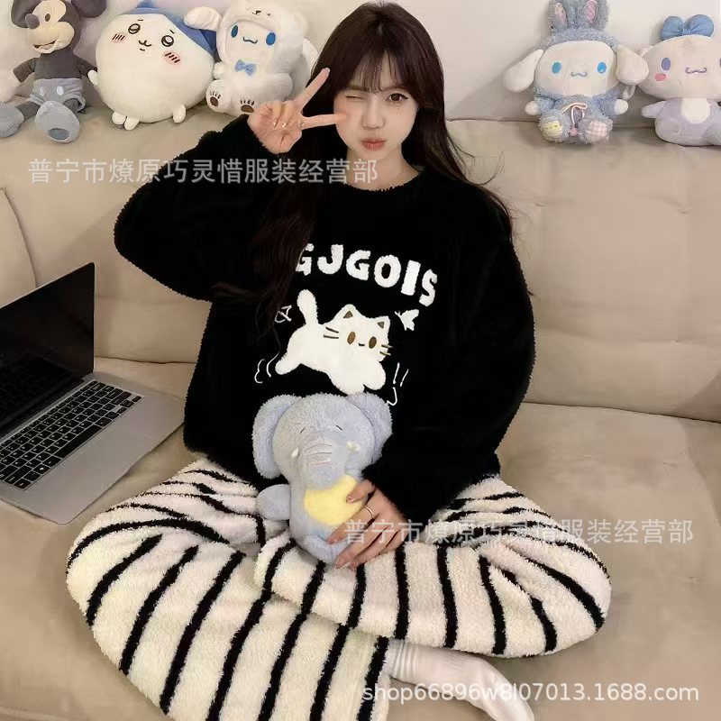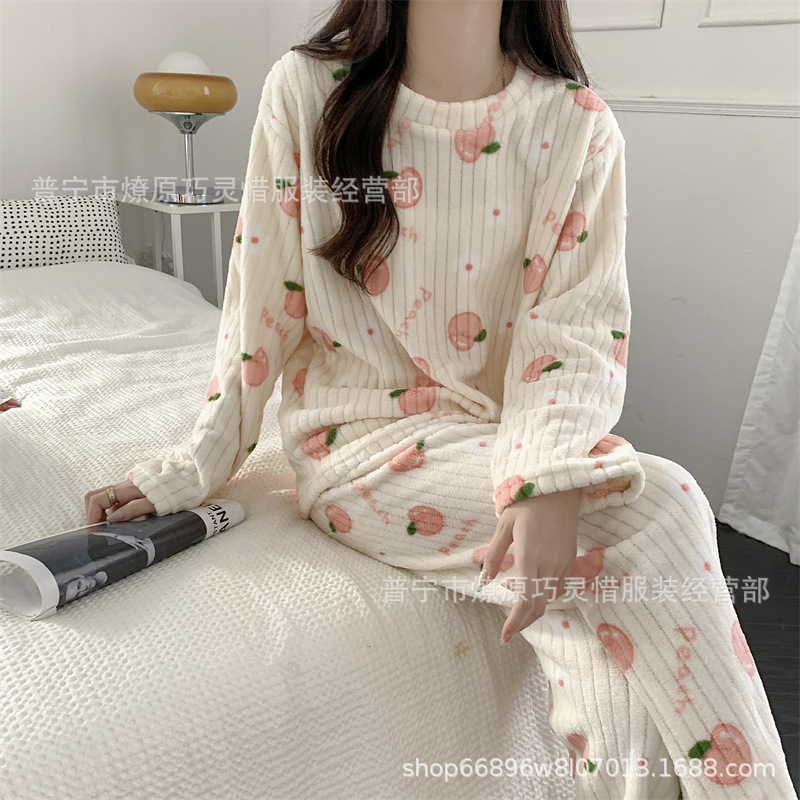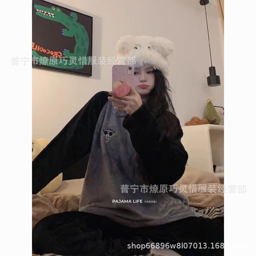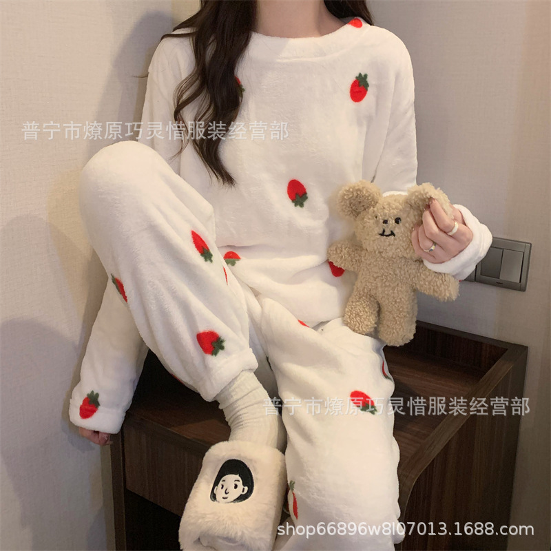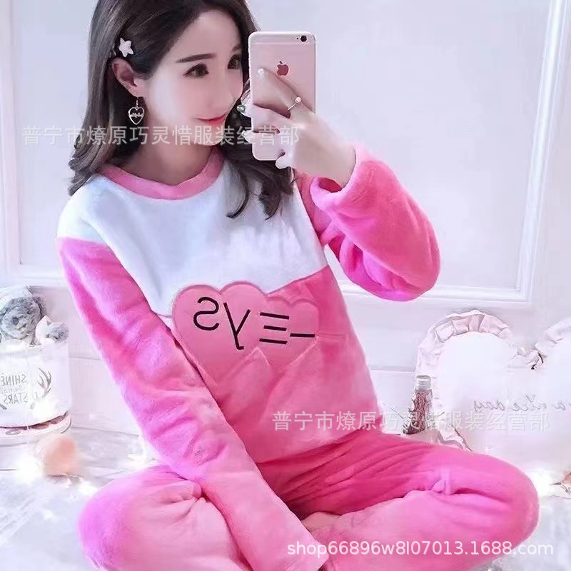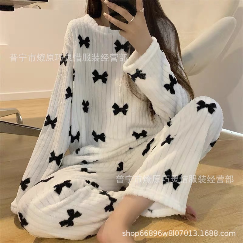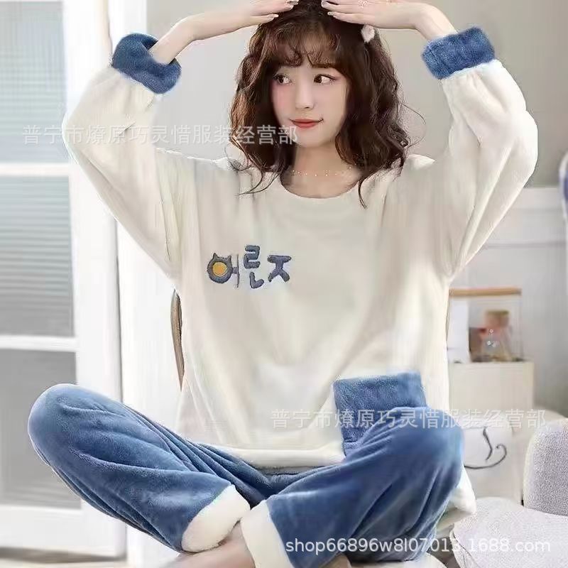 인터넷 유명 인사 새 곰 산호 양털 잠옷 소녀의 가을과 겨울 귀여운 달콤한 플란넬 홈웨어 세트 도매스토어 가기