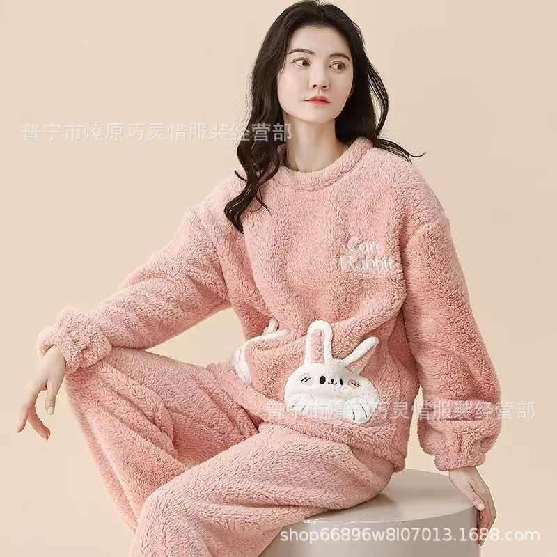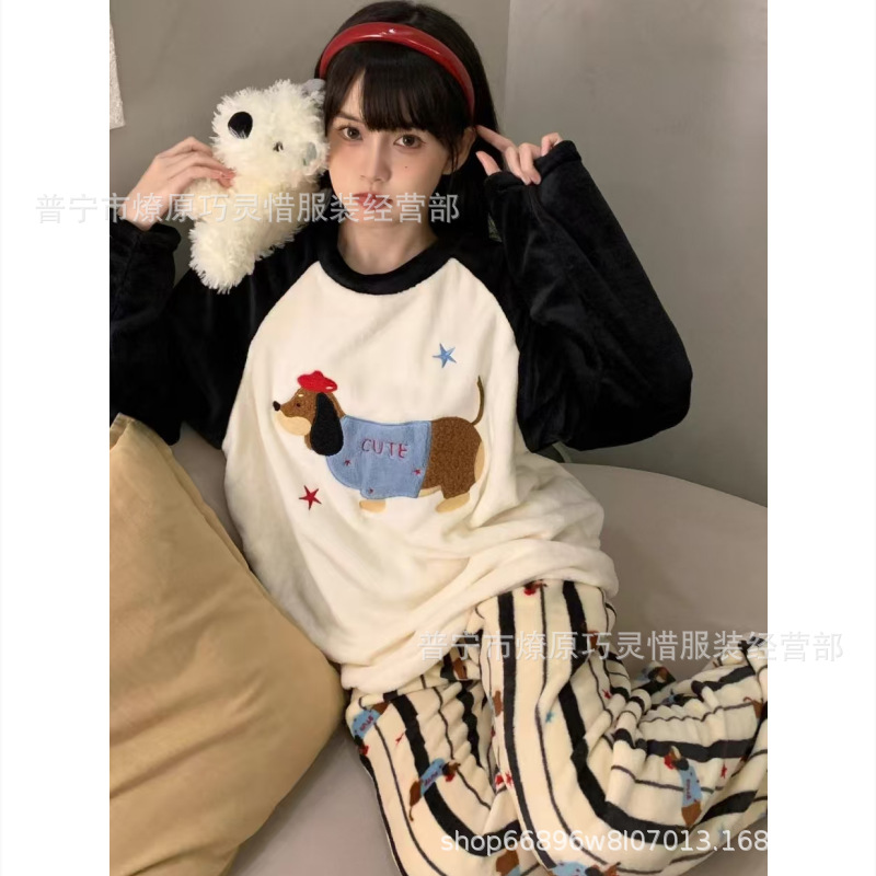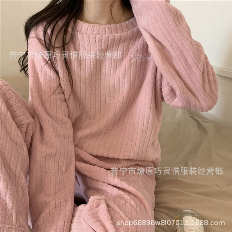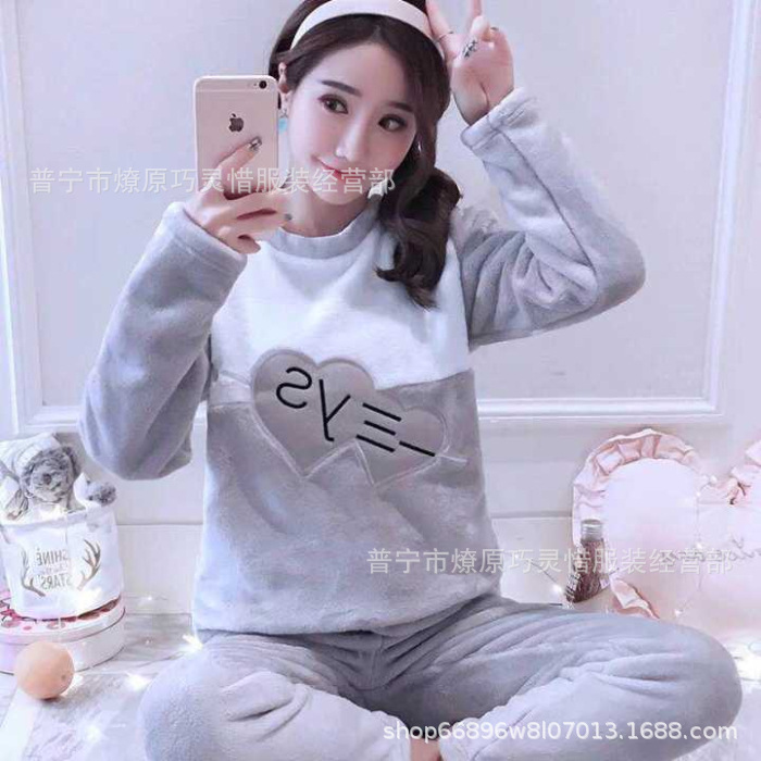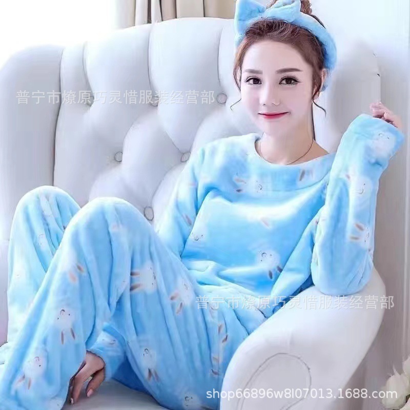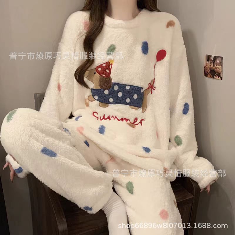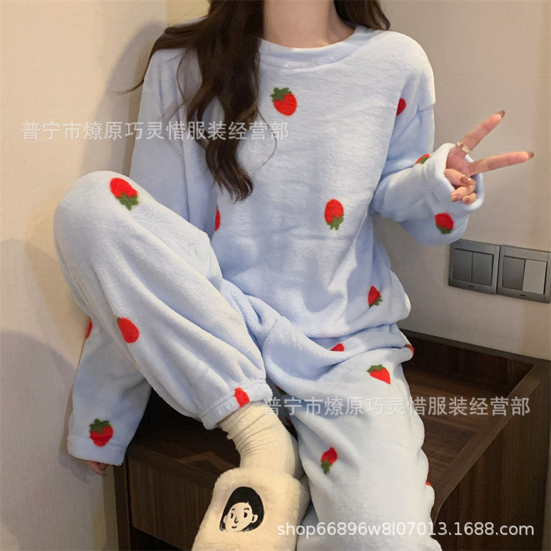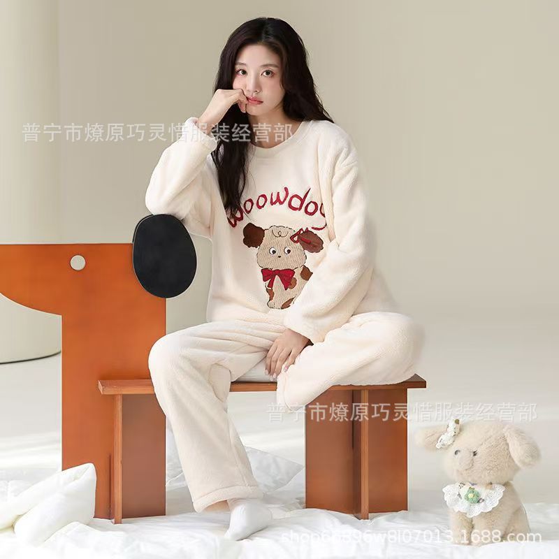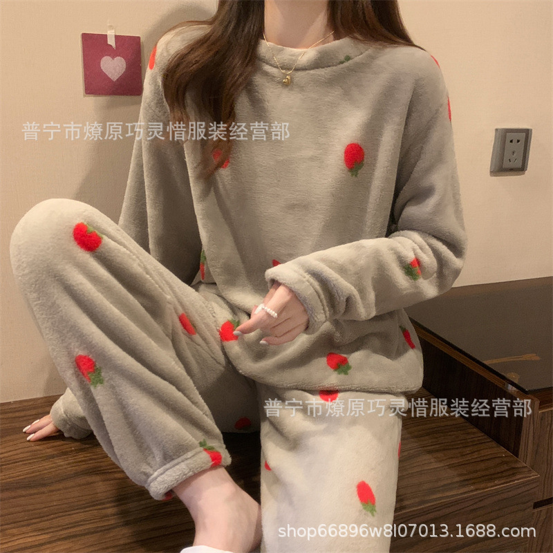 인터넷 유명 인사 새 곰 산호 양털 잠옷 소녀의 가을과 겨울 귀여운 달콤한 플란넬 홈웨어 세트 도매스토어 가기