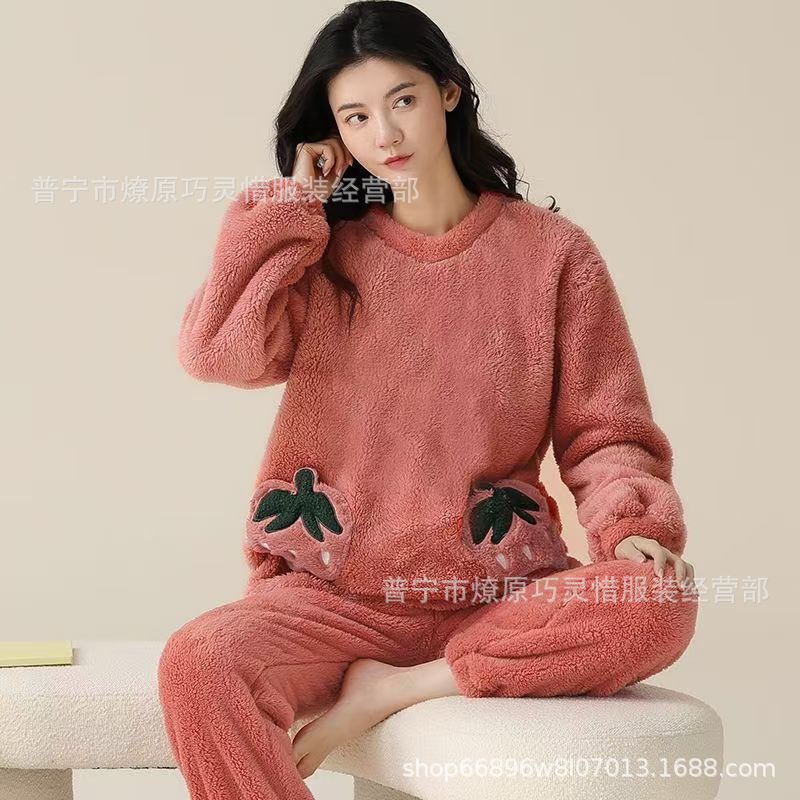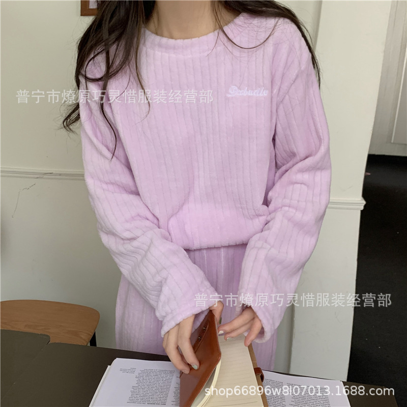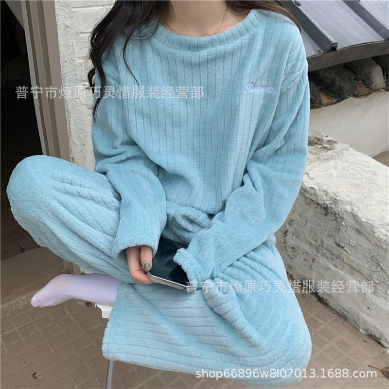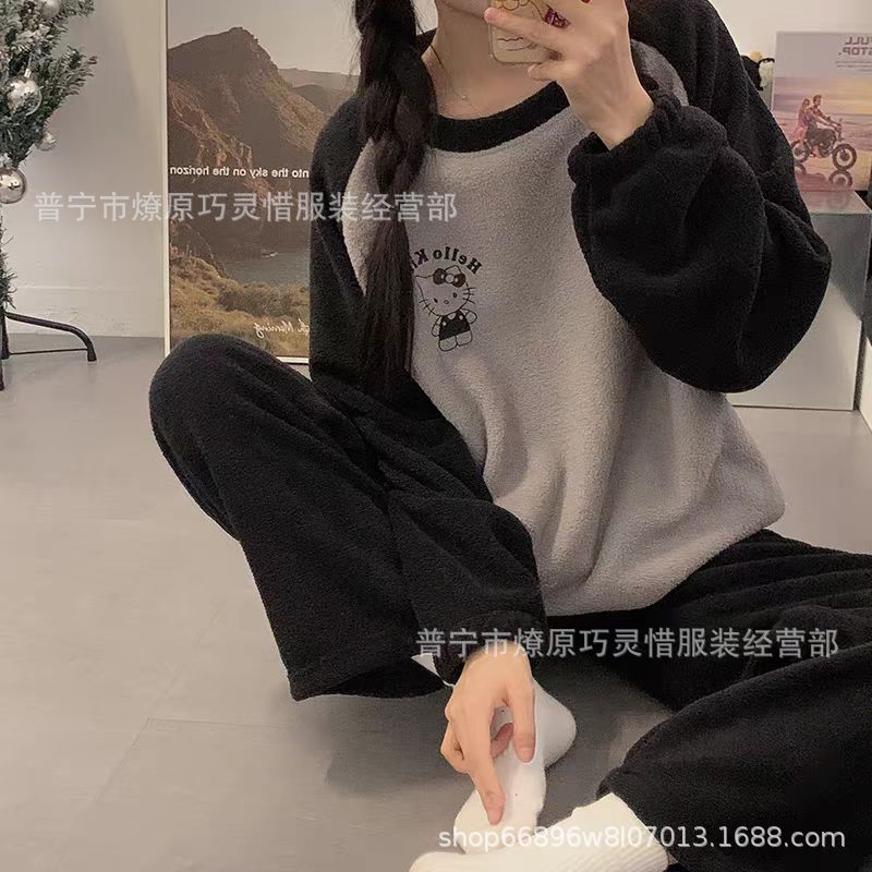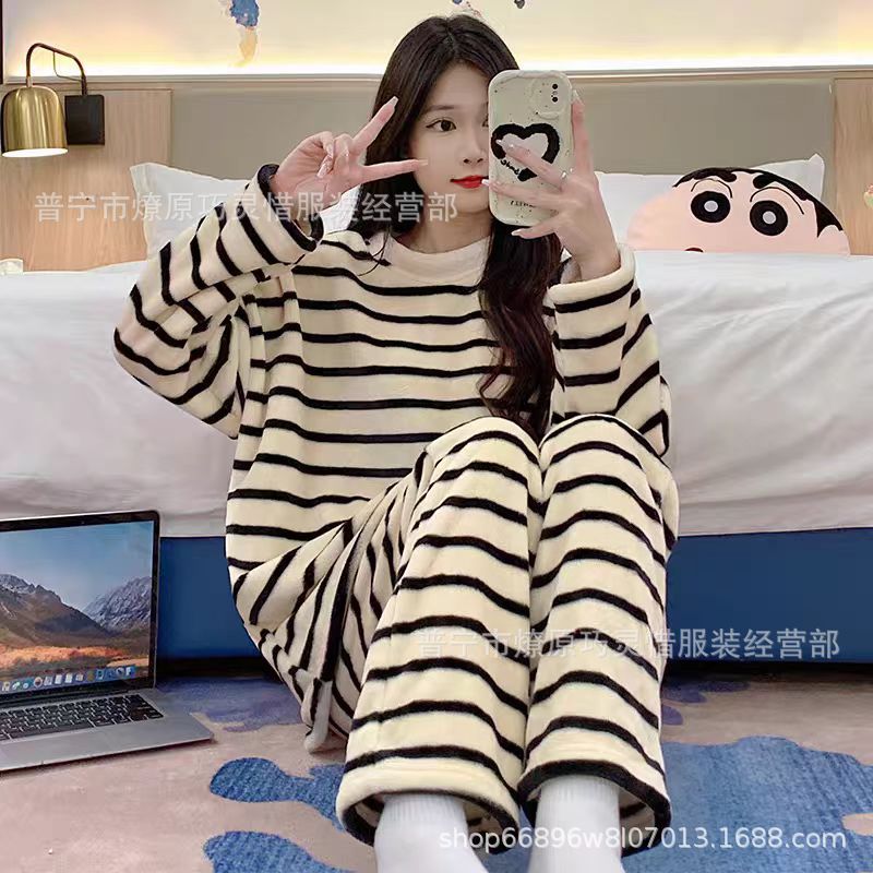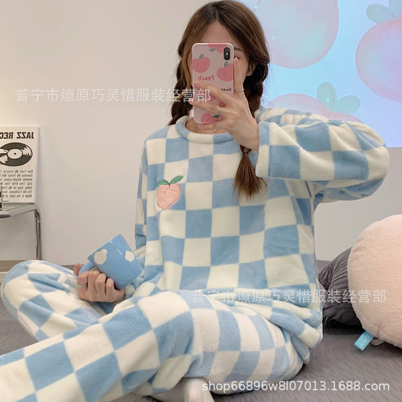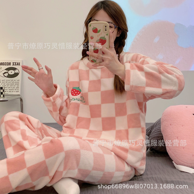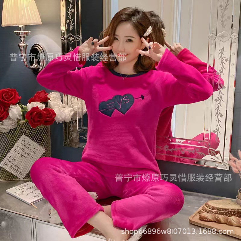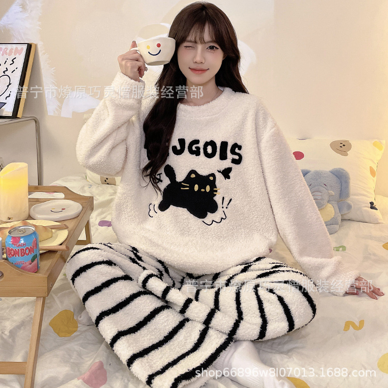 인터넷 유명 인사 새 곰 산호 양털 잠옷 소녀의 가을과 겨울 귀여운 달콤한 플란넬 홈웨어 세트 도매스토어 가기