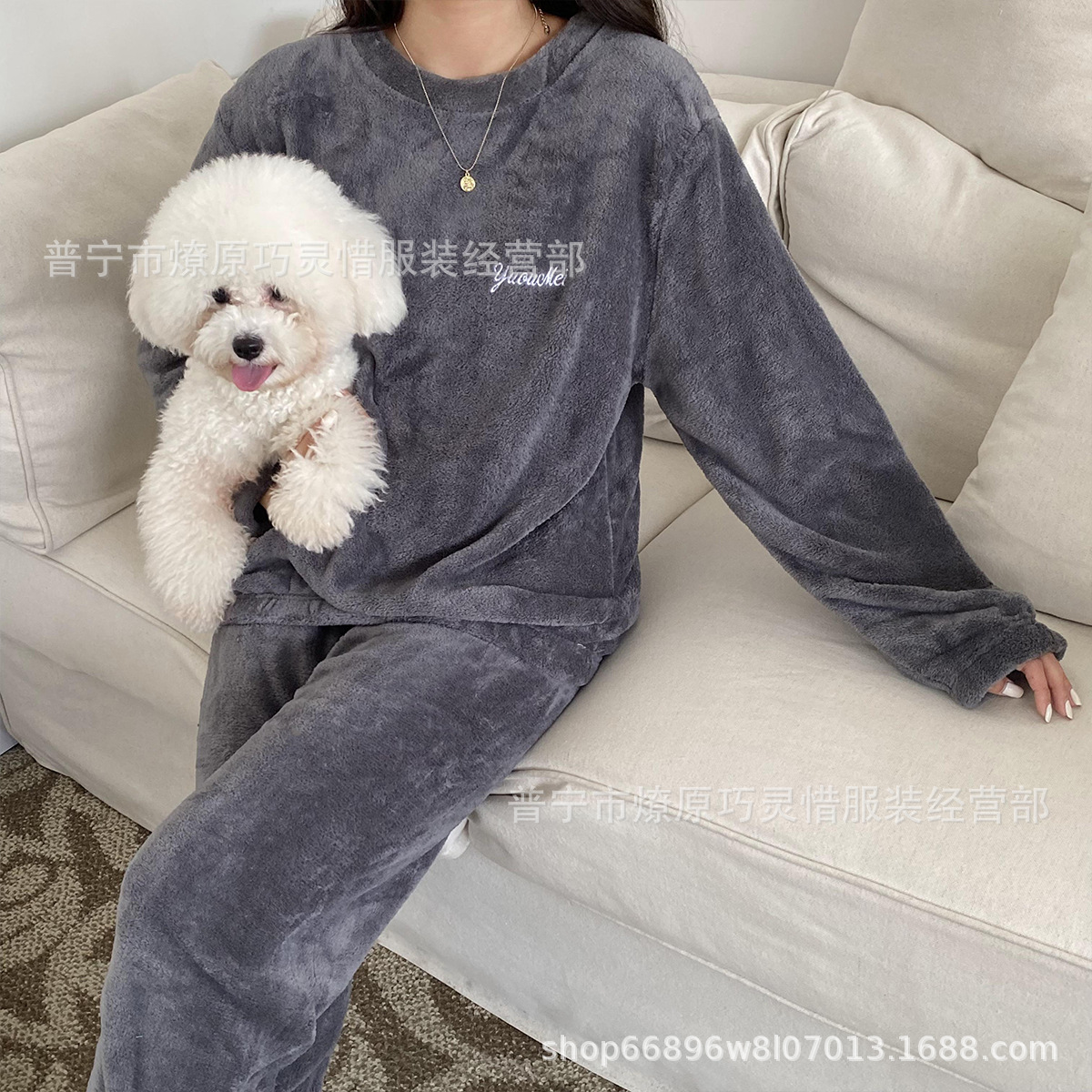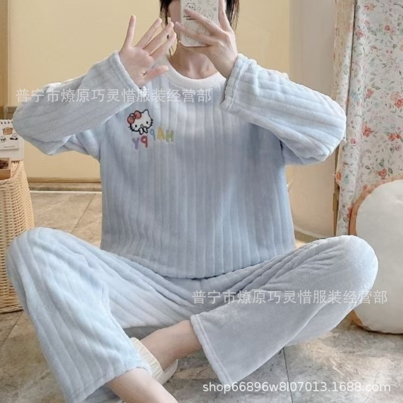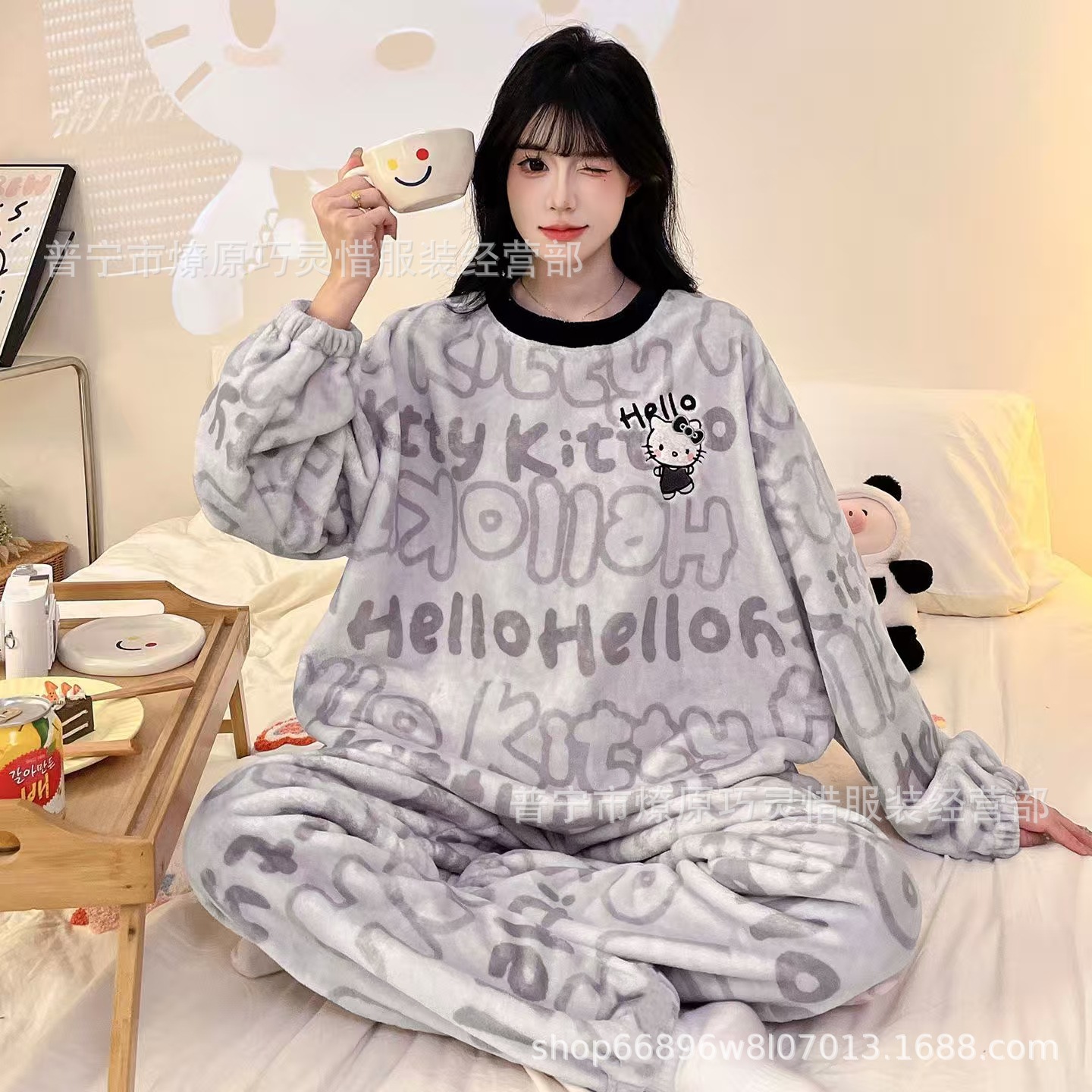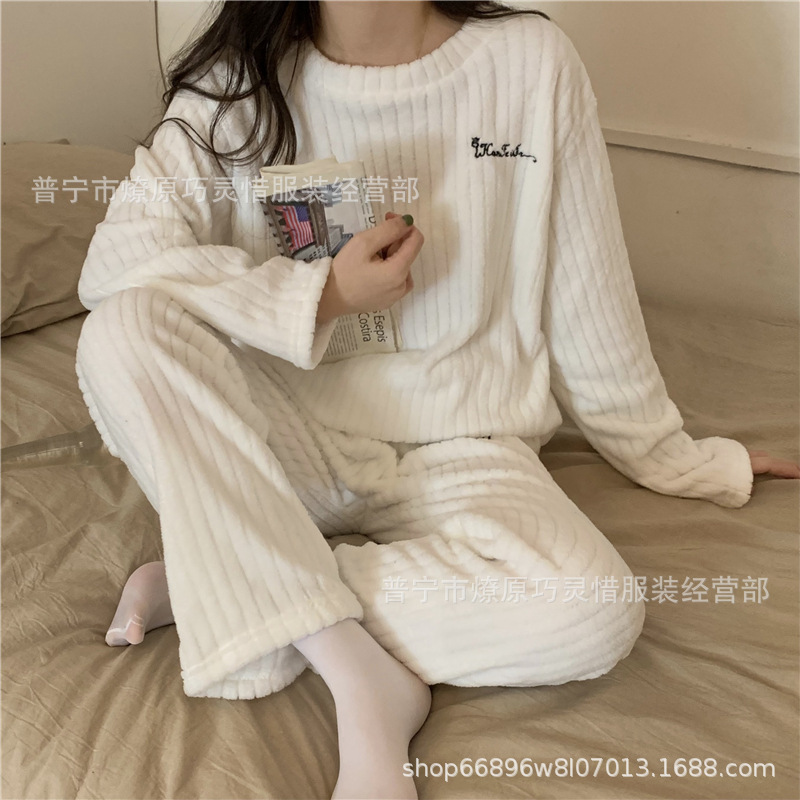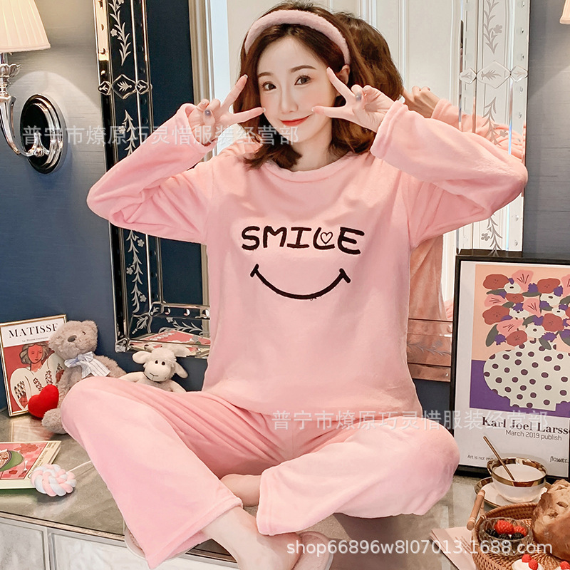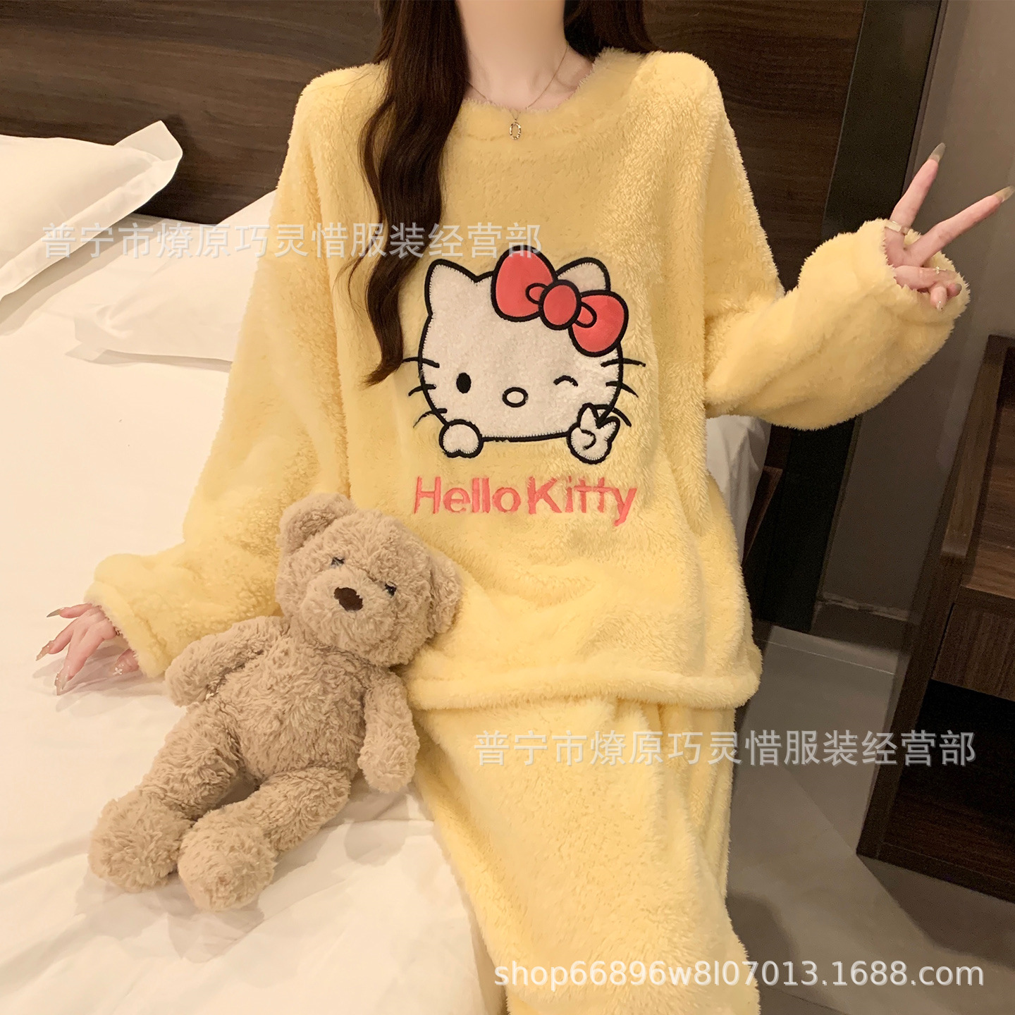 인터넷 유명 인사 새 곰 산호 양털 잠옷 소녀의 가을과 겨울 귀여운 달콤한 플란넬 홈웨어 세트 도매스토어 가기