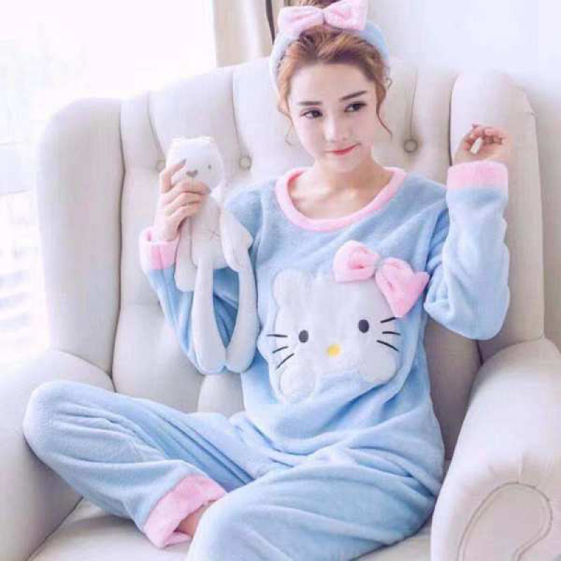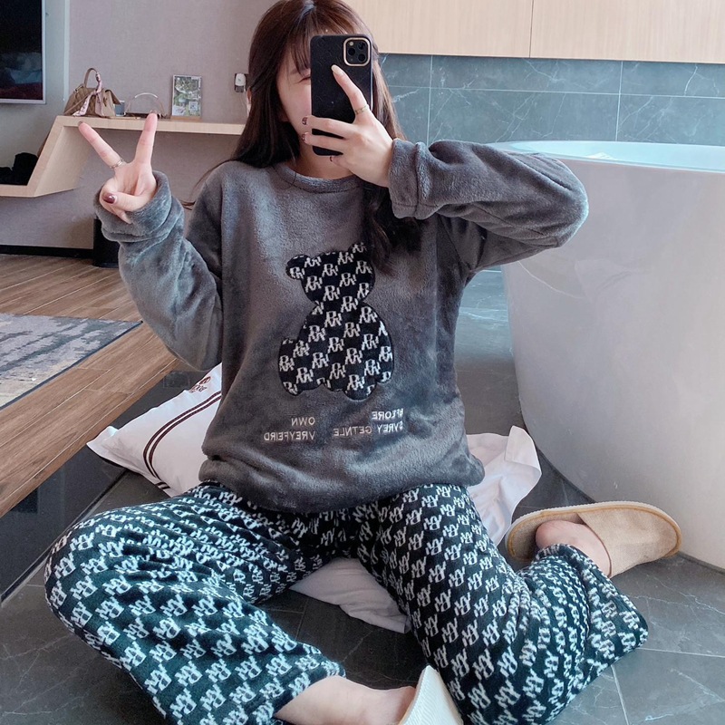 인터넷 유명 인사 새 곰 산호 양털 잠옷 소녀의 가을과 겨울 귀여운 달콤한 플란넬 홈웨어 세트 도매
