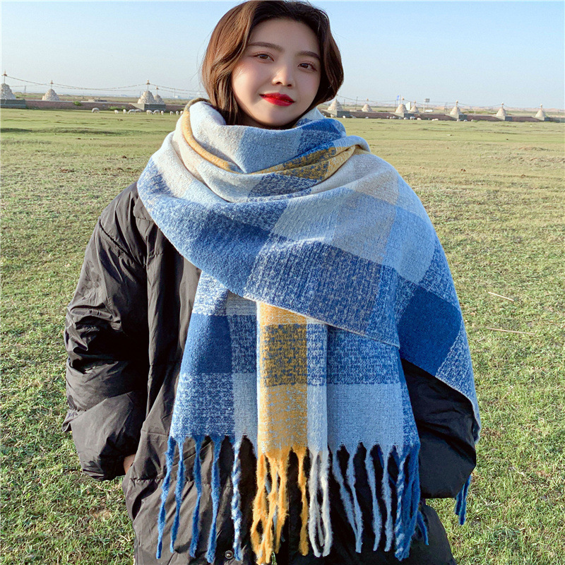 새로운 길어진 일본과 한국 여성 술 스카프 폴리 에스테르 격자 무늬 달콤한 패딩 목도리 따뜻한 스카프 한 세대의 머리카락스토어 가기
