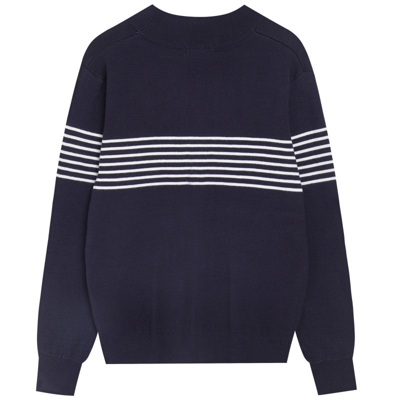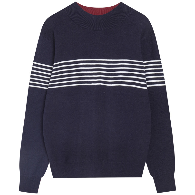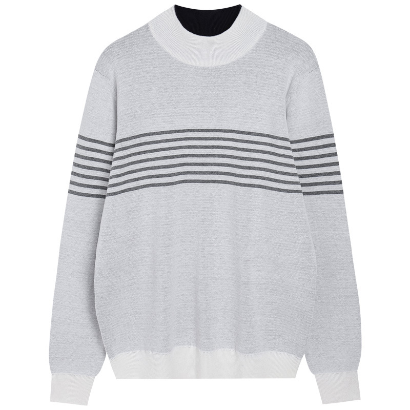 가을과 겨울 새로운 남자의 세미 하이 칼라 자카드 스트라이프 스웨터 참깨 바닥 자카드 대비 울 탑 남성스토어 가기