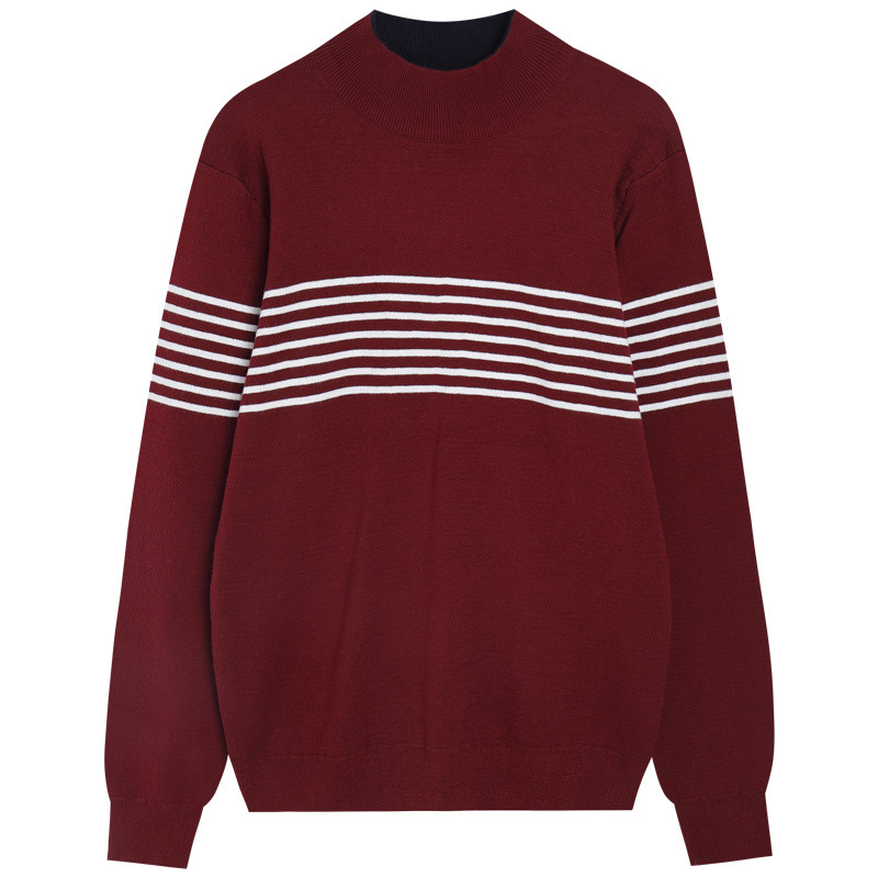 가을과 겨울 새로운 남자의 세미 하이 칼라 자카드 스트라이프 스웨터 참깨 바닥 자카드 대비 울 탑 남성