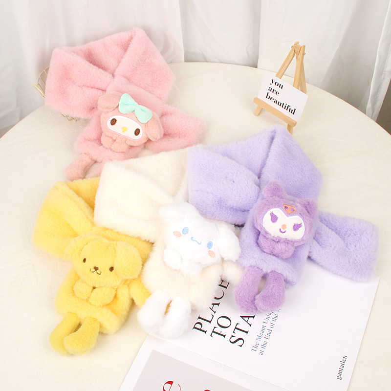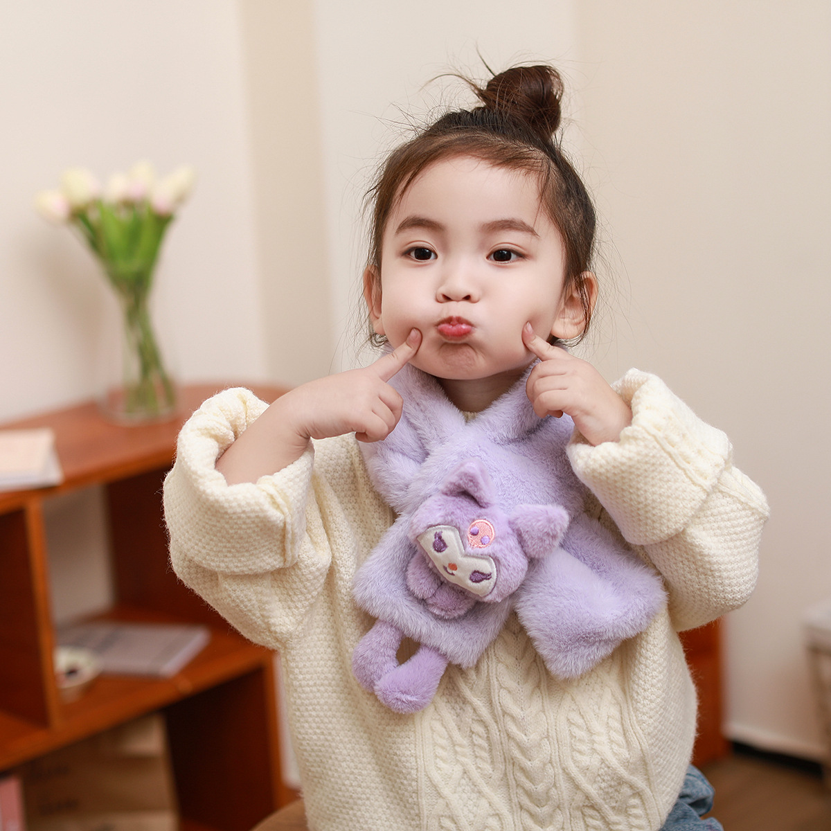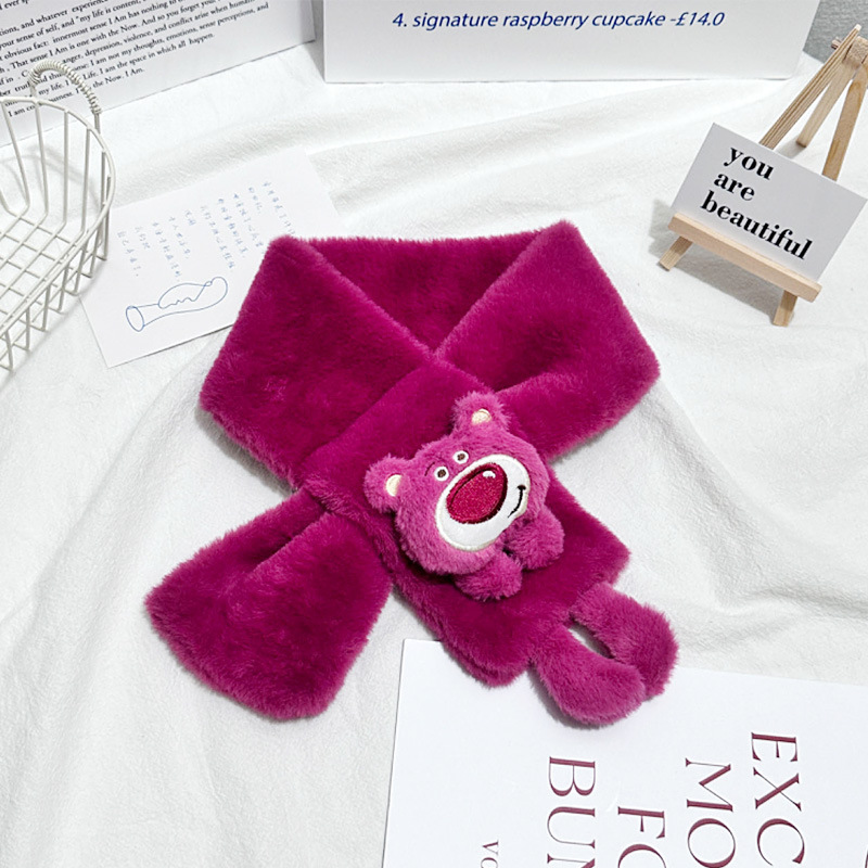 새로운 어린이 스카프 겨울 따뜻한 두꺼운 모조 토끼 모피 봉제 스카프 소년과 소녀를위한 귀여운 만화 크로스 스카프스토어 가기